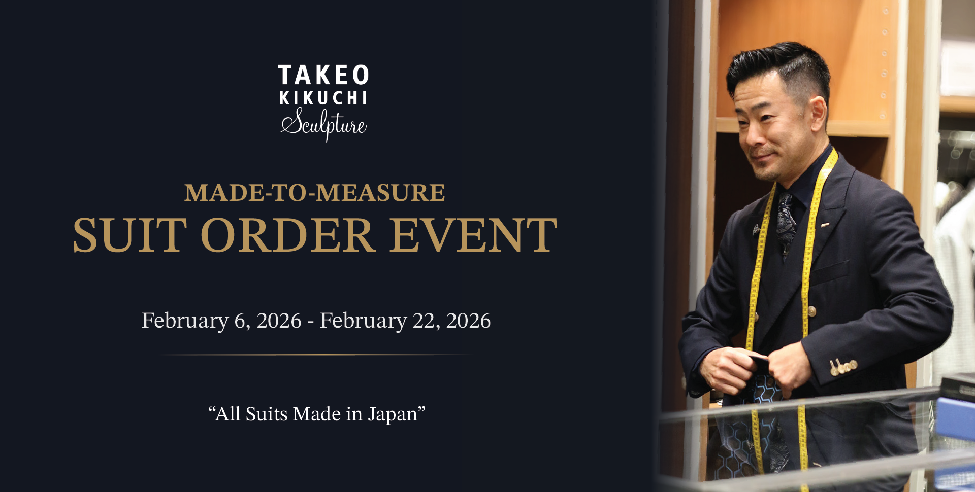 TAKEO KIKUCHI SCULPTURE is a custom suit order (made to measure) service that uses TAKEO KIKUCHI’s original suit pattern, tailored to the customer’s preferred fabrics and body measurements.