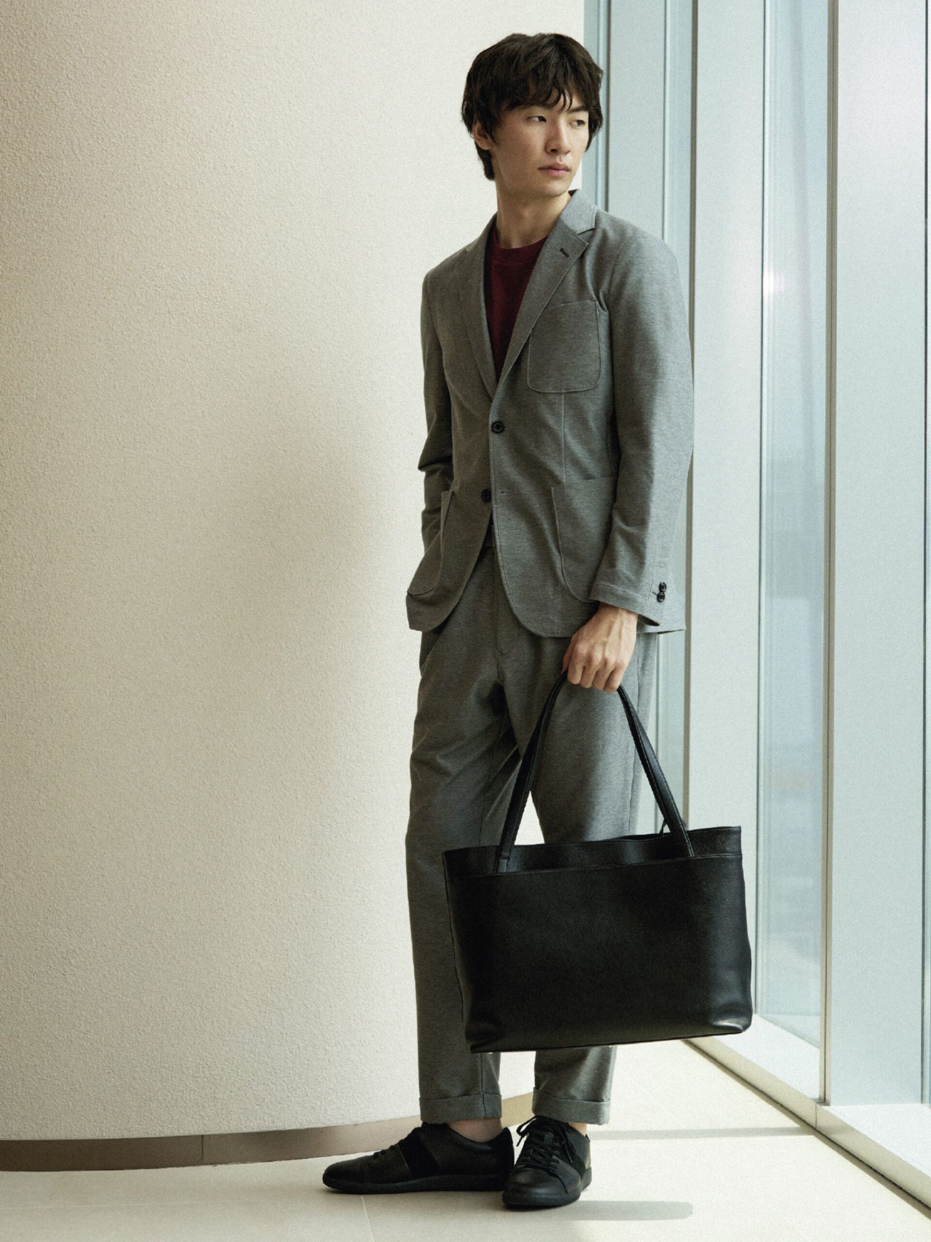 #SETUP เสื้อแจ็คเก็ตที่ดีไซน์และคัดสรรเนื้อผ้าเพื่อลุค Business Casual ไม่ทางการเกินไป ด้วยกระเป๋าเสื้อทรงยู และเนื้อผ้าทอลายคล้ายเดนิม มีความนิ่ม น้ำหนักเบาใส่สบาย สามารถใส่เป็น Blazer หรือใส่คู่กับกางเกงเนื้อผ้าเดียวกัน เพิ่มลูกเล่นด้วยขากางเกงแบบ double pants พับทบขึ้น ให้ลุคดูดีและโดดเด่น #TOP เสื้อตัวในสามารถใส่เป็นเสื้อคอกลมทรง Regular Fit ผ้า Jersey Pouch เนื้อนุ่มยืดหยุ่น น้ำหนักเบา ให้ลุคดูสบายขึ้น #ACCESSORIES สามารถแมทกับ tote bag หรือกระเป๋าใส่เอกสาร หนังแท้ รุ่น NEW KA-GE ที่มีดีไซน์เรียบหรู ใช้งานง่าย