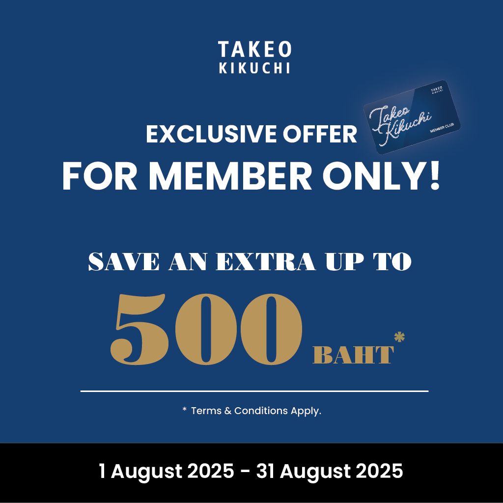 ・ลูกค้าสามารถสมัครสมาชิกได้ ผ่านช่องทาง TAKEO KIKUCHI LINE Official Account @takeokikuchi หรือ คลิกที่นี่เพื่อสมัคร