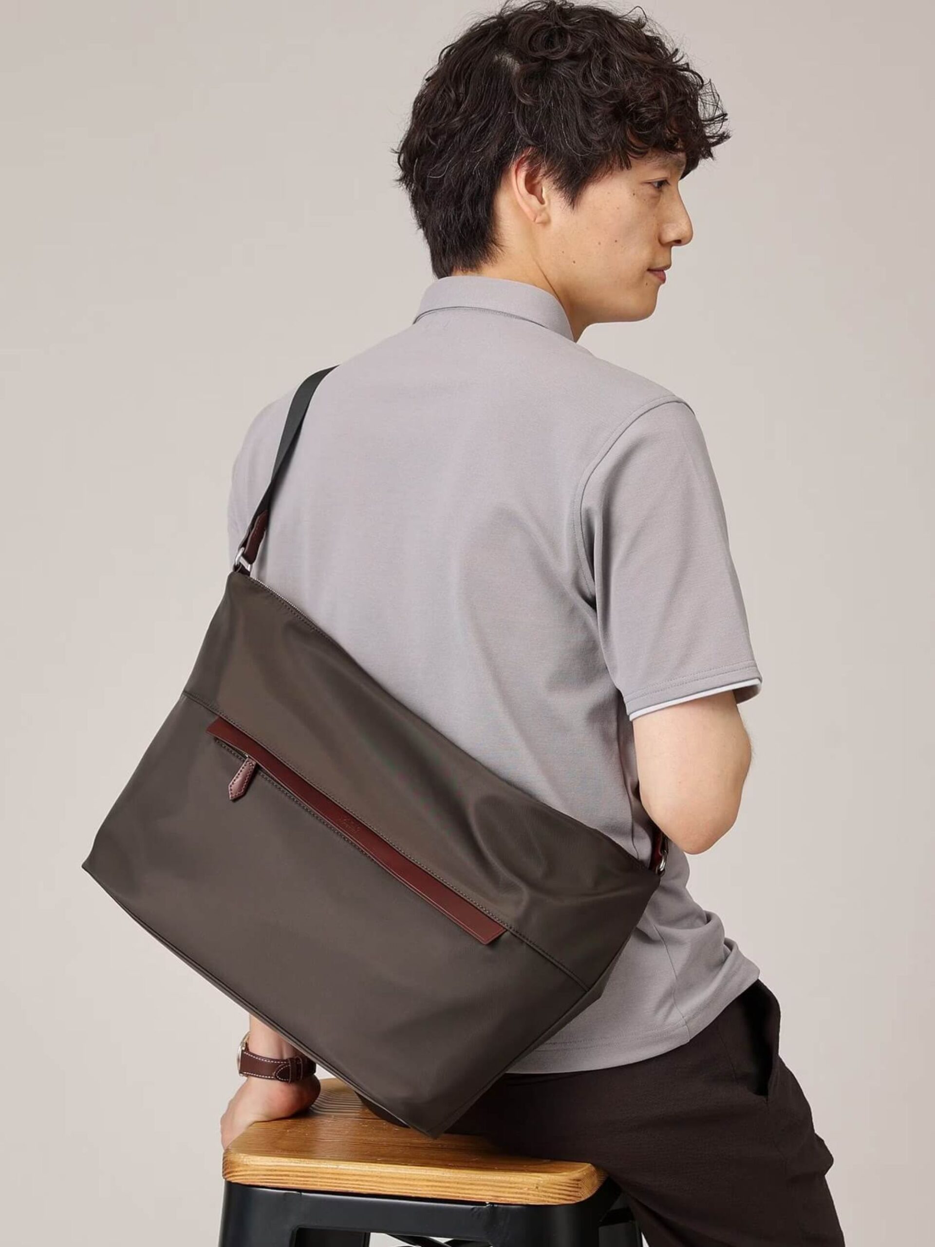 50%BROWN LEATHER COMBI NYLON CROSSBODY BAG (07009341) *ECS