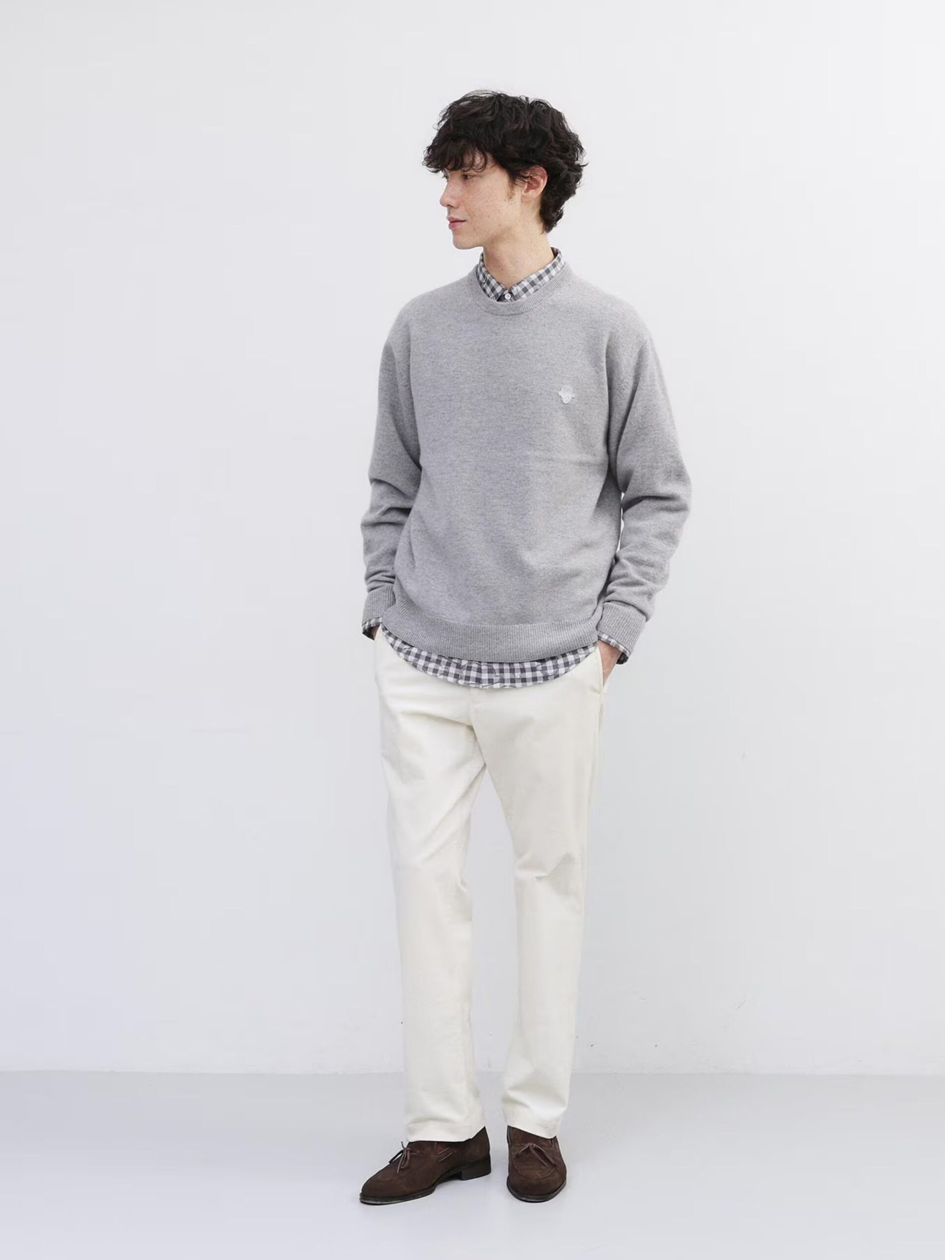 NEW INLIGHT GREY WOOL BLEND ANTI-PILLING KNIT SWEATER (07014005) *ECS