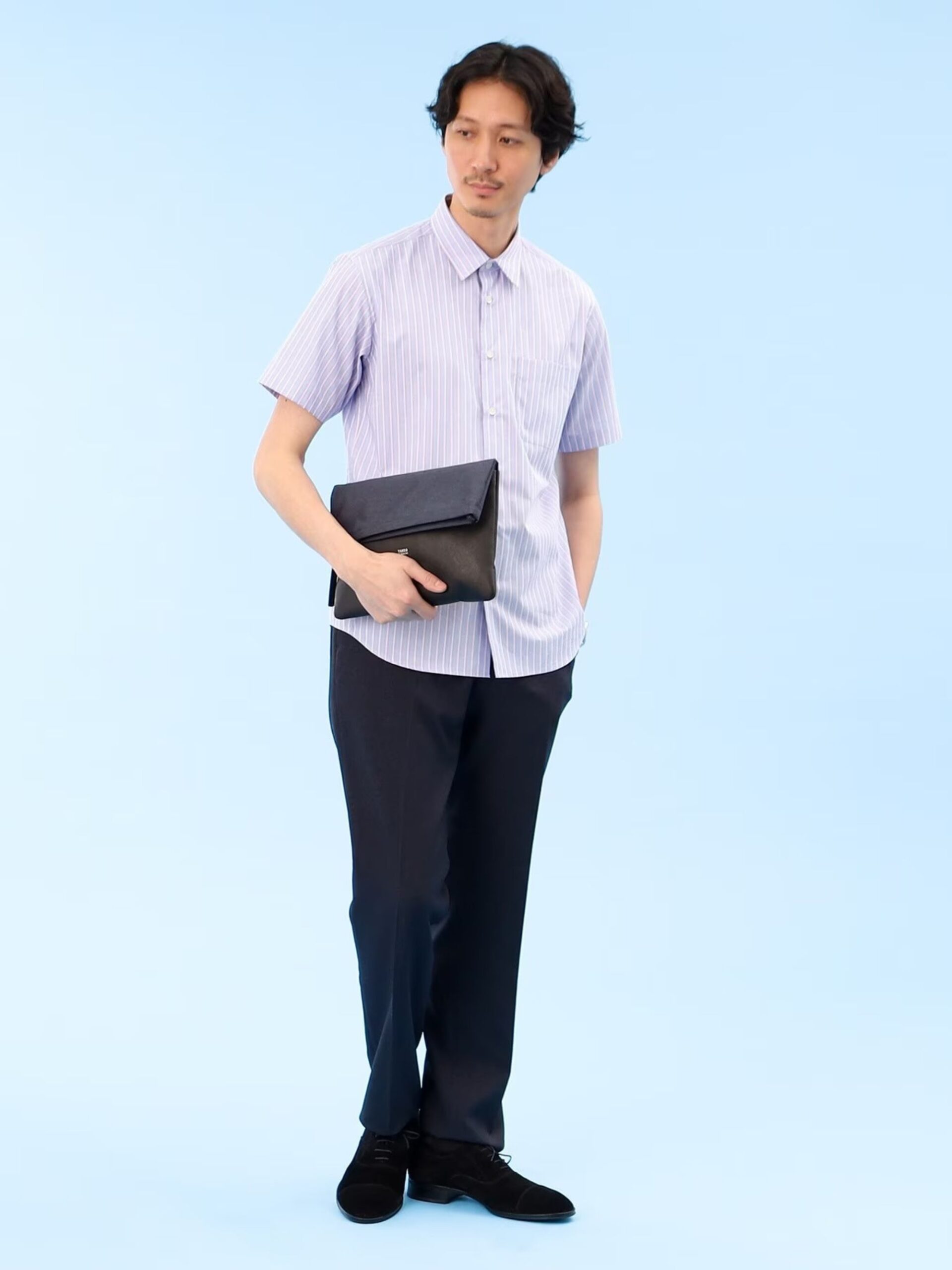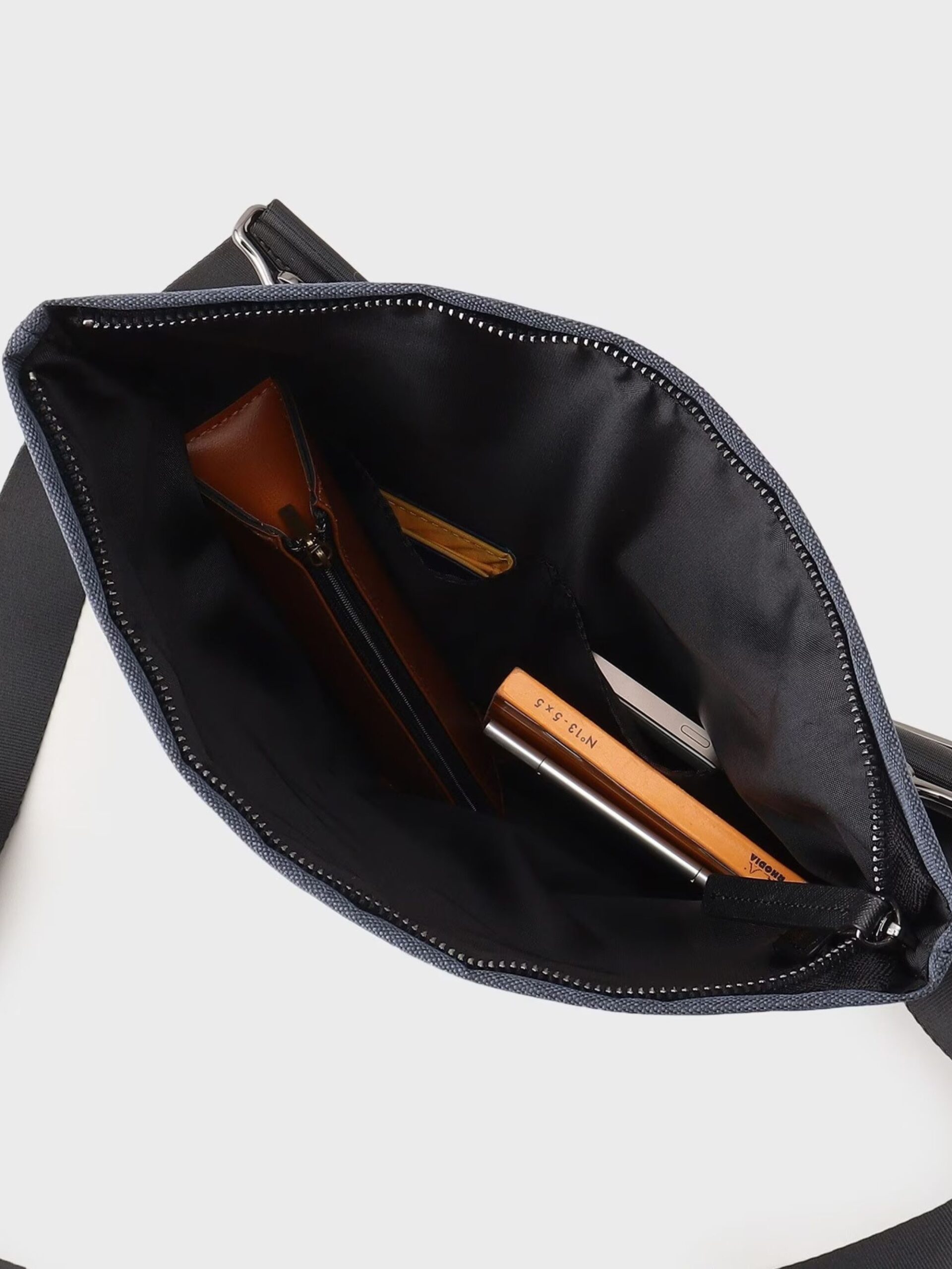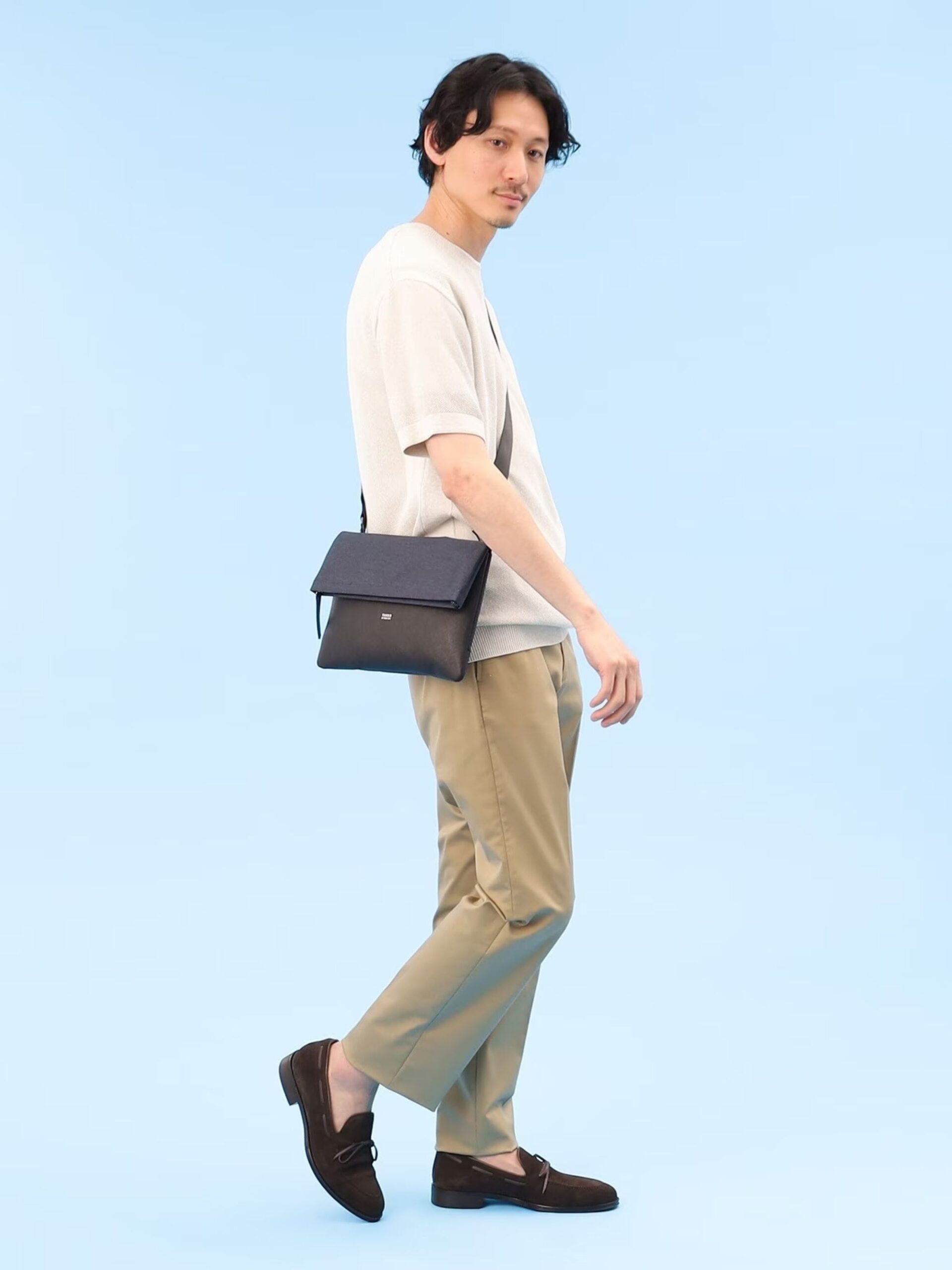 กระเป๋าคลัทช์ไซส์พกพาที่สามารถใช้ได้ทุกที่ทุกโอกาส สามารถจุของได้เป็นจำนวนมากอีกทั้งยังสะพายได้สองรูปแบบ ไม่ว่าจะสะพายหรือถือเป็นคลัทช์ ก็ดูดีในสไตล์ที่แตกต่างกัน ออกแบบด้วยการใช้ Material สองชนิดประกอบกันเป็นการผสมผสานระหว่างผ้าโพลีเอสเตอร์และหนังวัวแท้พิมพ์ลาย saffiano ที่ทำให้กระเป๋ามีความคงทนและยังมีความยืดหยุ่นได้ในใบเดียวกัน เมื่อใส่ของต่างชนิดกัน การพับลงของปากกระเป๋าก็จะมีดีไซน์เปลี่ยนไปตามการใช้งาน มีความเท่และเป็นเอกลักษณ์ มีสายสะพายที่สามารถถอดได้ สายสะพายปรับความยาวได้ 59-111 cm