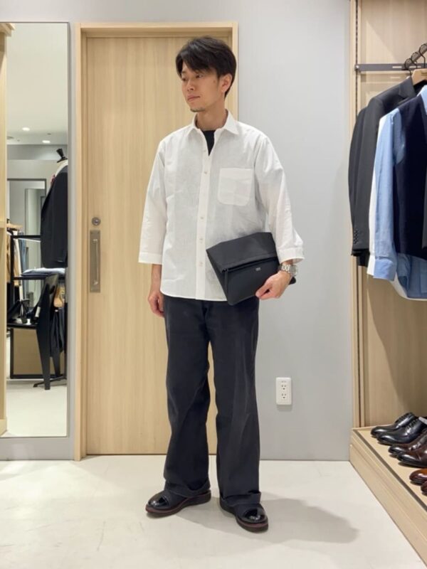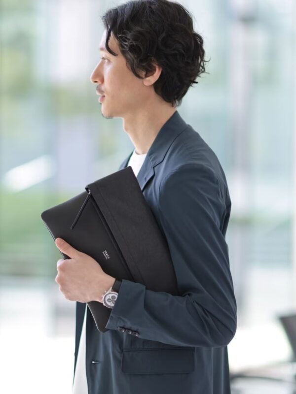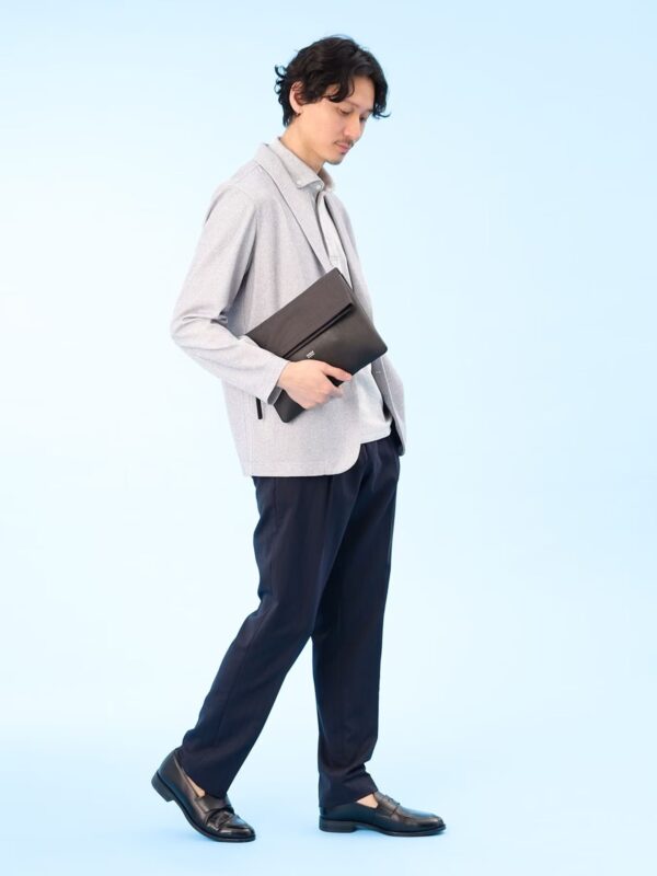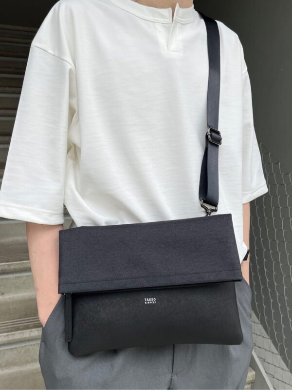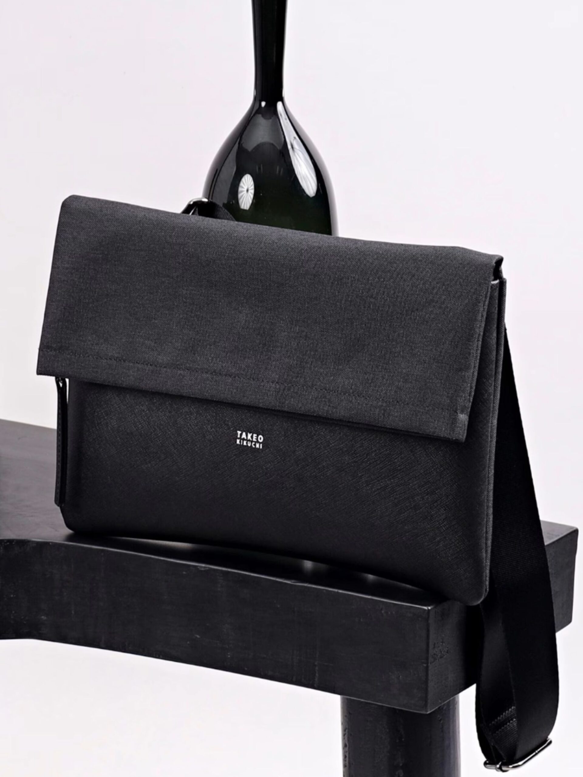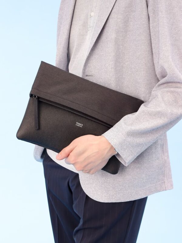 กระเป๋าคลัทช์ไซส์พกพาที่สามารถใช้ได้ทุกที่ทุกโอกาส ออกแบบด้วยการใช้ Material สองแบบประกอบกัน ที่ทำให้กระเป๋ามีความคงทนและยังมีความยืดหยุ่นได้ในใบเดียวกัน จุของได้เยอะ และเมื่อใส่ของต่างชนิดกัน การพับลงของปากกระเป๋าก็จะมีดีไซน์เปลี่ยนไปตามการใช้งาน มีความเท่และเป็นเอกลักษณ์