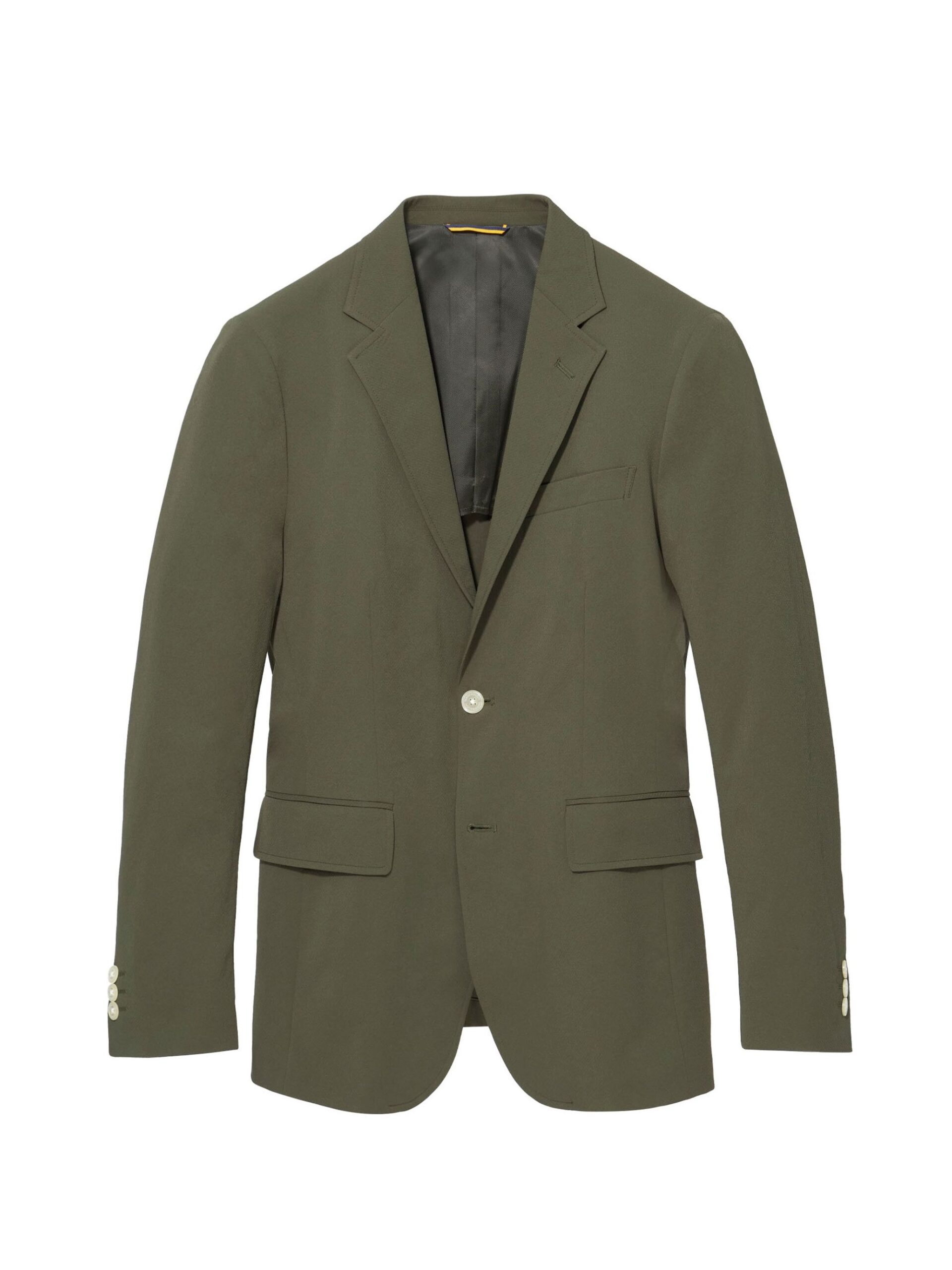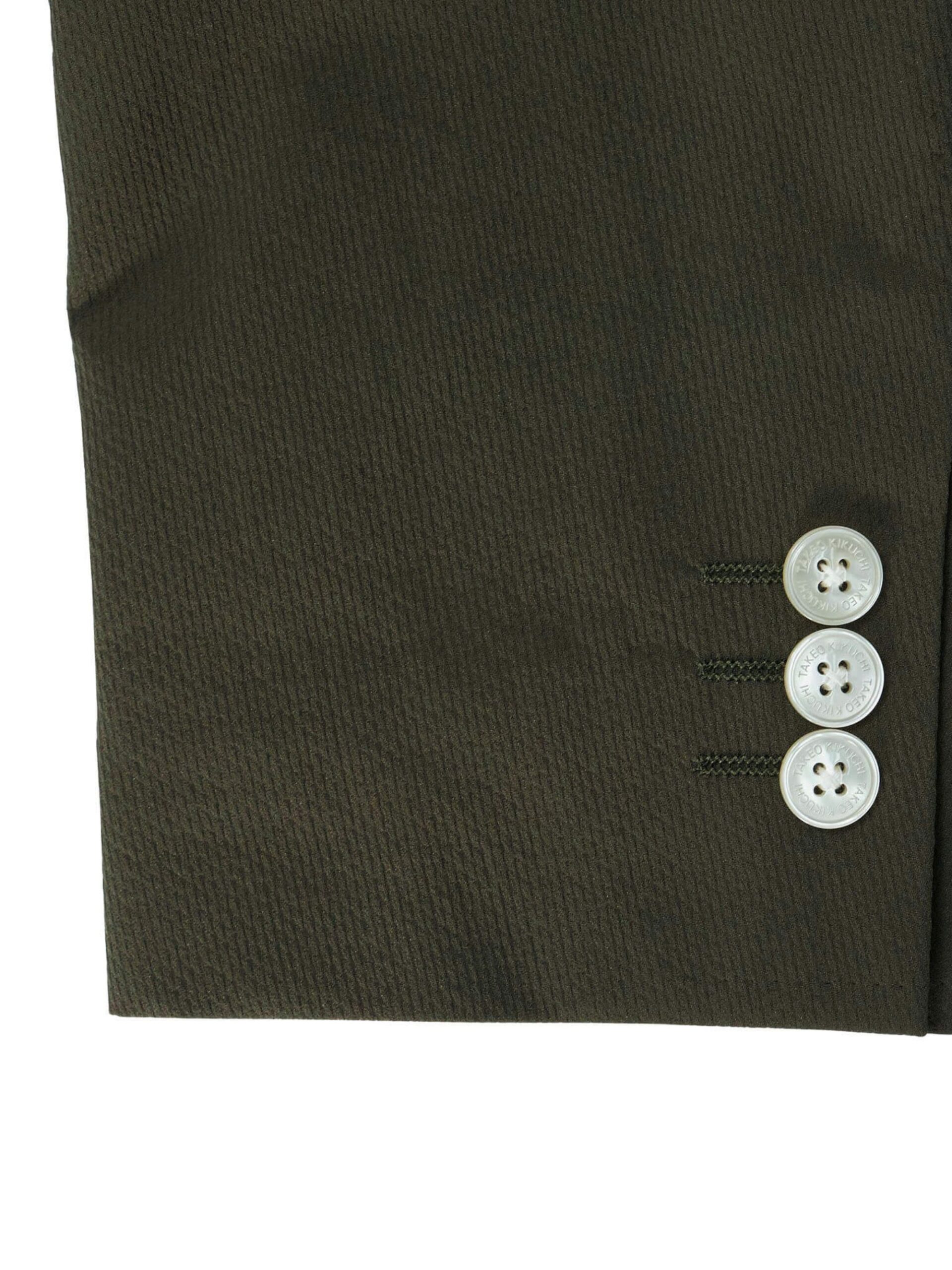 แจ็คเก็ตสูท ผ้า polyester solotex ส่วนผสมในผ้ามีทำมาจากพืช (37%) ในขั้นตอนการผลิตจึงไม่ปล่อยคาร์บอนเข้าสู่ชั้นบรรยากาศ จึงเรียกได้ว่าเป็น Eco friendly นอกจากนั้นโครงสร้างผ้ามีความแข็งแรง  ยับยาก แห้งเร็ว และเป็น 2Way stretch
