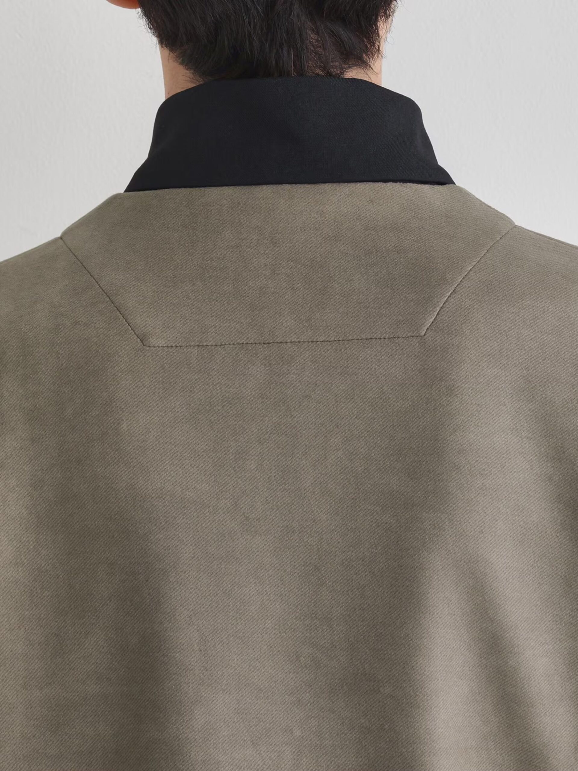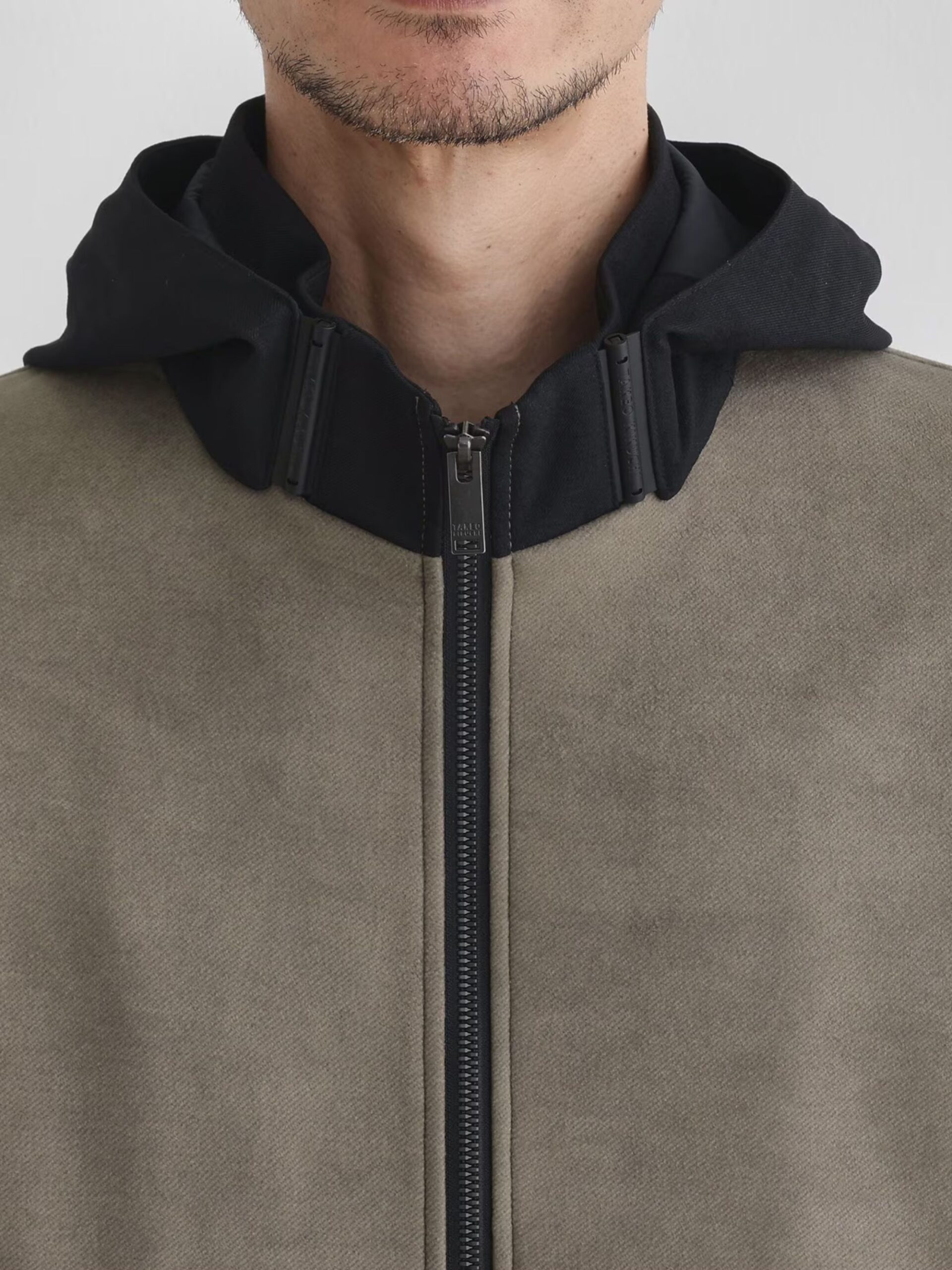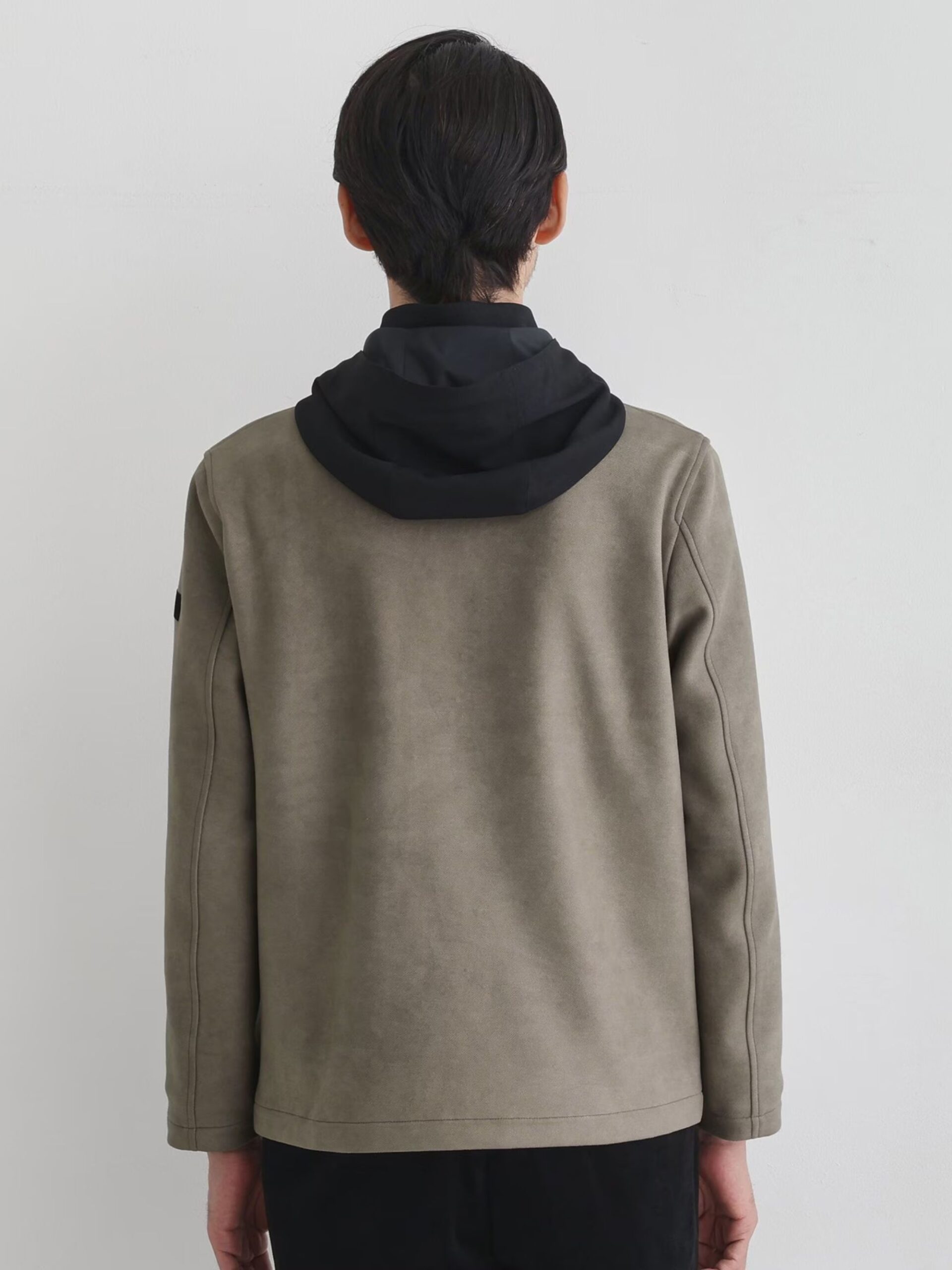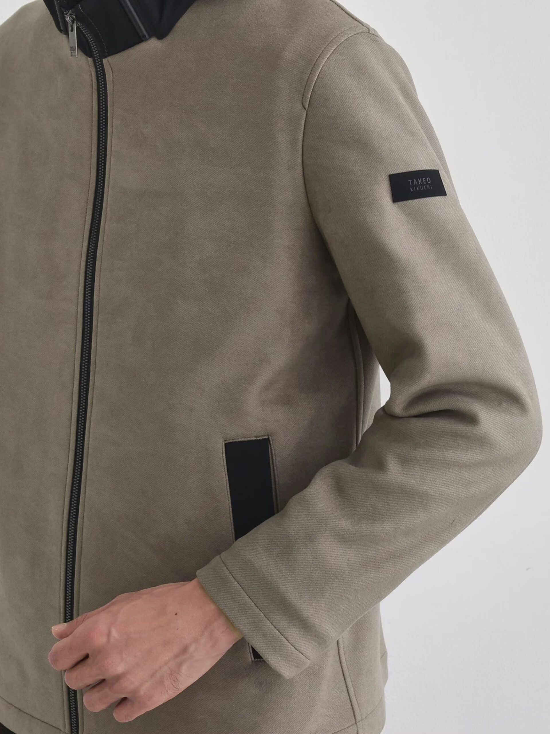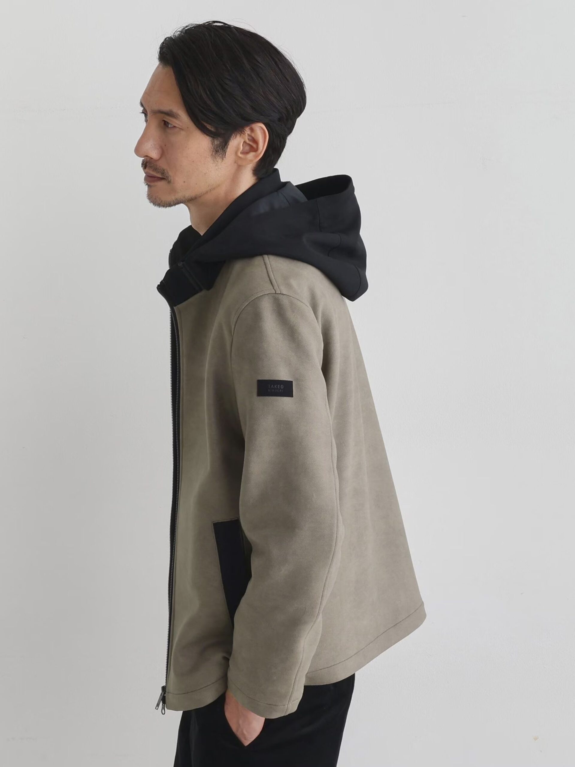 เสื้อแจ็คเก็ตนี้ทำจาก Down Fabric ซึ่งเป็นวัสดุที่มีคุณสมบัติการใช้งานหลากหลาย สามารถสวมเป็นแจ็กเก็ตน้ำหนักเบา หรือเป็นเลเยอร์ด้านในช่วงฤดูหนาวได้ จึงเป็นชิ้นที่ใช้งานได้อเนกประสงค์มาก พื้นผิวเนื้อผ้าสัมผัสนุ่มลื่นแบบหนังกลับ ให้ลุคที่ดูหรูหราและสุภาพ ฮู้ดสามารถถอดออกได้ ทำให้สวมใส่ได้ทั้งแบบพาร์กา หรือแบบคอตั้ง และเมื่อถอดฮู้ดออก จะช่วยให้แมตช์เป็นเลเยอร์ด้านในใต้โค้ทช่วงกลางฤดูหนาวได้ง่ายขึ้น