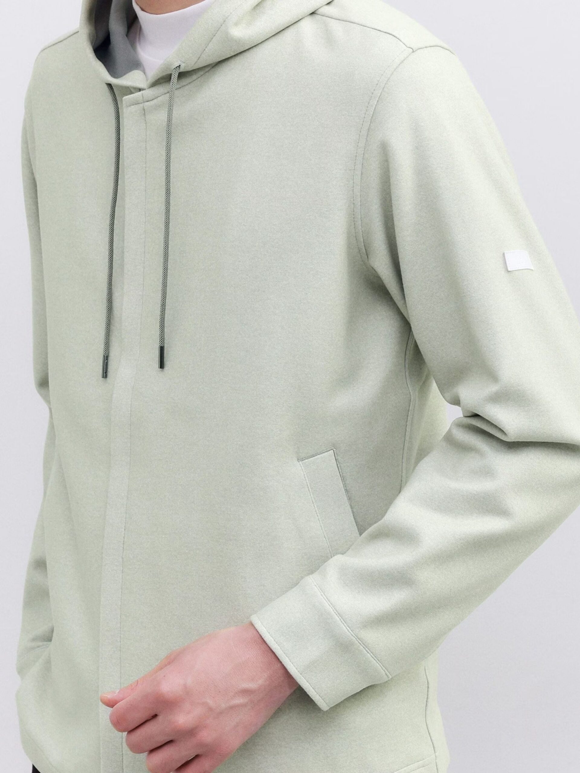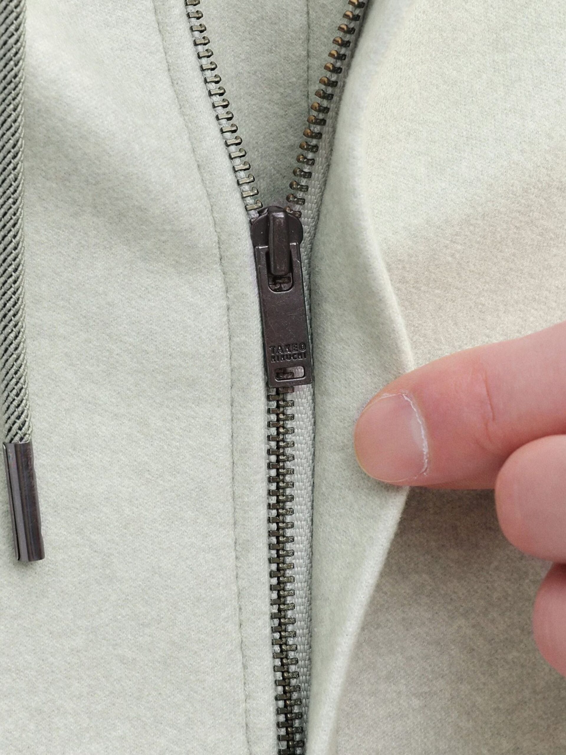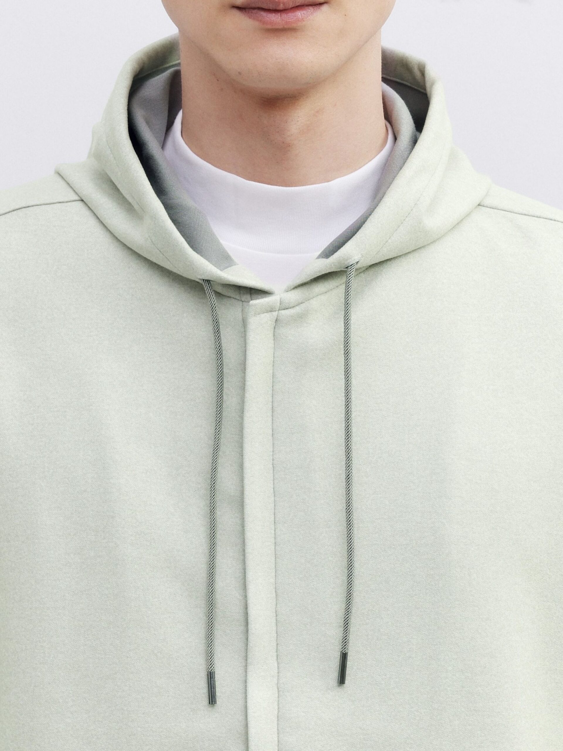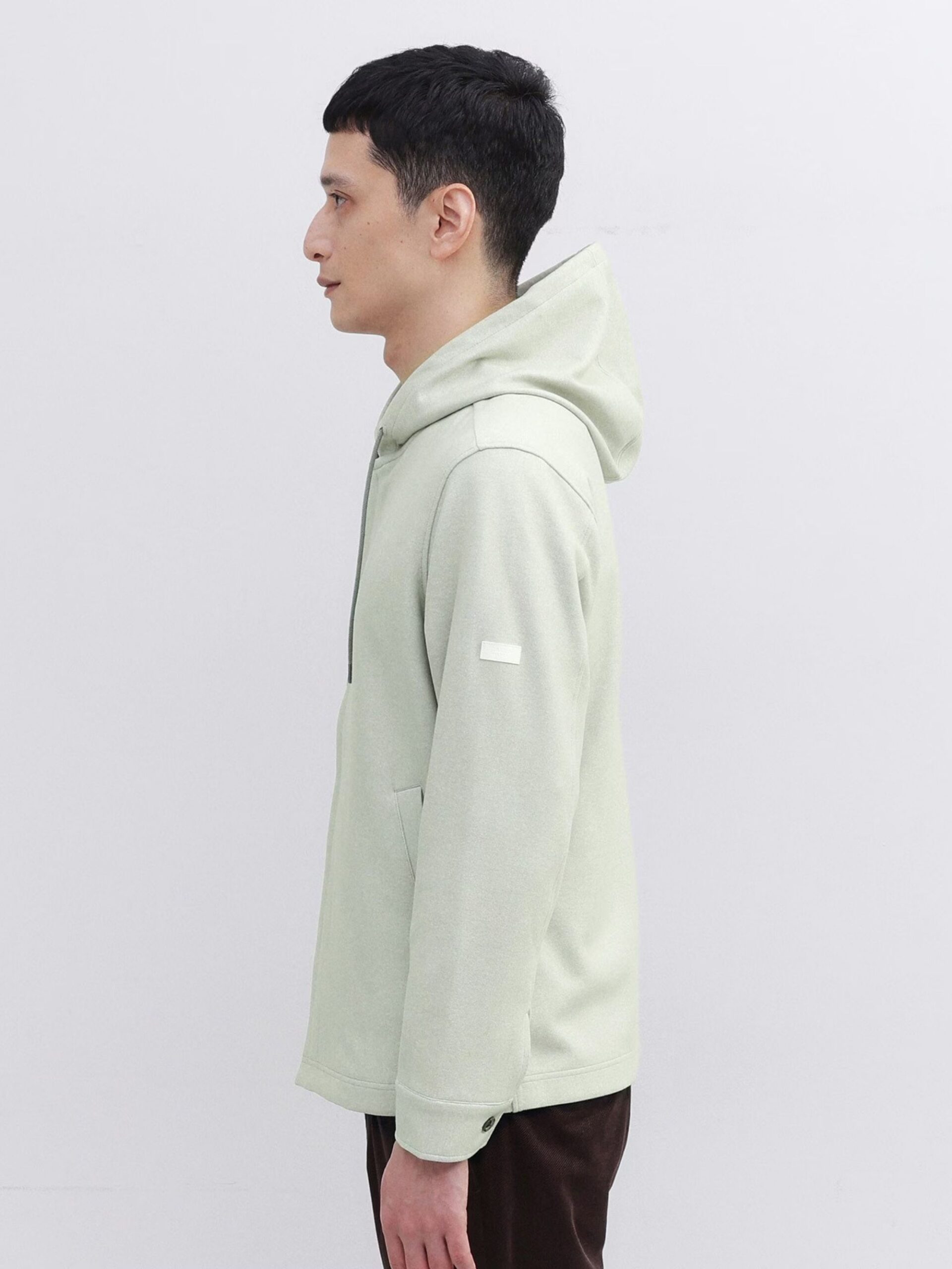 เสื้อฮู้ดมีซิปที่ใช้ผ้า Down Fabric ซึ่งเป็นวัสดุมัลติฟังก์ชั่น พื้นผิวผ้าฟลานเนลทำให้รู้สึกนุ่มนวล แม้เป็นไอเทมลำลองแต่ยังดูหรู เหมาะกับวันพักผ่อน สัมผัสที่นุ่มละมุนและเนื้อผ้าที่พลิ้วสบายช่วยให้ช่วงเวลา OFF ของคุณรู้สึกผ่อนคลายยิ่งขึ้น