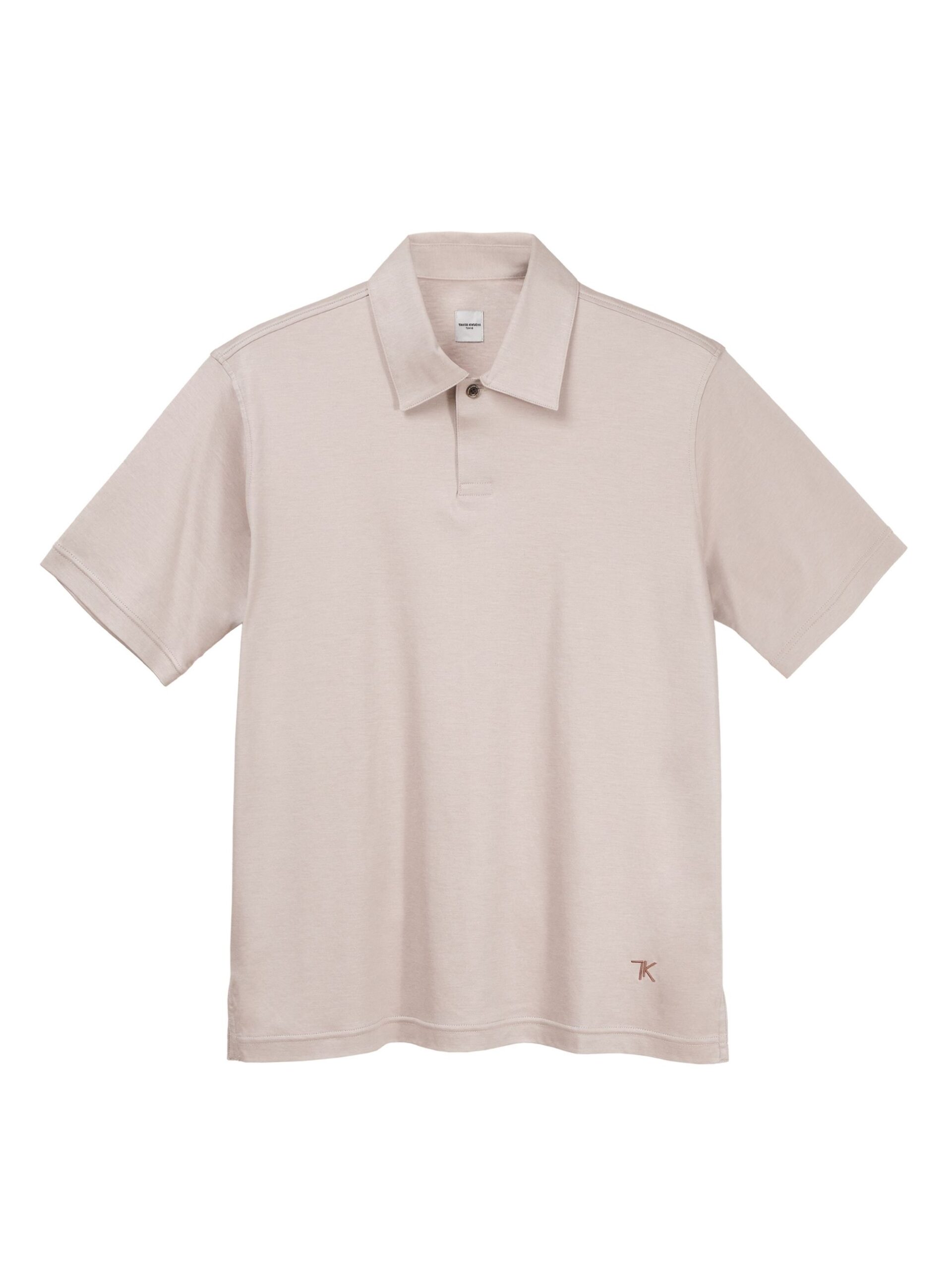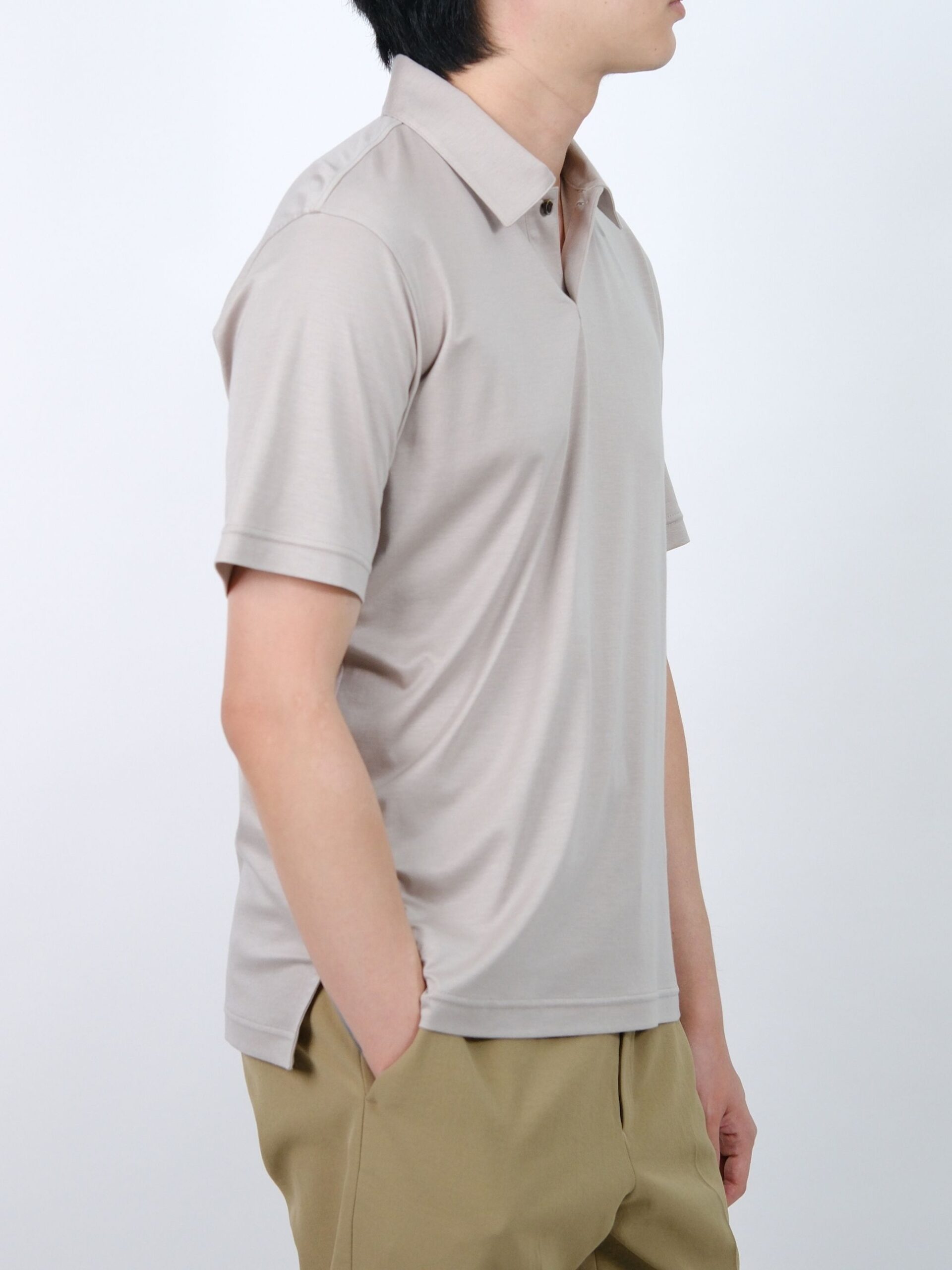 BEIGE HI-GAUGE GIZA LYOCELL 1 BUTTON POLO SHIRT (K8133301)
