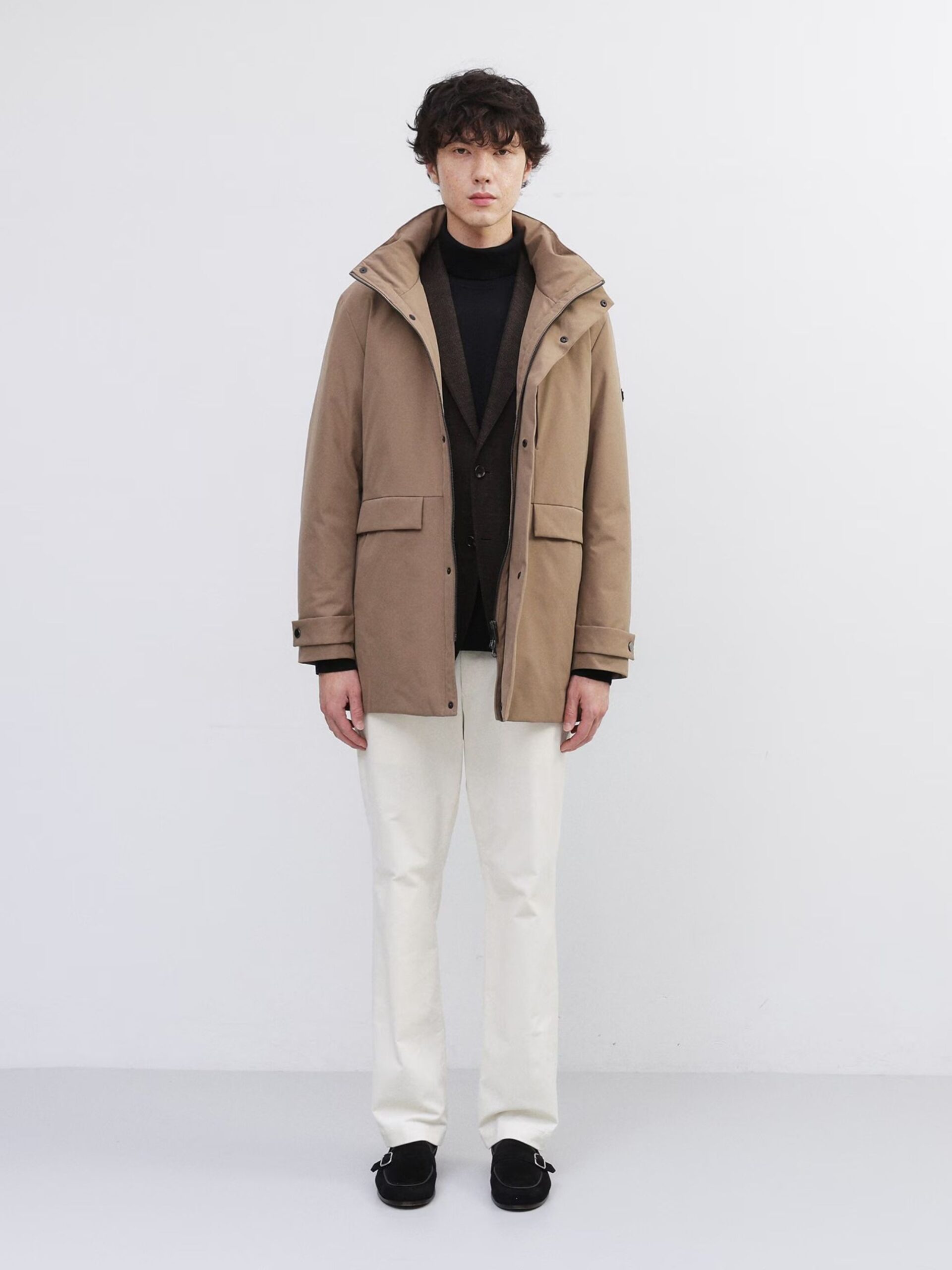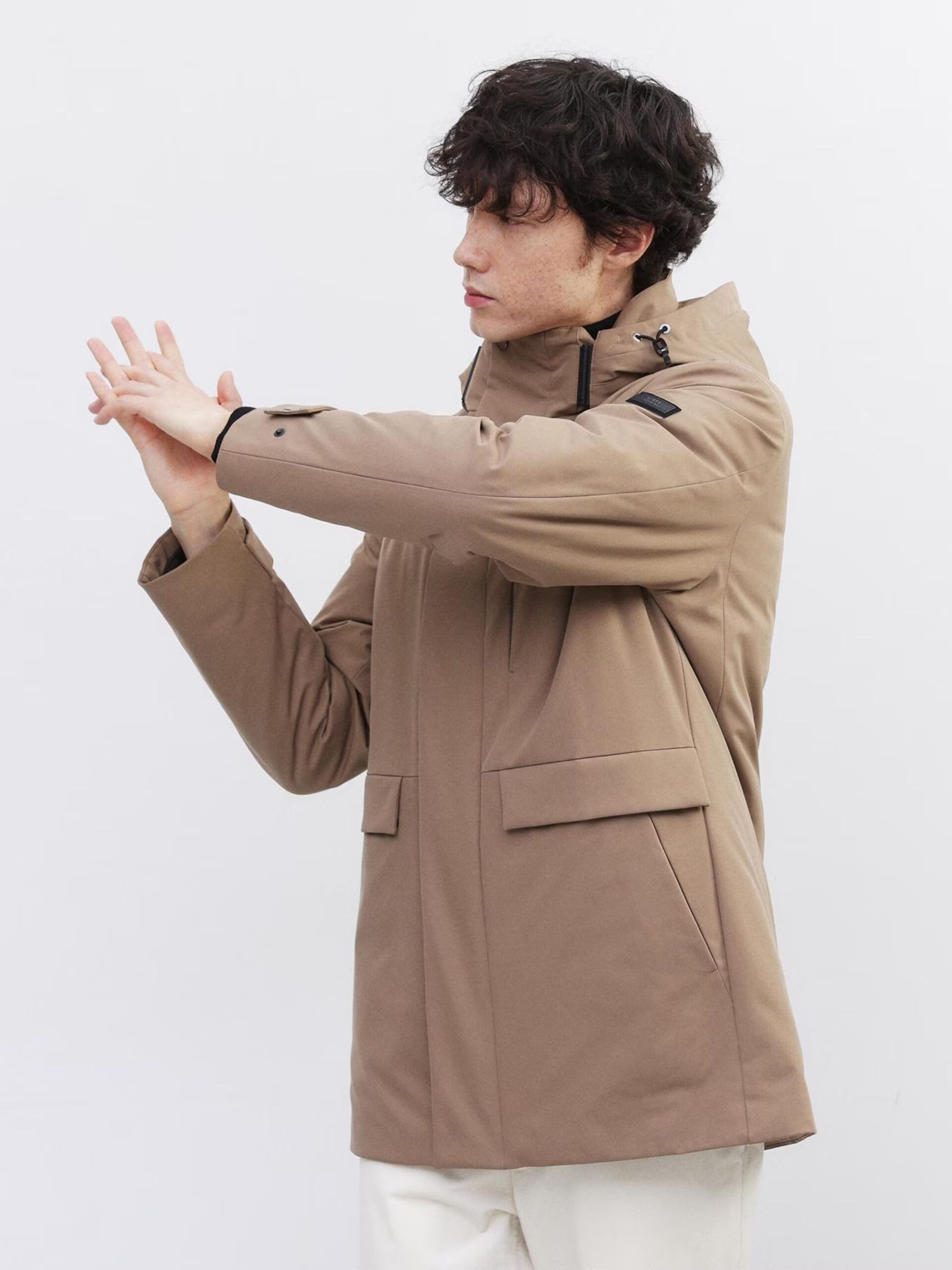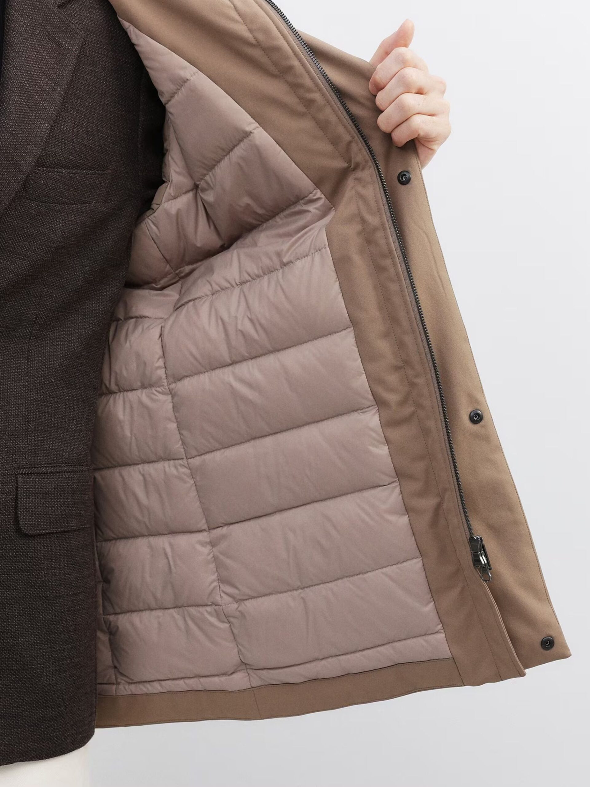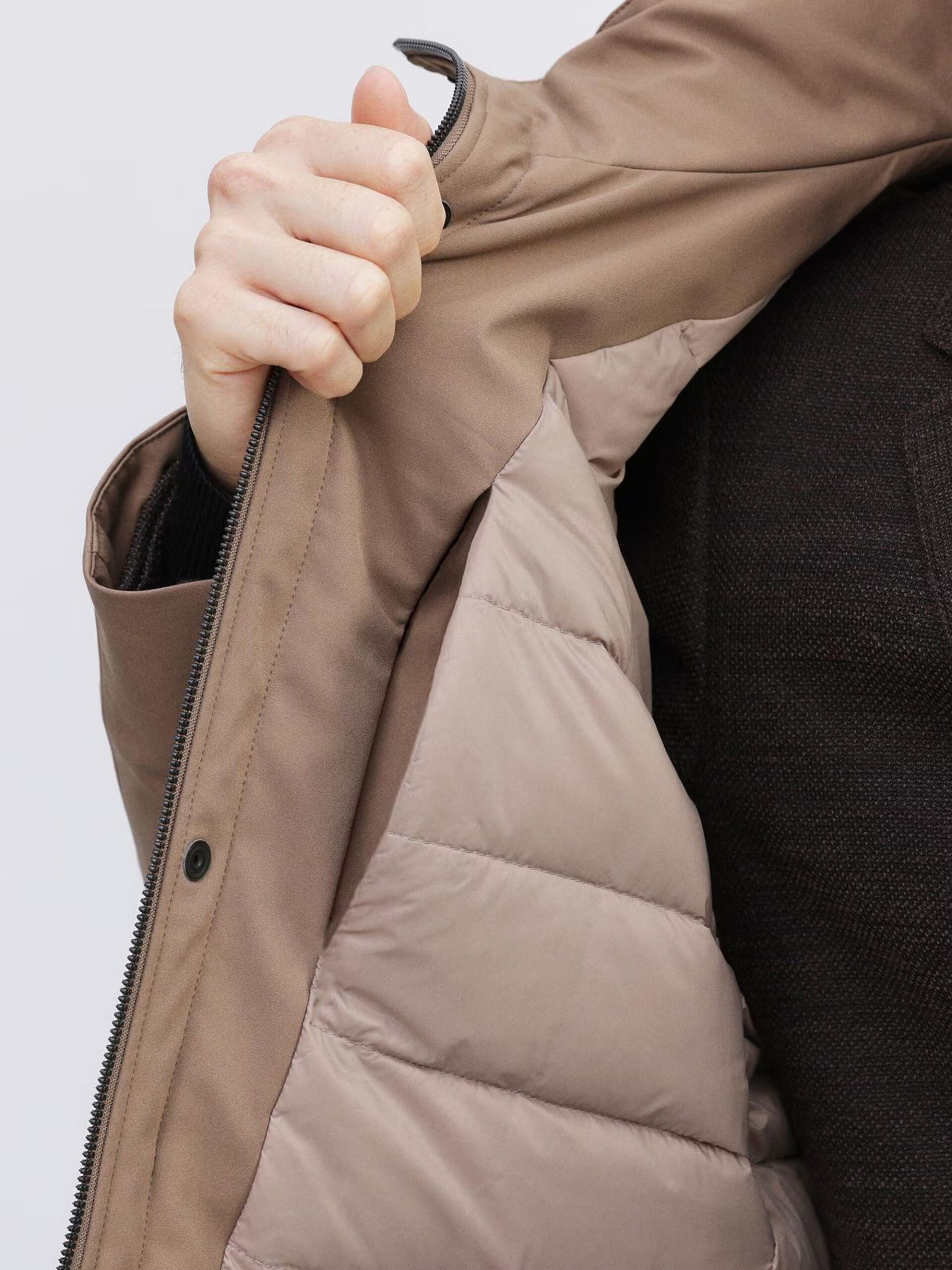 ใช้ผ้ายืดผิวเรียบทั้งตัว ทำให้ได้ทั้งความอบอุ่นและความมีสไตล์ ด้วยปริมาณไส้ขนดาวน์ที่เหมาะสม ใช้ขนดาวน์คุณภาพ 700 ฟิลพาวเวอร์ 90% ให้ความอบอุ่นสูงกว่าที่เห็น ทำให้เสื้อตัวนี้เป็นไอเทมที่เหมาะกับฤดูหนาว โครงสร้าง 3 ชั้น ประกอบด้วยผ้าด้านนอก ขนดาวน์ และผ้าซับในบาง ๆ ทำให้เสื้อเบามาก แม้จะเบา แต่ฝีมือการเย็บประณีตทุกขั้นตอนทำให้ได้เสื้อที่ทั้งสวยงามและใส่สบาย