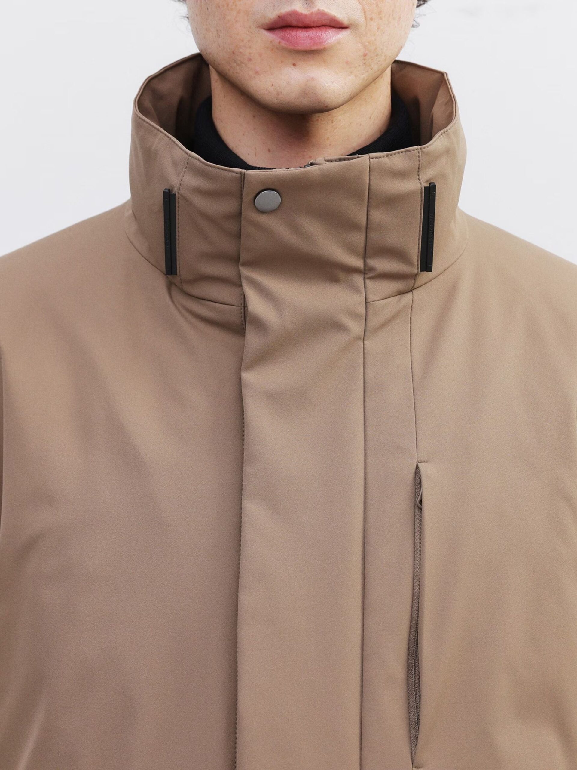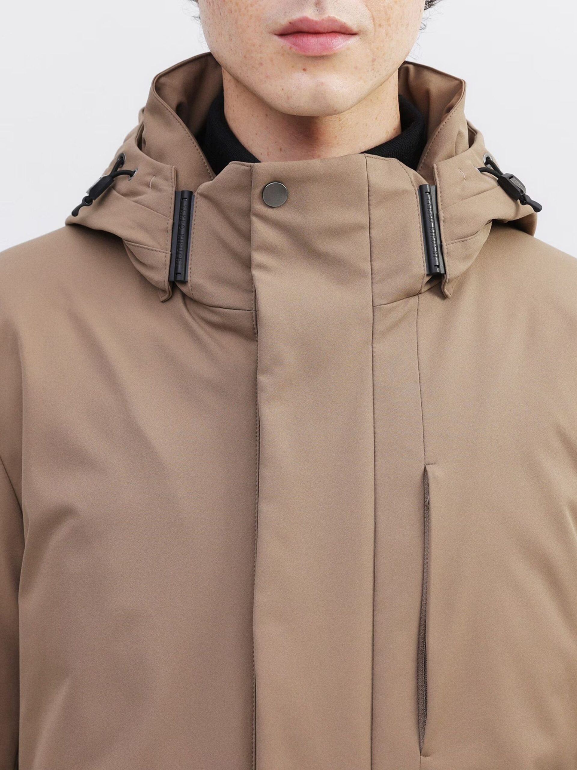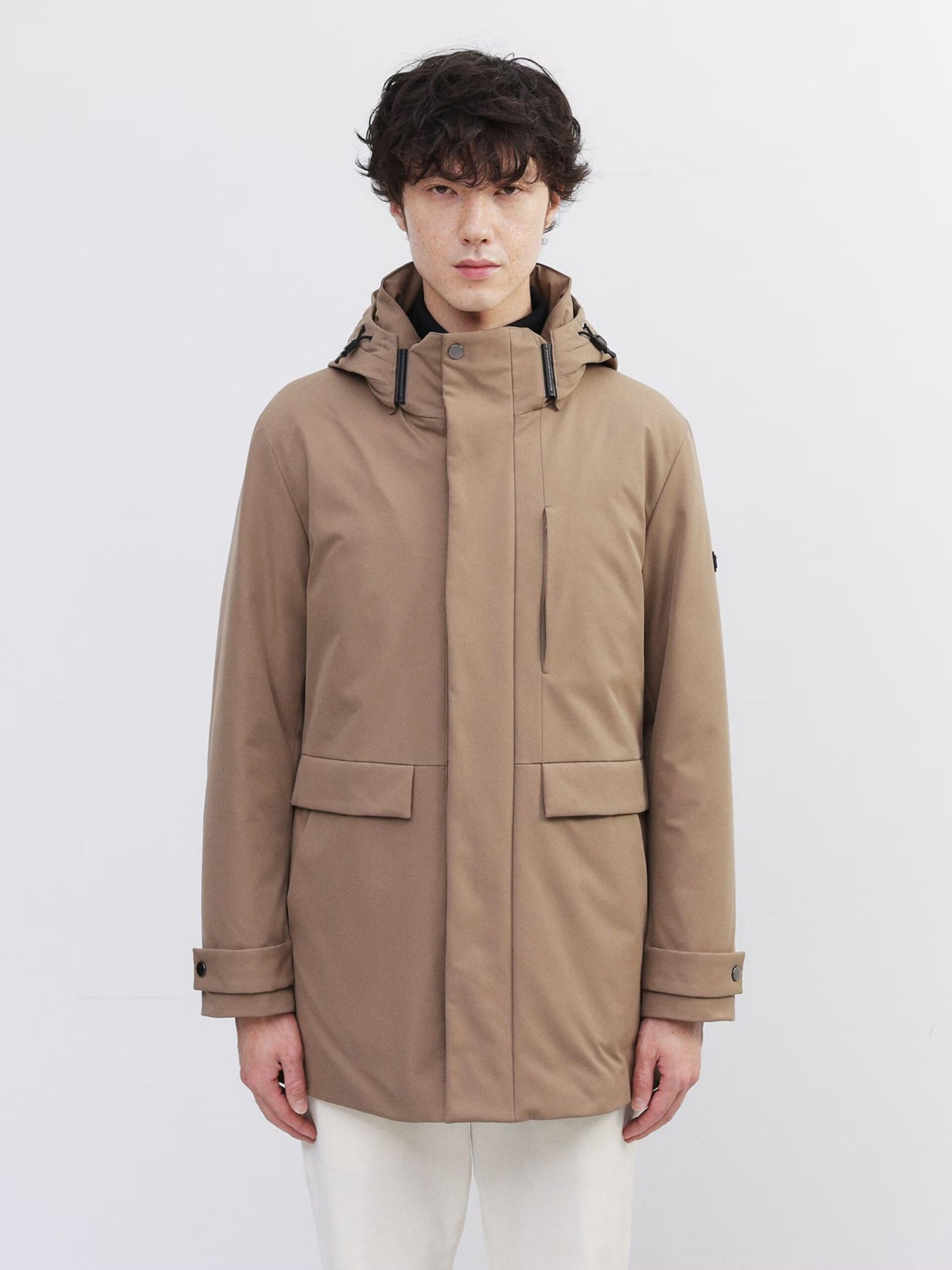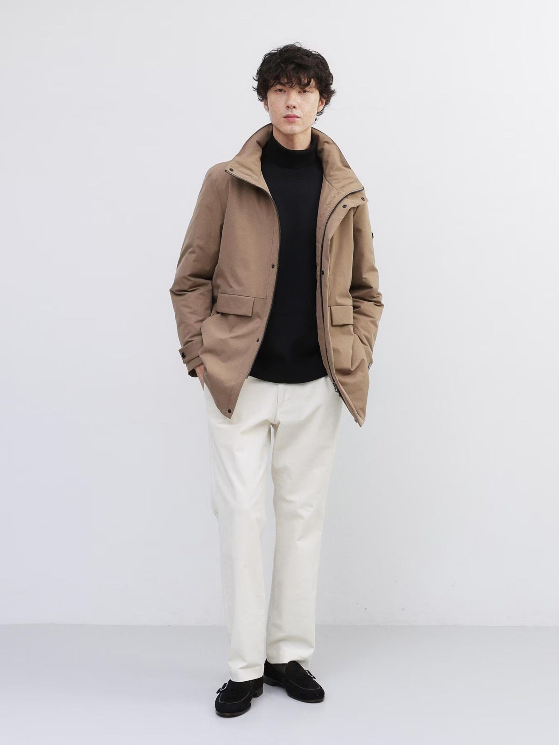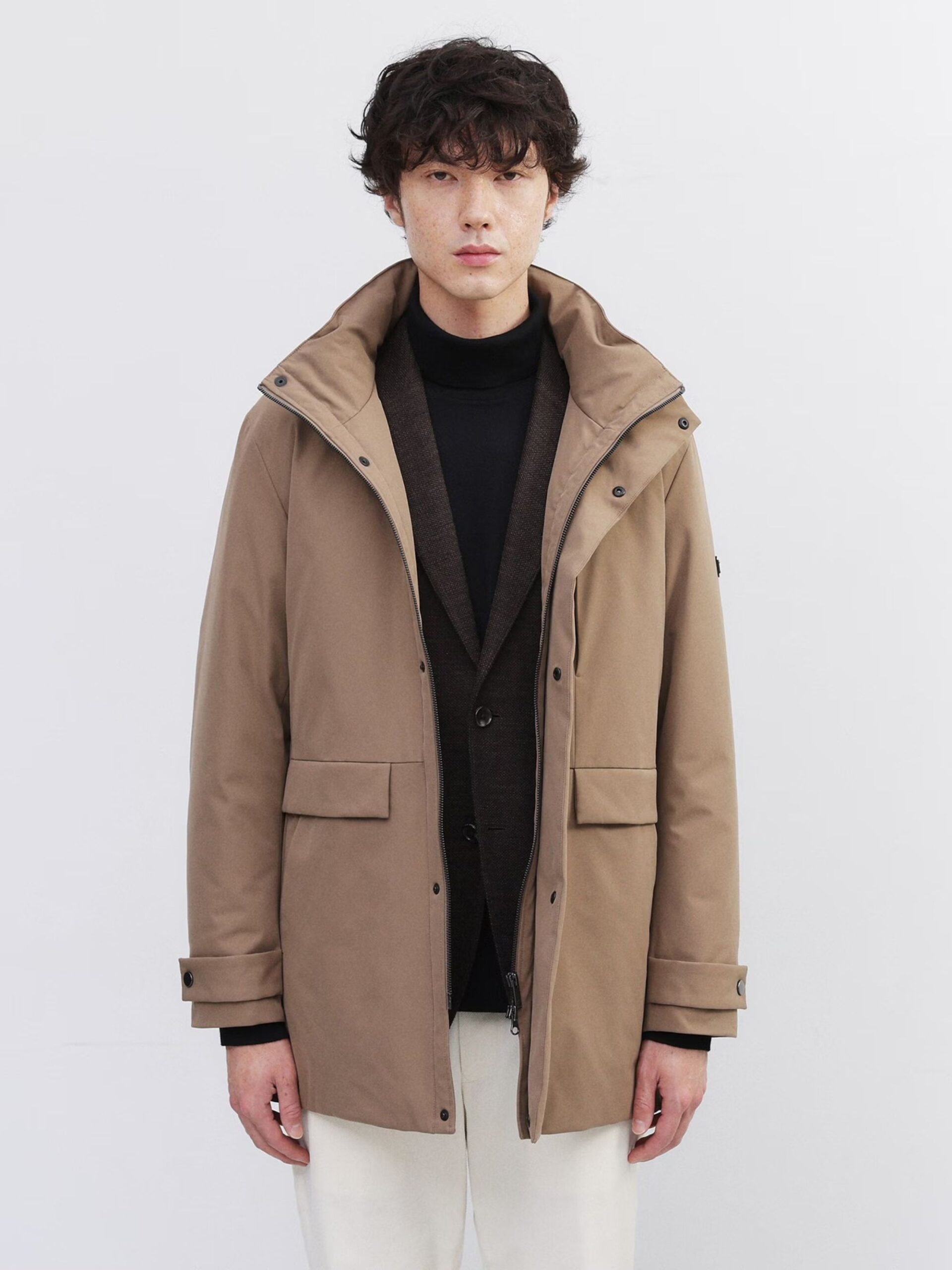 ใช้ผ้ายืดผิวเรียบทั้งตัว ทำให้ได้ทั้งความอบอุ่นและความมีสไตล์ ด้วยปริมาณไส้ขนดาวน์ที่เหมาะสม ใช้ขนดาวน์คุณภาพ 700 ฟิลพาวเวอร์ 90% ให้ความอบอุ่นสูงกว่าที่เห็น ทำให้เสื้อตัวนี้เป็นไอเทมที่เหมาะกับฤดูหนาว โครงสร้าง 3 ชั้น ประกอบด้วยผ้าด้านนอก ขนดาวน์ และผ้าซับในบาง ๆ ทำให้เสื้อเบามาก แม้จะเบา แต่ฝีมือการเย็บประณีตทุกขั้นตอนทำให้ได้เสื้อที่ทั้งสวยงามและใส่สบาย