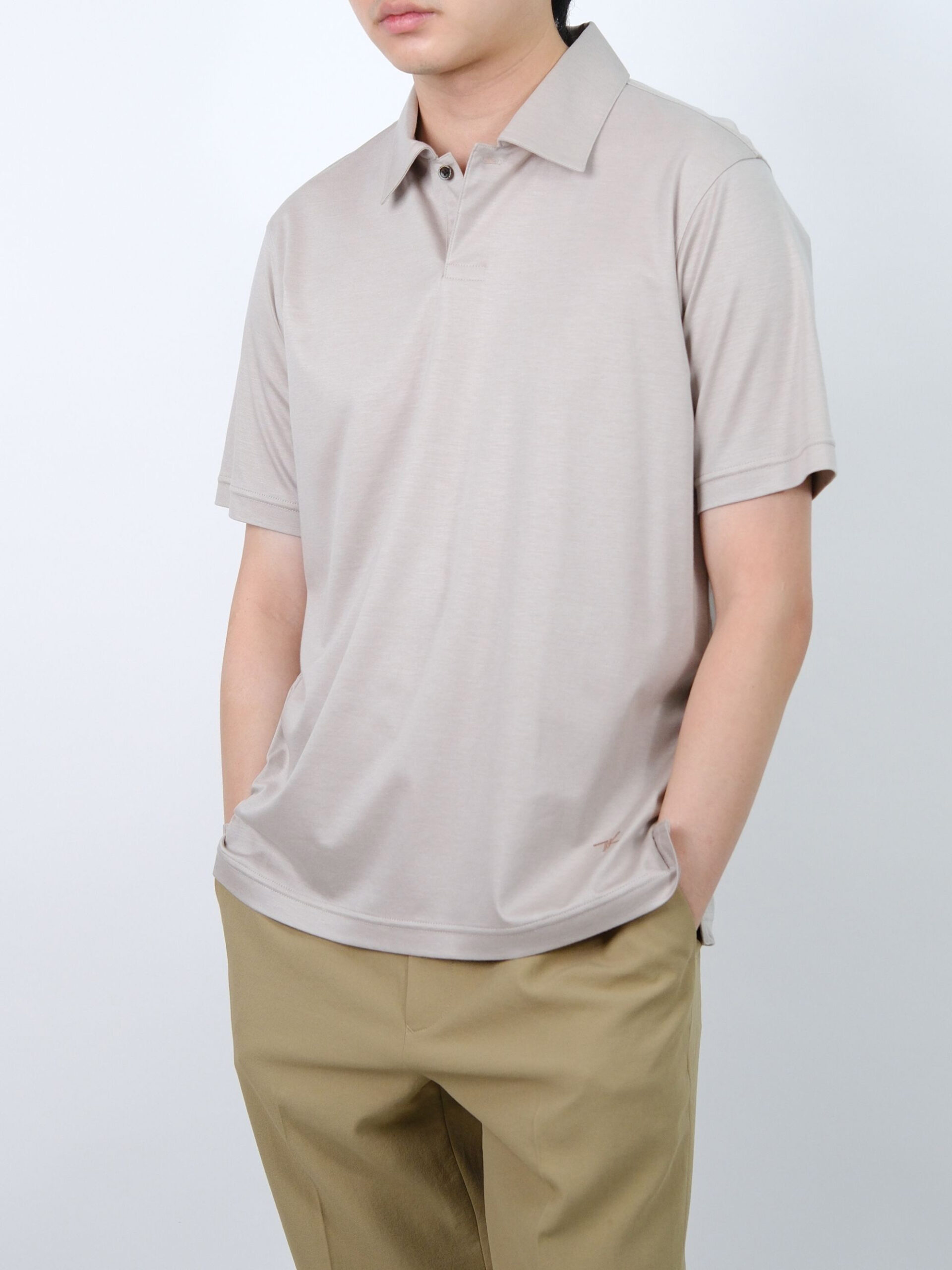 BEIGE PRIMEFLEX DOTAIR OPEN COLLAR SHIRT (K8183402)