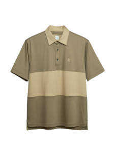 Polo shirt ที่ตัดต่อตรงช่วงกลางตัวด้วยผ้าสีต่างที่มีสรในทางเดียวกัน ตามสี concept ของ season นี้ นอกจากช่วงกลางตัวแล้ว ปกและสาบใน ก็จะเป็นสีต่างเช่นกัน ให้ดูเป็นแนว Classic สามารถ match ได้ง่าย