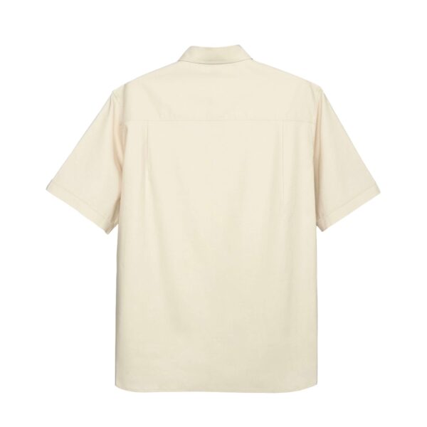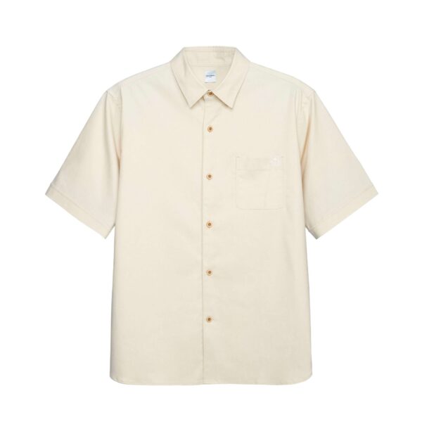 เสื้อเชิ้ตแขนสั้น ใย Organic hemp ให้ความรู้สึก summer และมีความทนทาน ส่วน Polyester ที่เลือกใช้ เป็น Recycled polyester + PU ทำให้ยืดและใส่สบาย มีคุณสมบัติ UV protection, Quick dry และ Cool Touch