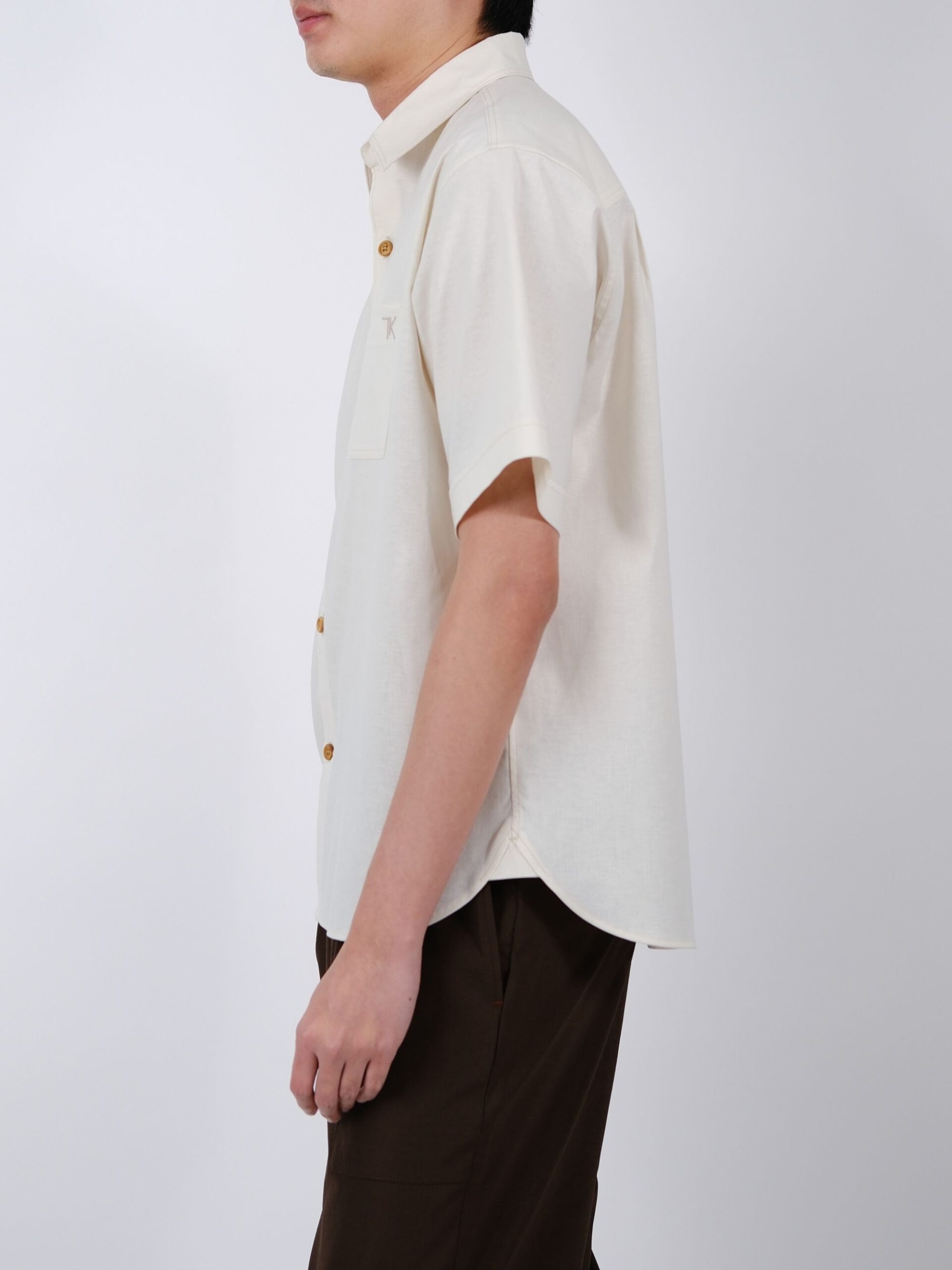 BEIGE STRETCH BLENDED HEMP SUMMER SHIRT (K8183998)