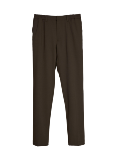 ดีไซน์ของกางเกงเป็นแบบ Easy Pants ที่เน้นลุคสุภาพ เรียบหรู สไตล์อิตาเลียน เหมาะสำหรับใส่ไปทำงาน สามารถรีดสันกางเกงให้ดูทางการมากยิ่งขึ้น ตัวกางเกงไม่มีเชือกผูกเอว แต่ใช้ขอบเอวแบบยางยืด พร้อมตะขอเกี่ยว เพิ่มความกระชับและดูเรียบร้อยยิ่งขึ้น