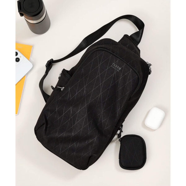 กระเป๋าคาดตัวใบนี้ถูกออกแบบให้ น้ำหนักเบา บรรจุของได้เยอะ และใช้งานสะดวก ซึ่งสะท้อนอยู่ในดีไซน์โดยรวม มาพร้อม มัลติเคสพร้อมคาราบิเนอร์ ที่สามารถเก็บหูฟังบลูทูธ, แก็ดเจ็ตขนาดเล็ก, เหรียญ ฯลฯ ได้อย่างสะดวก และสามารถถอดออกจากกระเป๋าเพื่อนำไปคล้องกับหูกางเกงได้ เมื่อเปิดซิปด้านหน้าของกระเป๋า จะพบกับ ช่องนีโอพรีน และ ช่องซิป ส่วนภายในกระเป๋าหลักมี ช่องใส่แท็บเล็ต, ช่องซิป และช่องเล็กสำหรับเก็บของจุกจิก