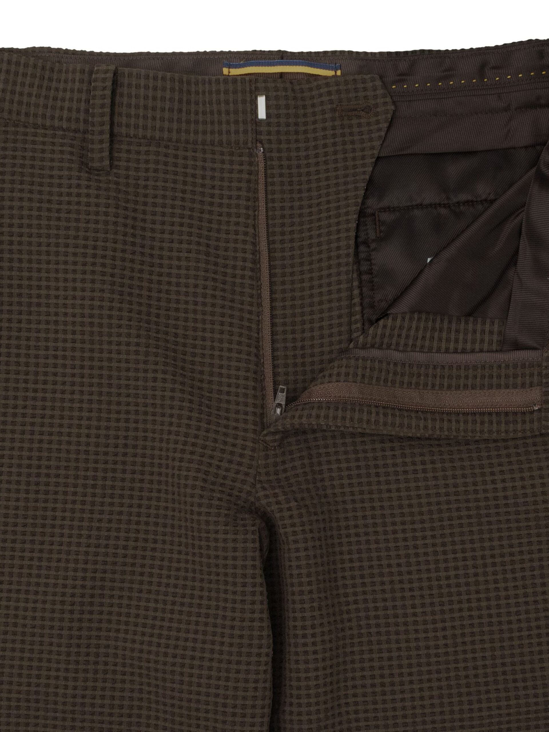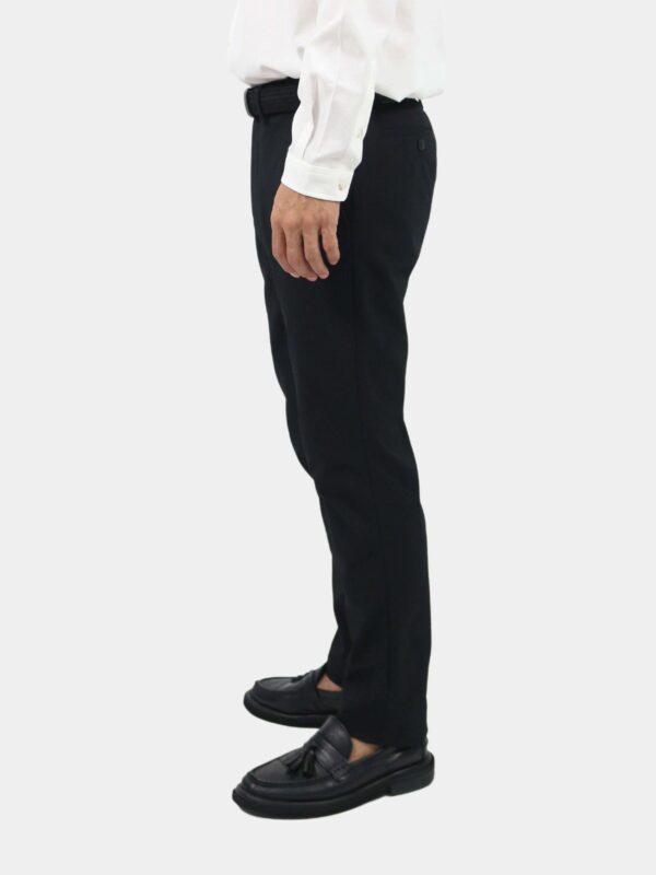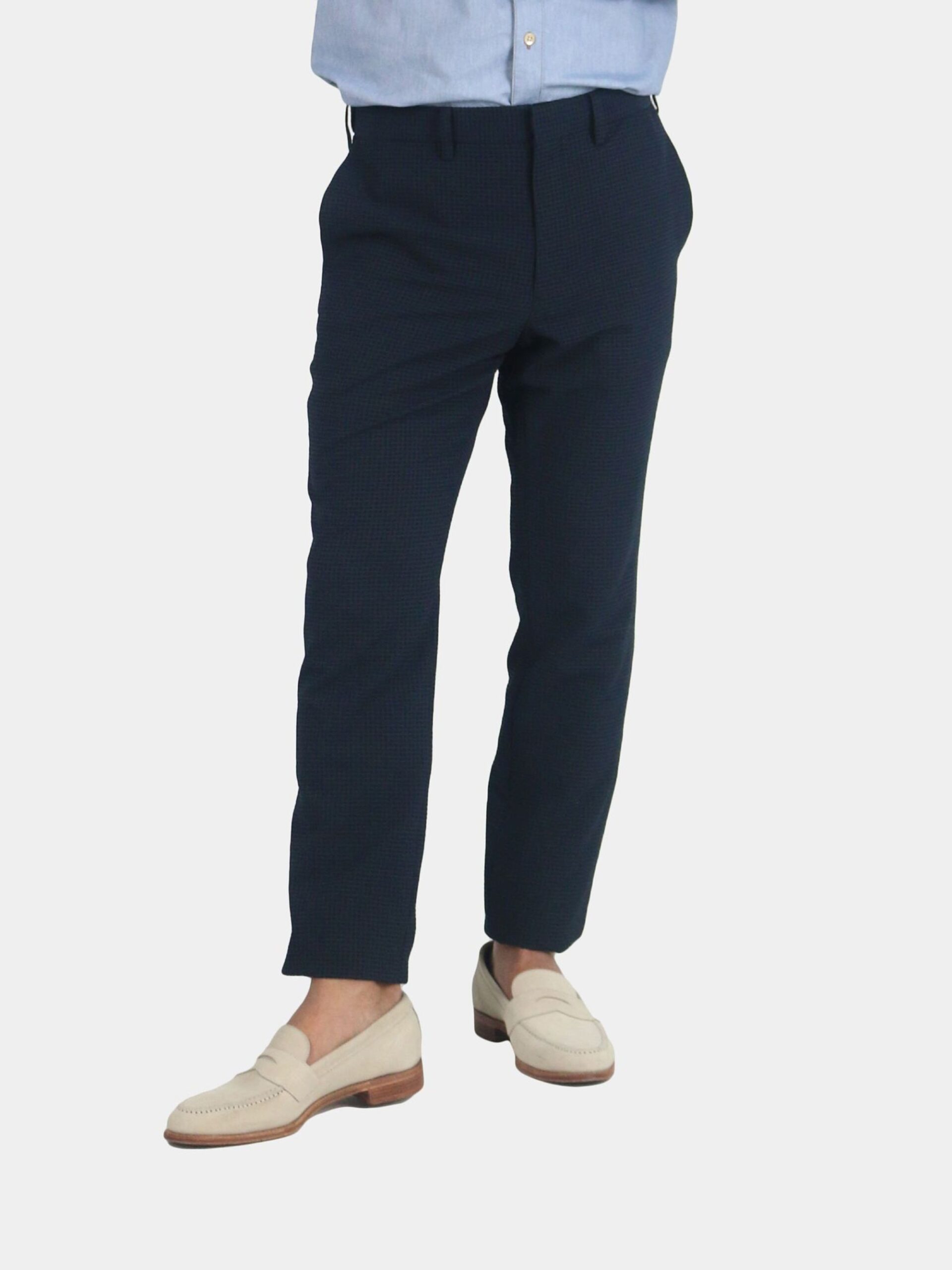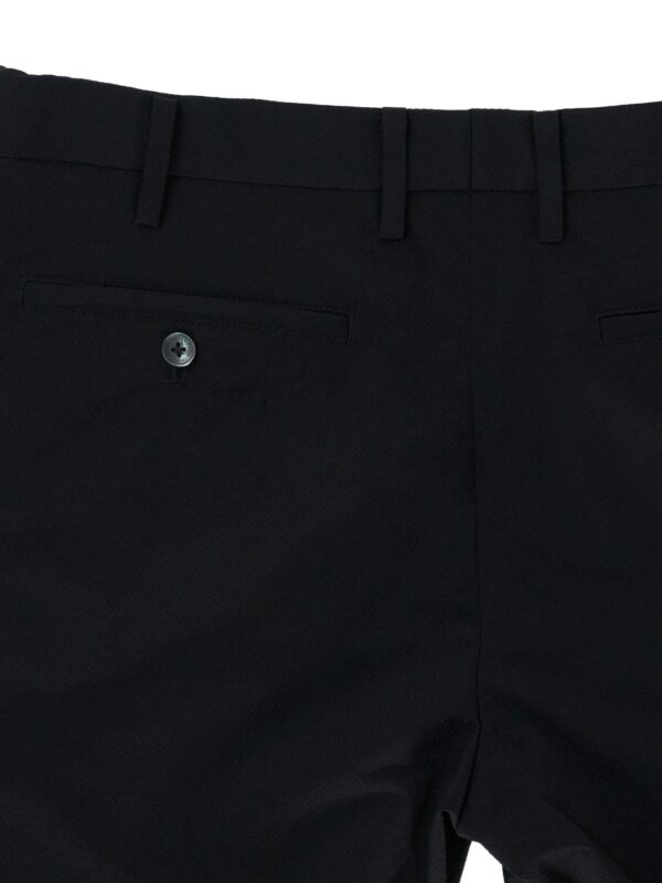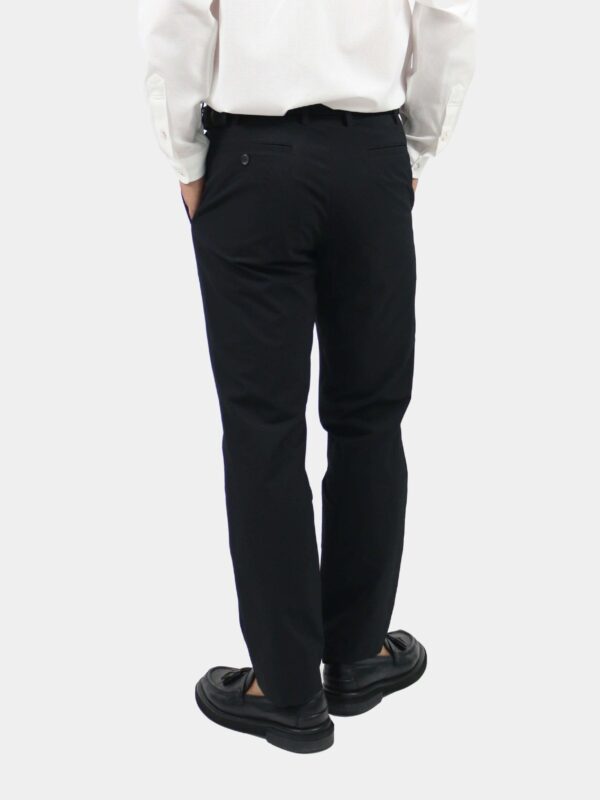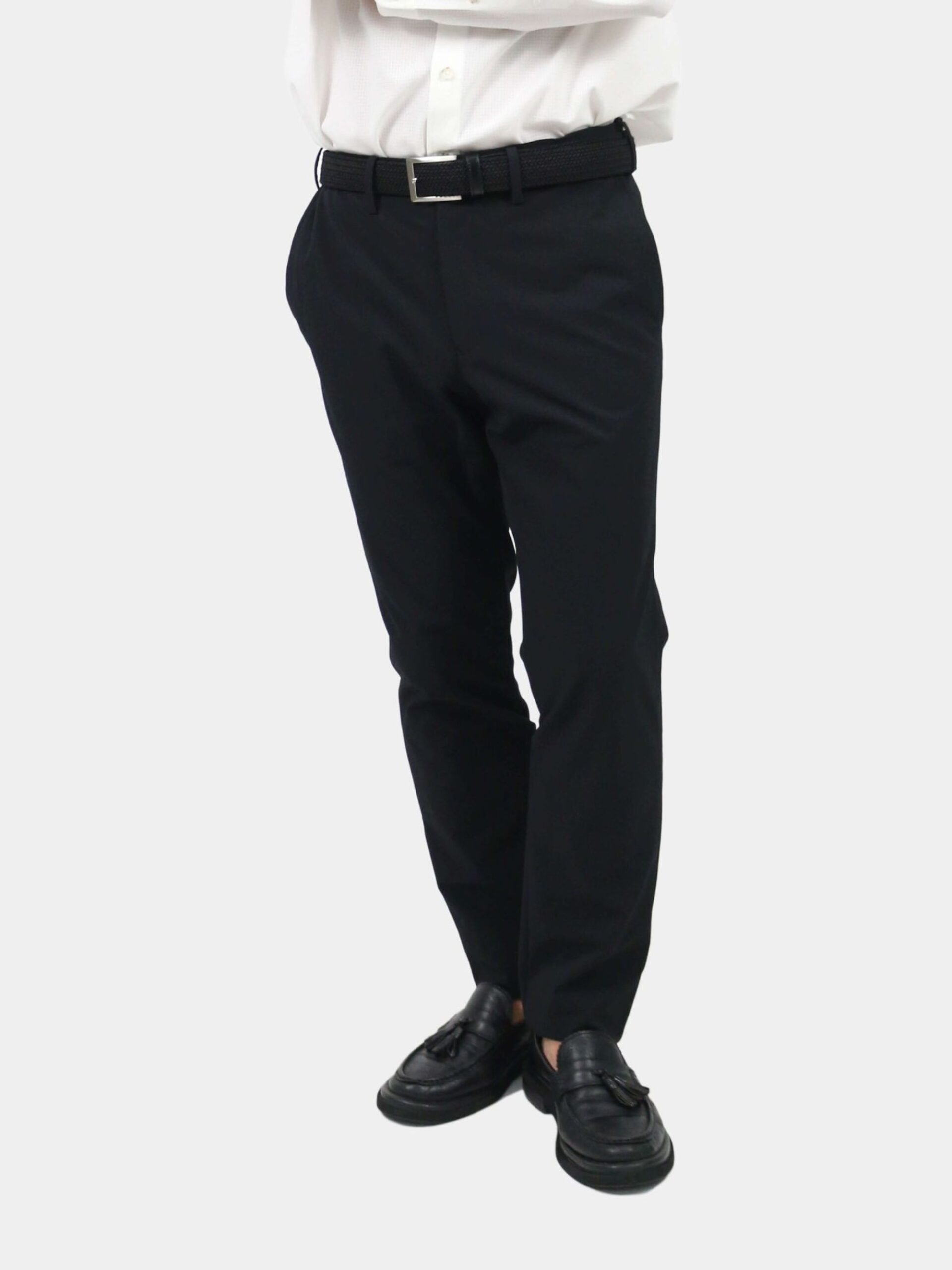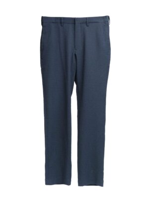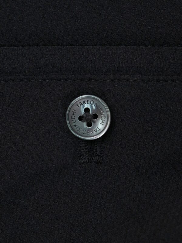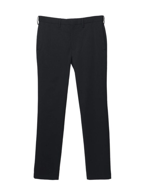 กางเกงขายาว ผ้า polyester solotex ส่วนผสมในผ้ามีทำมาจากพืช (37%) ในขั้นตอนการผลิตจึงไม่ปล่อยคาร์บอนเข้าสู่ชั้นบรรยากาศ จึงเรียกได้ว่าเป็น Eco friendly นอกจากนั้นโครงสร้างผ้ามีความแข็งแรง ยับยาก แห้งเร็ว และเป็น 2Way stretch