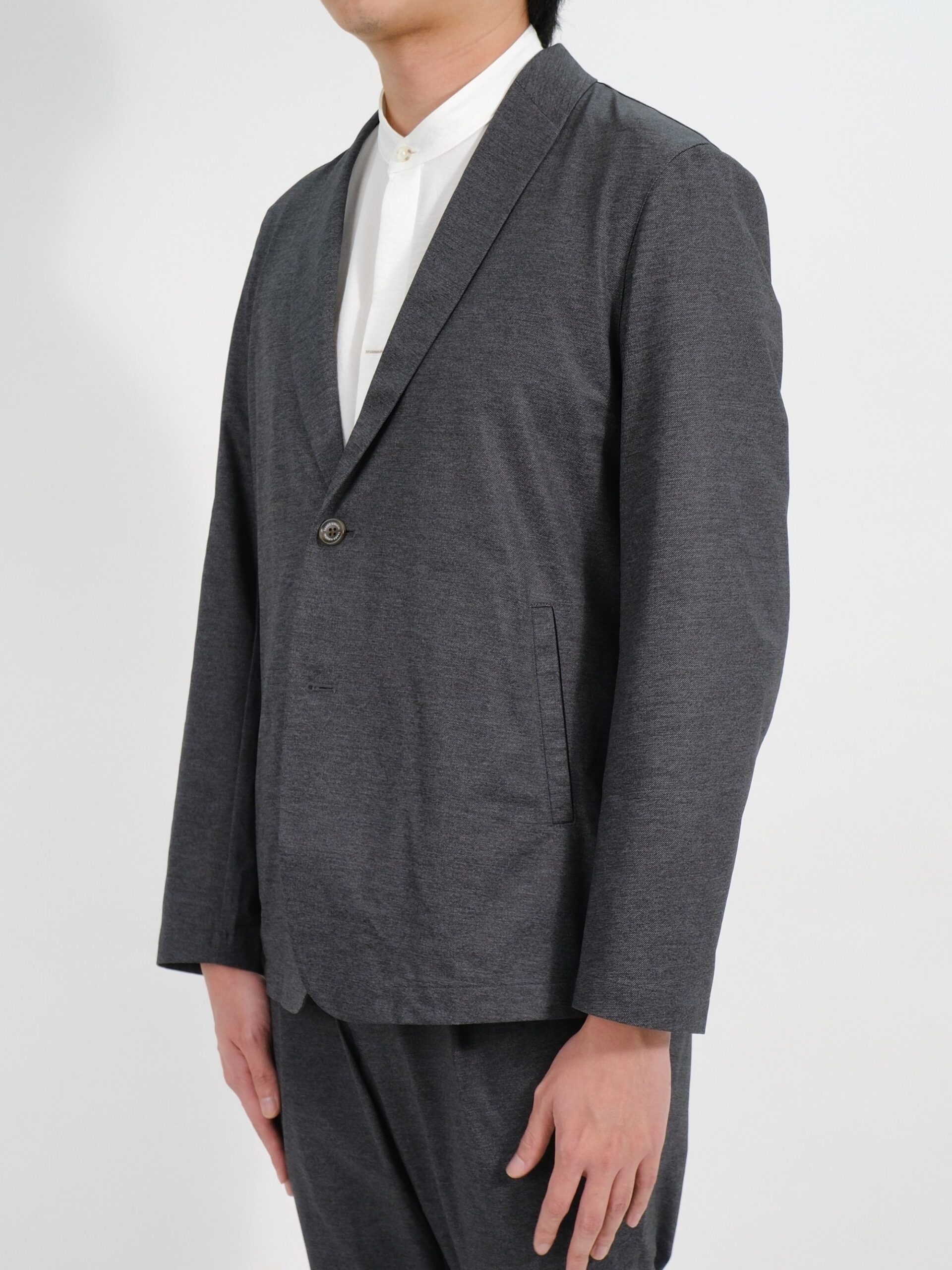 Shawl Collar Cardigan ตัวนี้ทำออกมาเป็นแจ็คเก็ตกึ่งทางการ สามารถใส่คลุมเสื้อยืดหรือเชิ้ตก็ได้ เนื้อผ้ามีความเบา และตัวผ้ามีการพิมพ์ลาย Denim ทำให้ดูแคสชวล สบายๆ แต่ยังคงความสุภาพ สามารใส่ได้ในหลากหลายโอกาส ไม่ว่าจะลำลองหรือทางการ