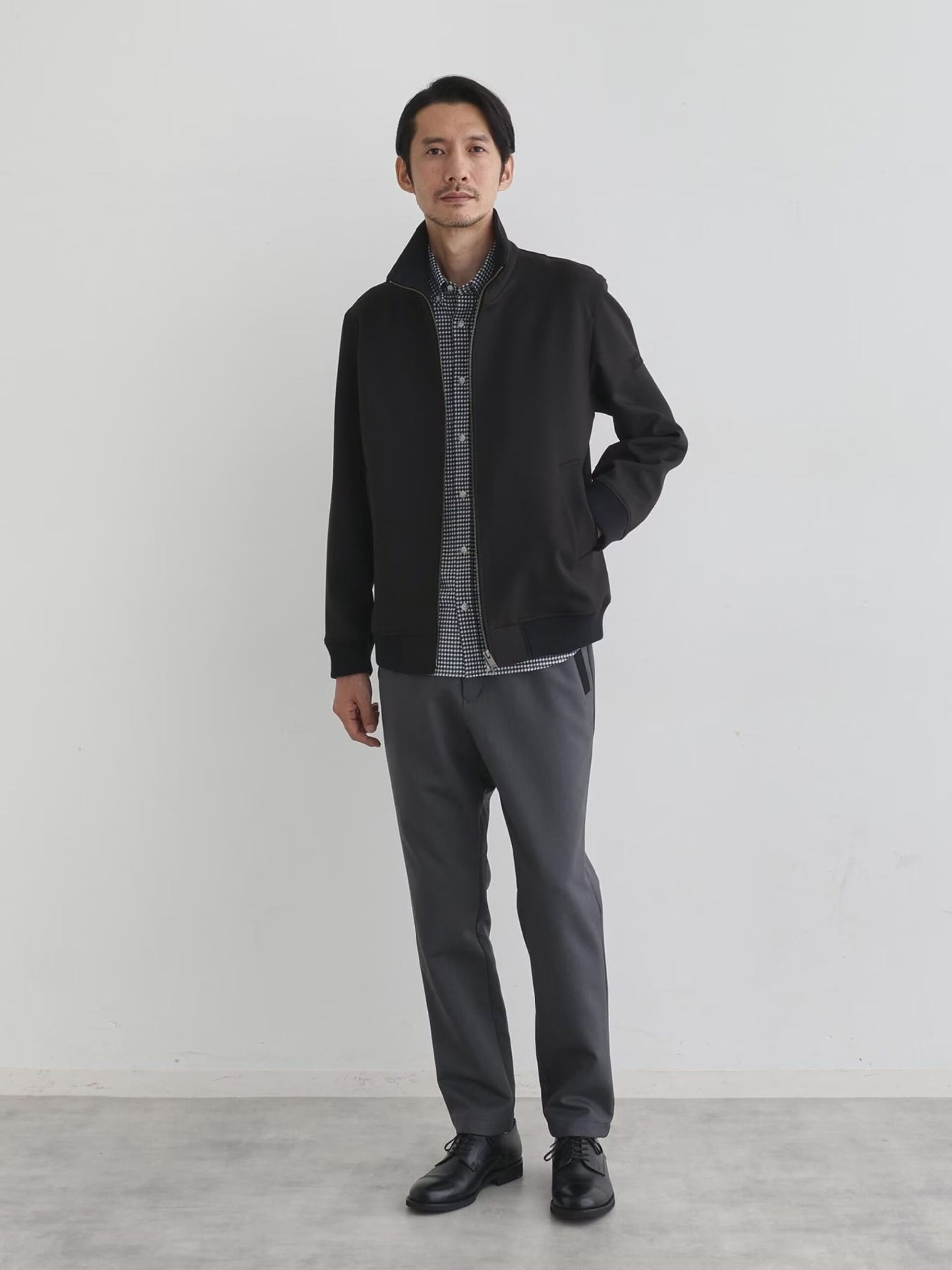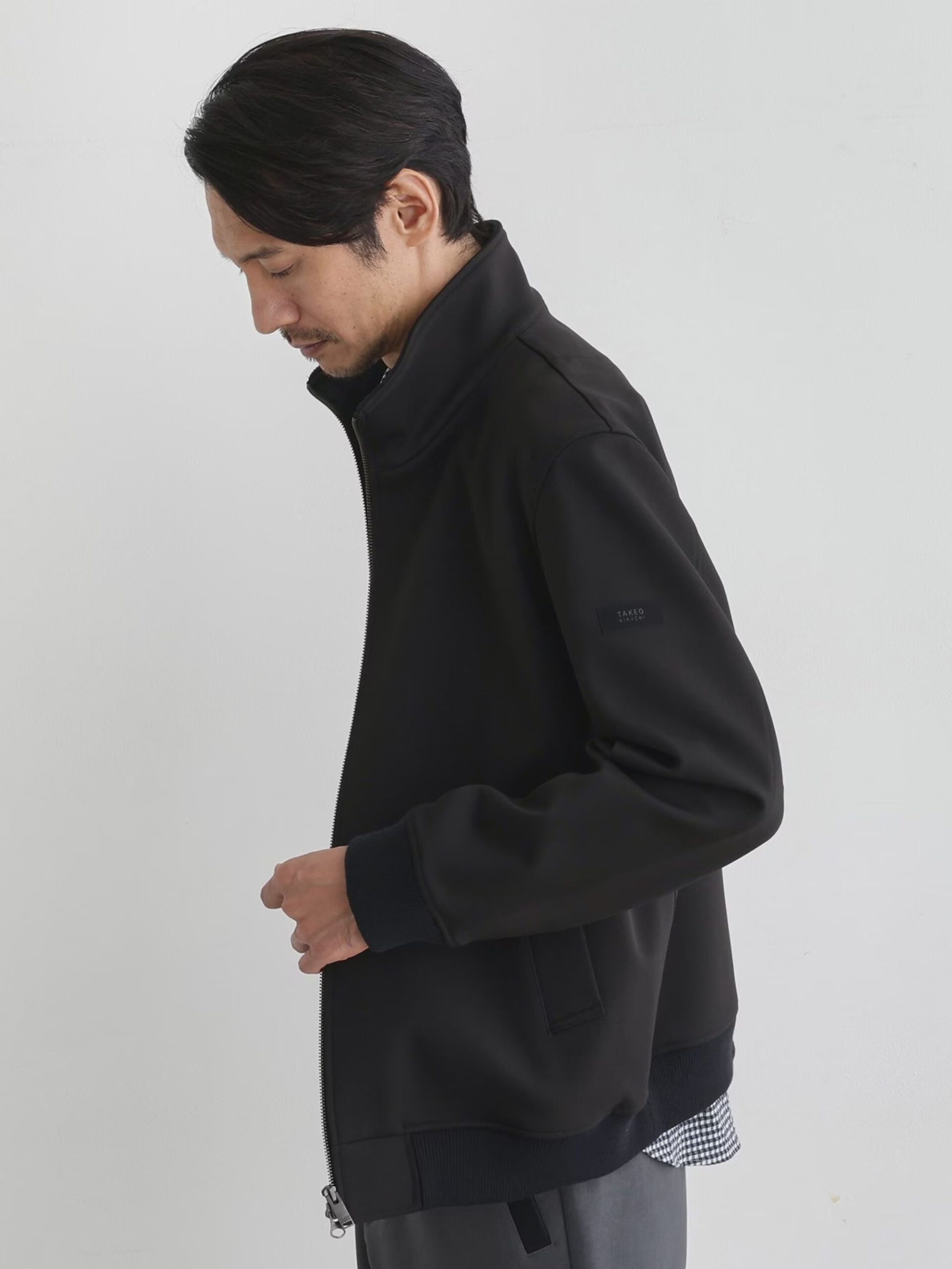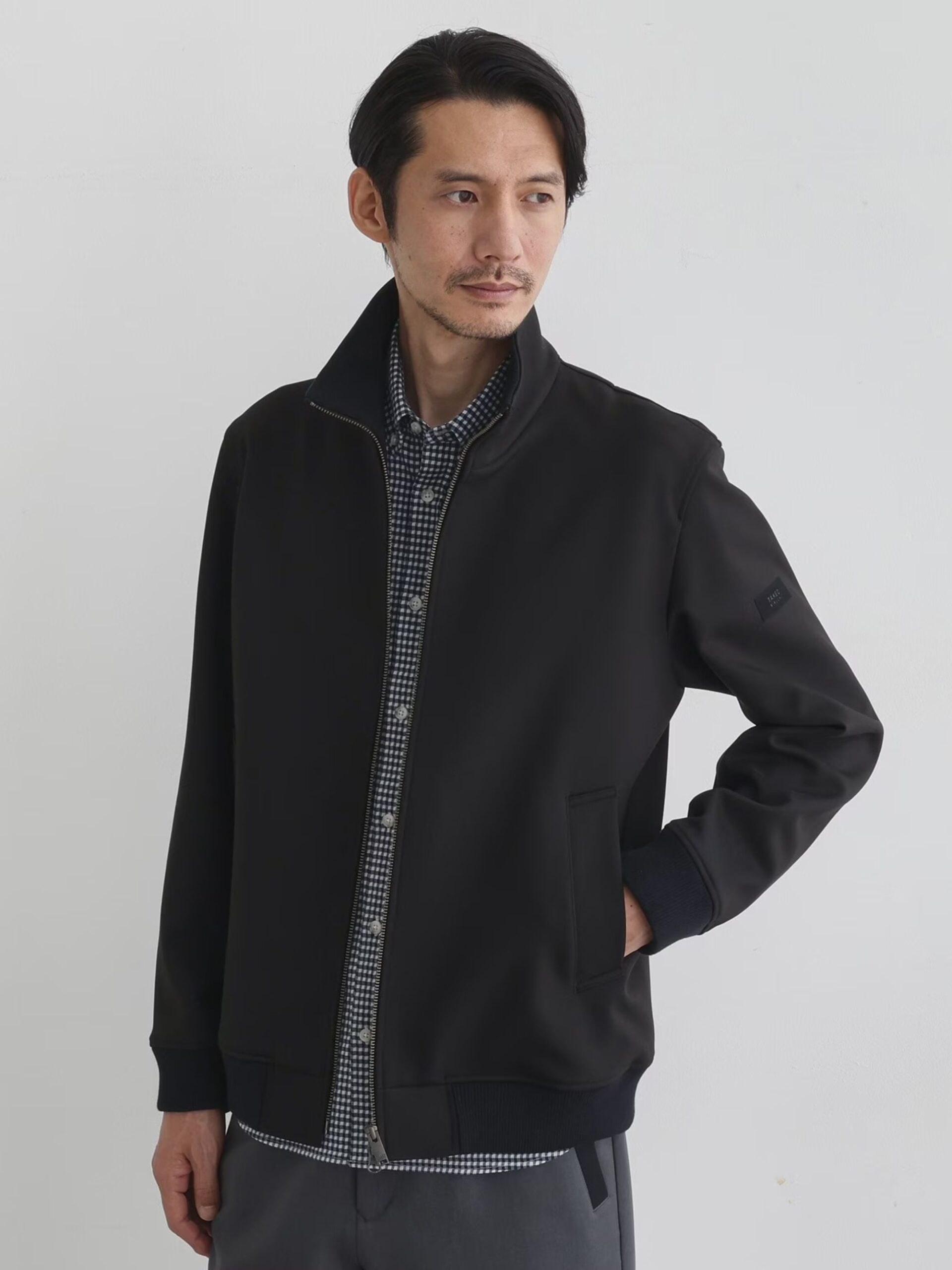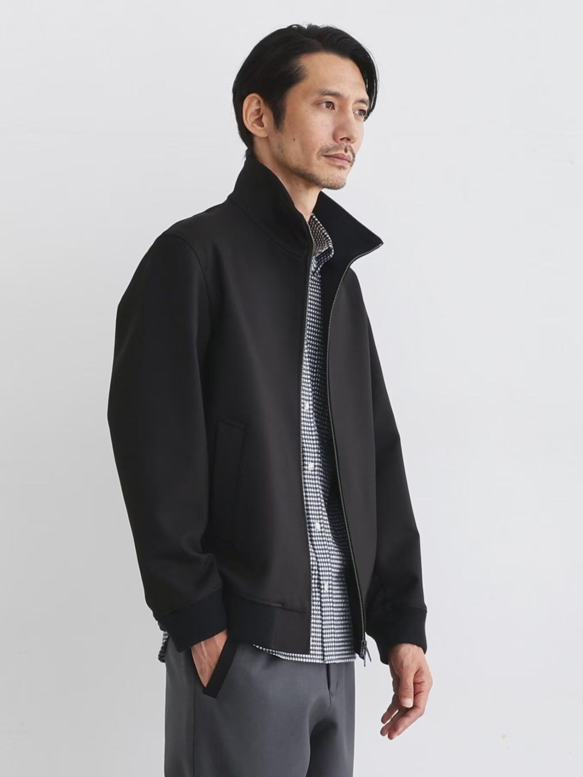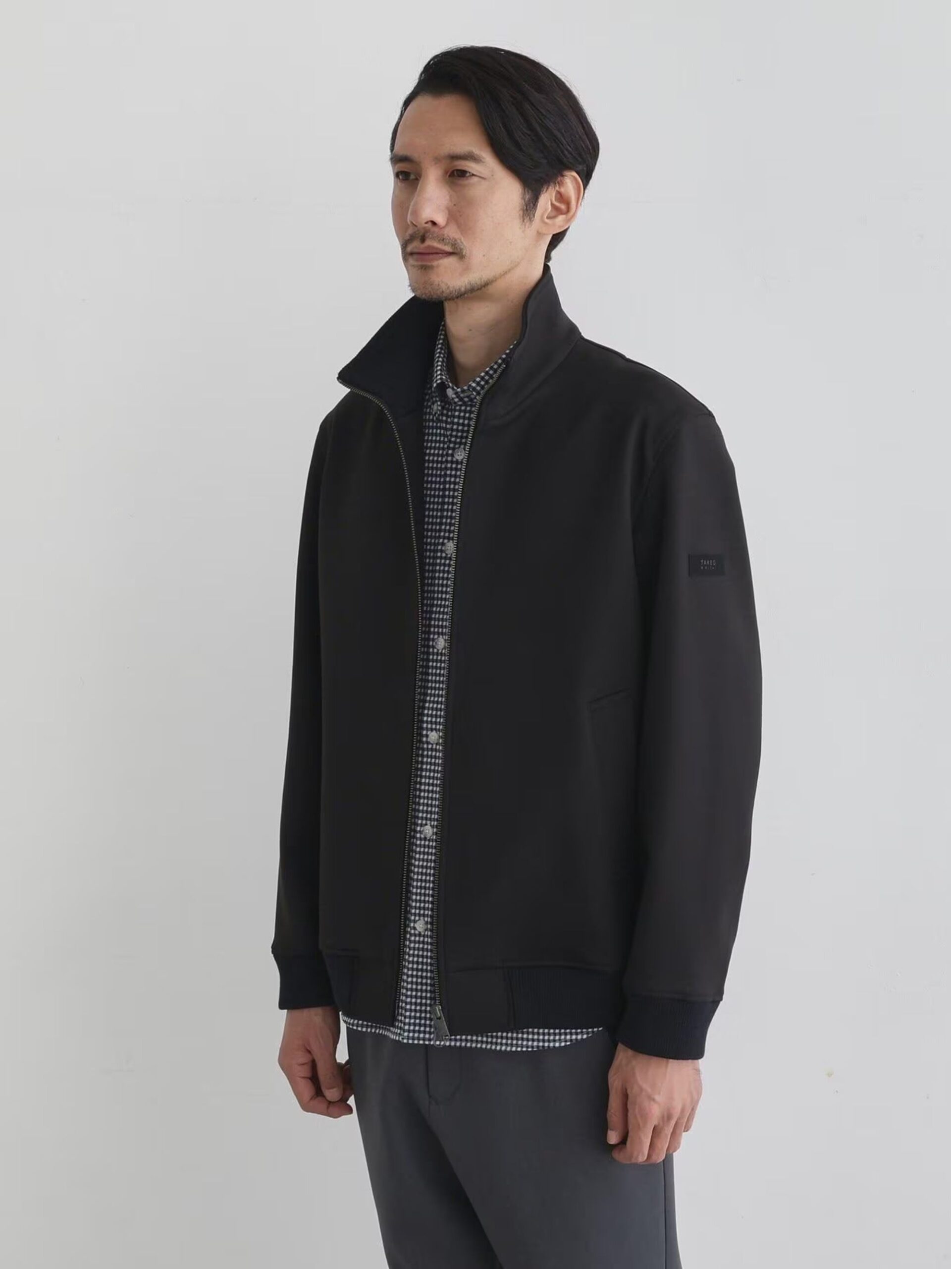 BLACK DOWN FABRIC RIBBED ZIP JACKET (93154001) *ECS
