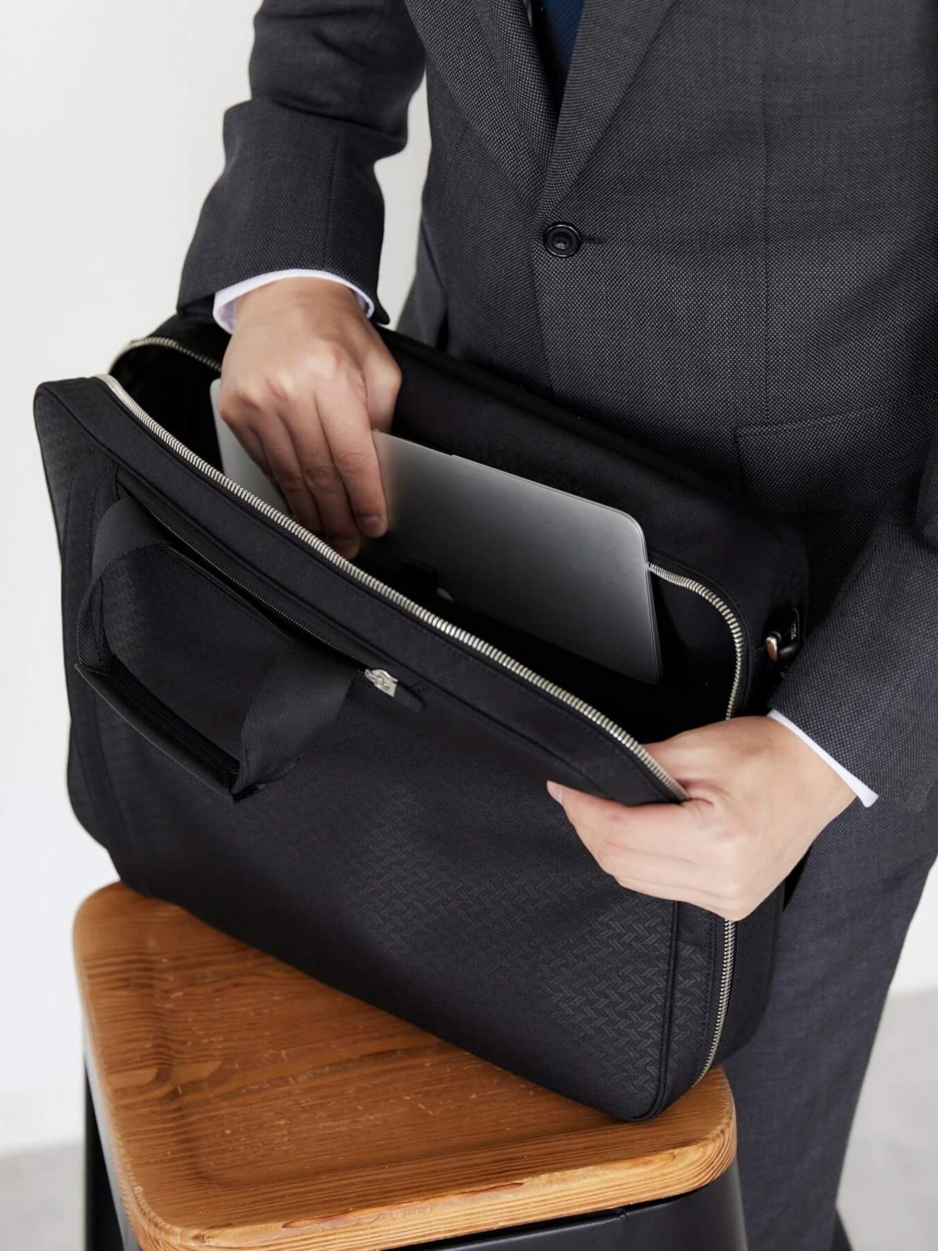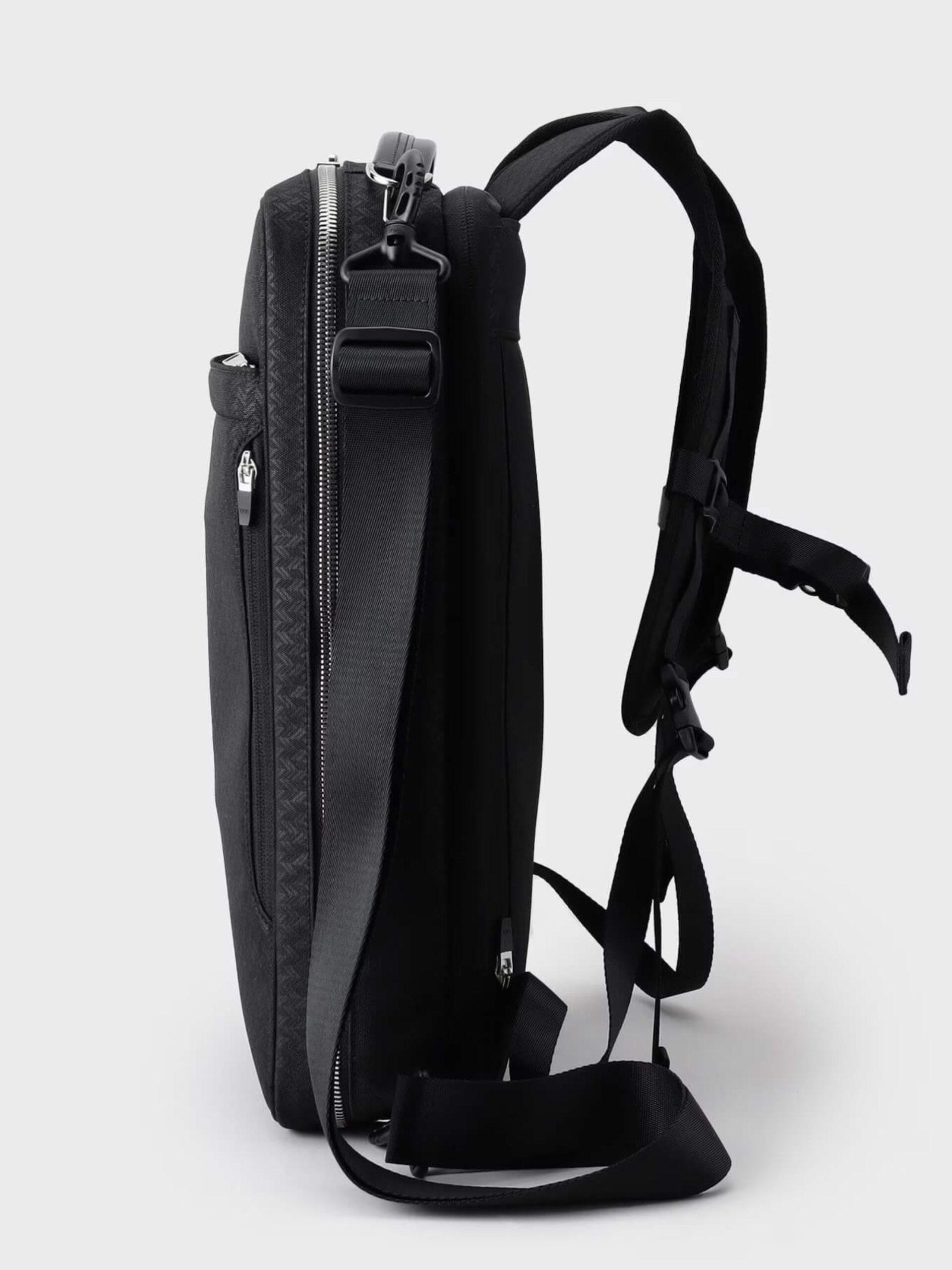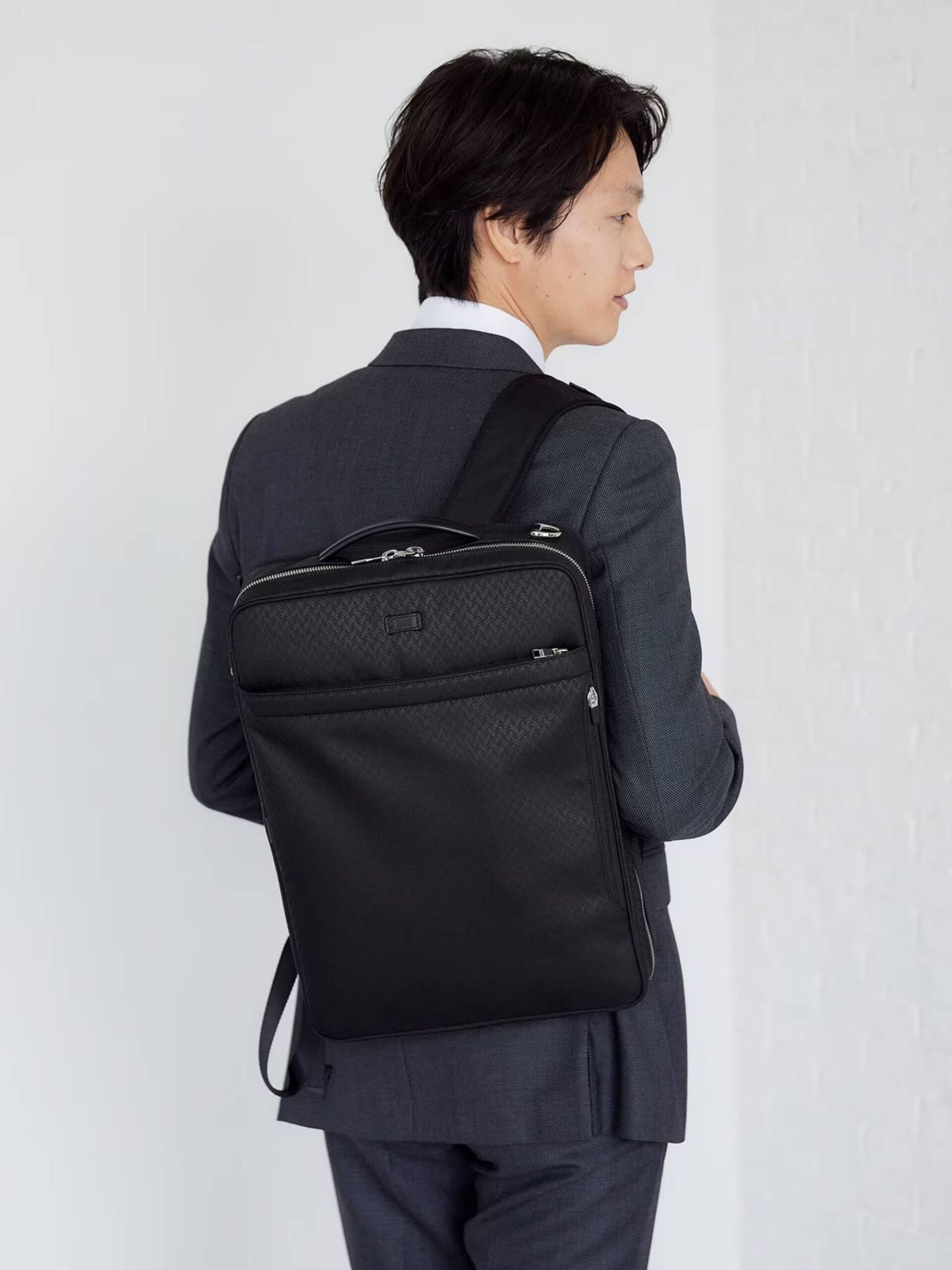 กระเป๋าธุรกิจ 3-Way ลาย Yagasuri ดั้งเดิม ใช้งานได้ 3 รูปแบบ: เป้สะพายหลัง, สะพายไหล่, และกระเป๋าถือ ด้วยขนาดของสมาร์ทโฟนที่ใหญ่ขึ้น ทำให้การถือด้วยมือเดียวเป็นเรื่องยาก กระเป๋าเป้สะพายหลังแบบนี้ได้รับความนิยม เพราะช่วยให้มือทั้งสองข้างของคุณเป็นอิสระ มาพร้อมปลอกกันกระแทกสำหรับใส่แล็ปท็อปขนาด 15 นิ้ว ด้ามจับของกระเป๋าถือสามารถเก็บซ่อนได้เพื่อให้ดูเรียบร้อย ลวดลาย Yagasuri ดั้งเดิมผลิตจากวัสดุโพลีเอสเตอร์ที่เคลือบสารกันน้ำ ทำให้สามารถป้องกันน้ำได้ดี ลวดลายแบบ Herringbone ถูกออกแบบให้อยู่ในแนวตั้ง เพื่อให้เหมาะกับการใช้งานแบบเป้สะพายหลัง