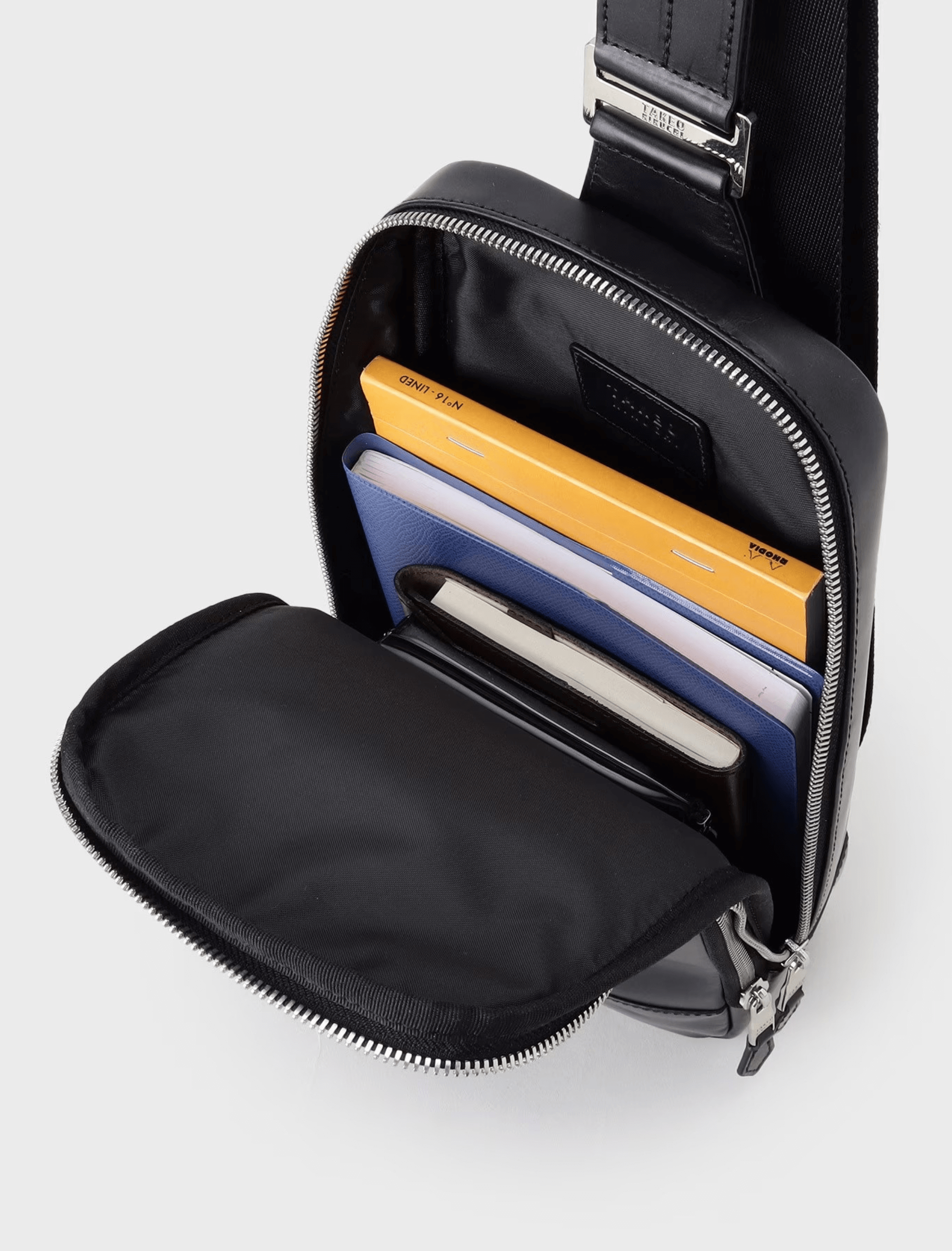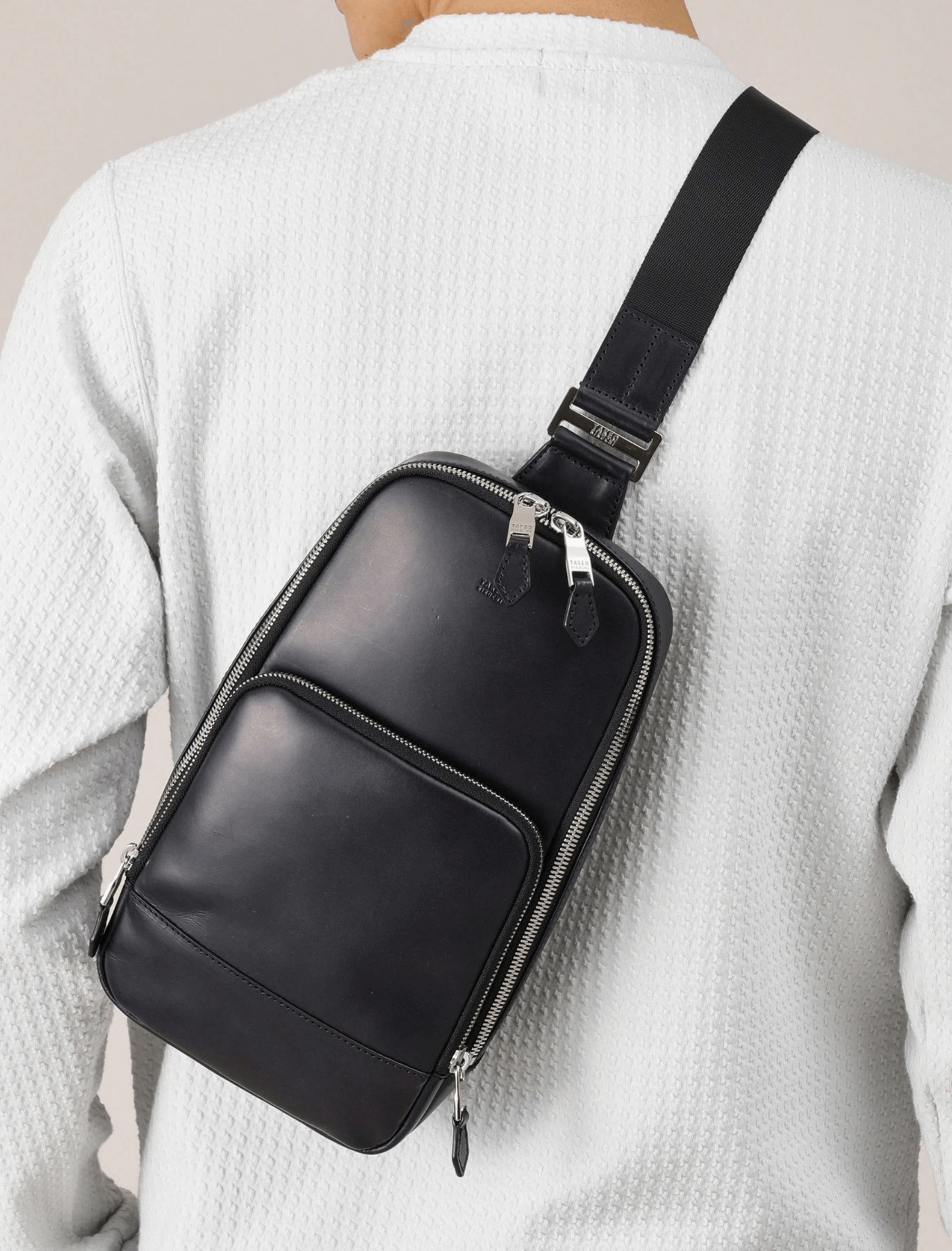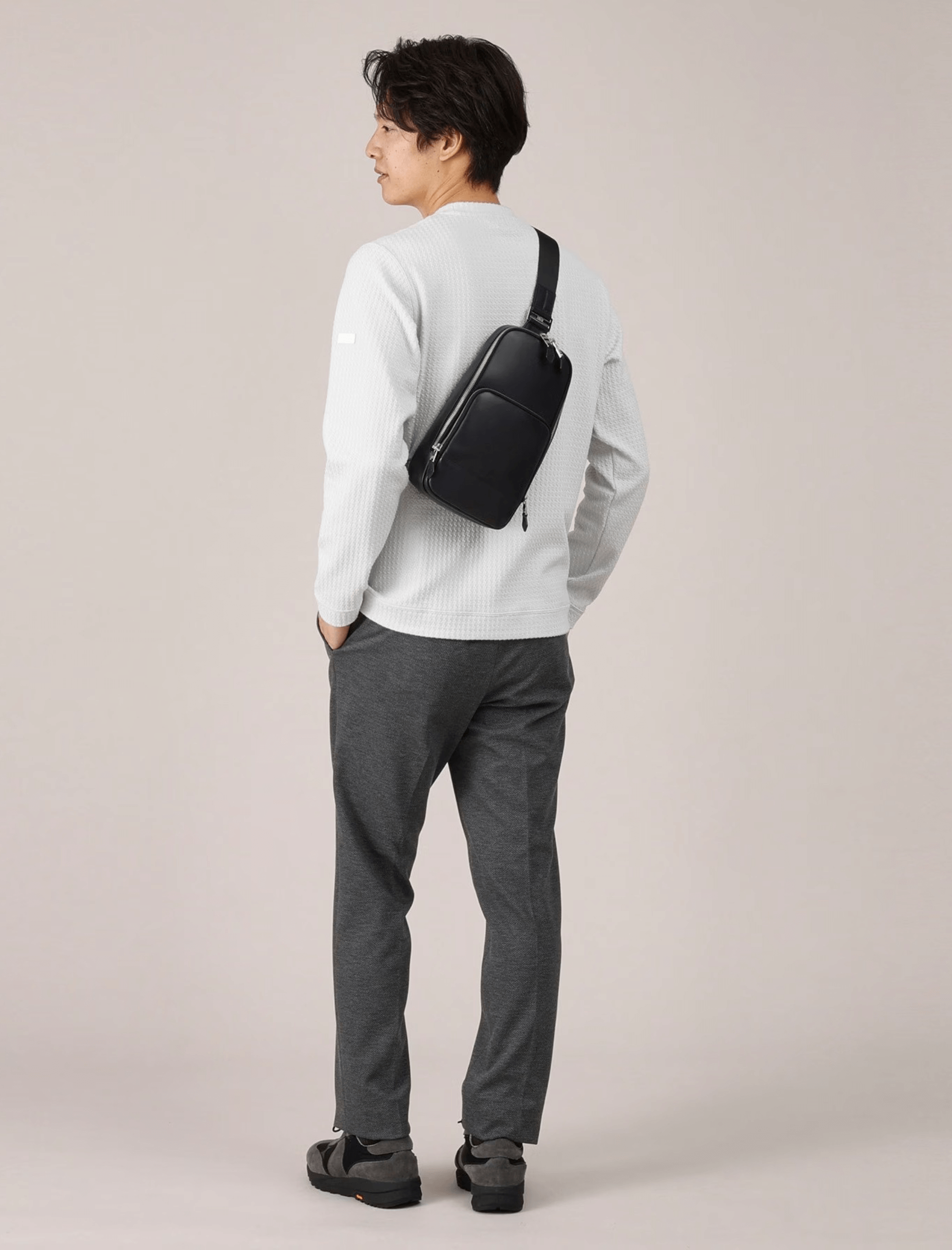 กระเป๋าสะพายไหล่ข้างเดียวทรงแนวตั้งแบบพื้นฐาน ผลิตจากหนัง Oil Glass แท้ที่พัฒนาขึ้นเฉพาะ การทาน้ำมันด้วยมือทำให้เกิดลวดลายพื้นผิวที่ไม่สม่ำเสมออย่างมีเอกลักษณ์ ขนาดกะทัดรัด ใช้งานสะดวก กระเป๋าสะพายใบนี้ช่วยยกระดับสไตล์ลำลองของผู้ใหญ่ให้ดูหรูหราและมีรสนิยม ด้านที่สัมผัสกับร่างกายทำจากวัสดุ Air Mesh ช่วยลดความอับชื้น ตัวกระเป๋าเปิดกว้าง พร้อมซิปที่รูดลื่น มีการออกแบบช่องใส่ของและห่วง D-ring ให้ใช้งานง่ายทั้งผู้ถนัดขวาและถนัดซ้าย สายสะพายสามารถปรับความยาวได้ทั้งแบบสะพายไหล่หรือสะพายเฉียง