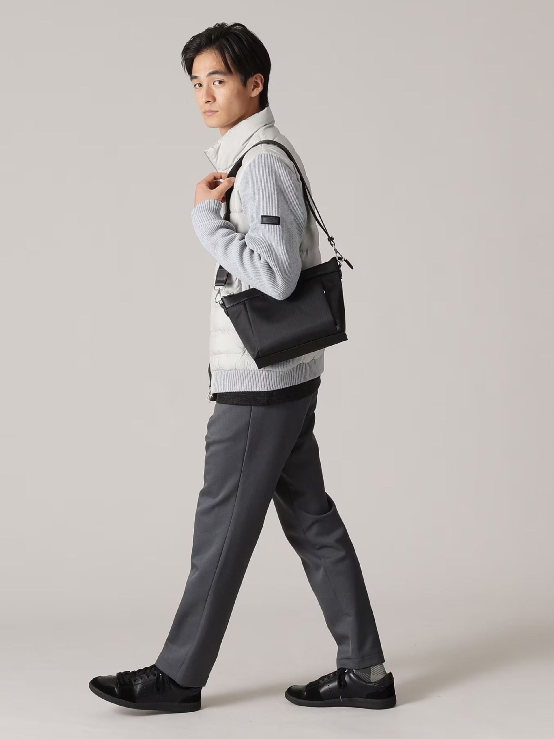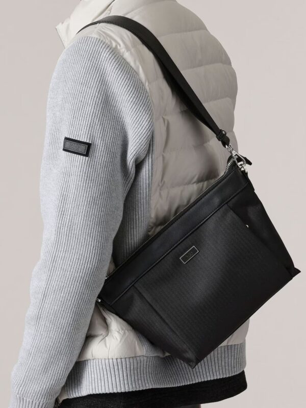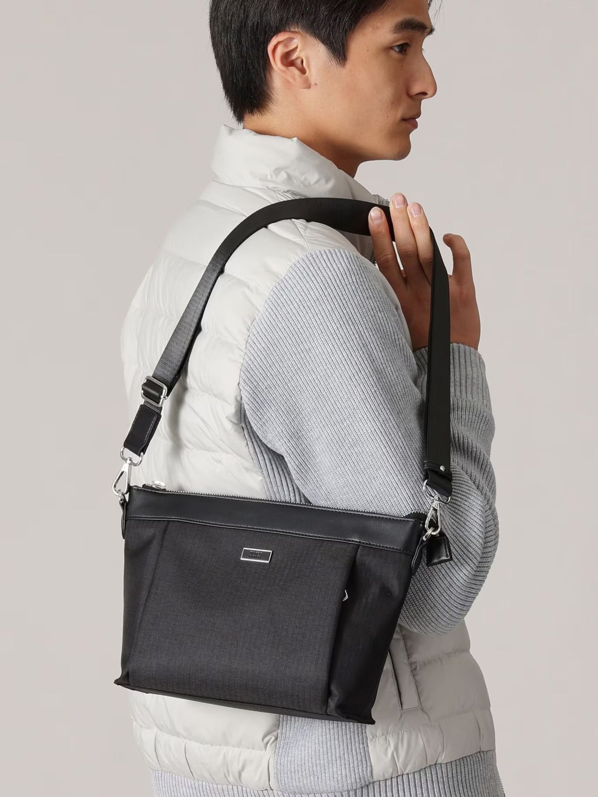 กระเป๋าสะพายไหล่แนวนอนขนาดกลาง (B5) รุ่นใหม่ได้ถูกเพิ่มเข้ามาในซีรีส์กระเป๋า โดยใช้ผ้าสังเคราะห์ที่มีลวดลายทอลายก้างปลาอันหรูหรา แผ่นโลโก้เป็นการผสมผสานระหว่างโลหะและหนัง ให้ความรู้สึกที่สง่างาม ซิปมาพร้อมกับตัวดึงโลหะที่ออกแบบมาเป็นพิเศษ ใส่ใจในทุกรายละเอียด การออกแบบที่เรียบง่ายและเพรียวบาง ช่วยดึงความงามของวัสดุออกมาได้อย่างดีเยี่ยม ขนาด B5 แนวนอน มีความกว้างเพียงพอ เหมาะสำหรับใส่ขวดน้ำ 500 มล. หรือกระเป๋าสตางค์ยาวได้อย่างลงตัว
