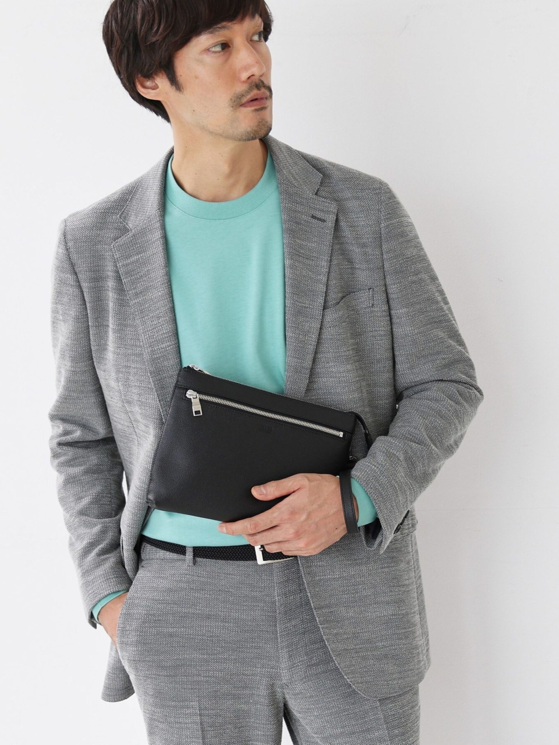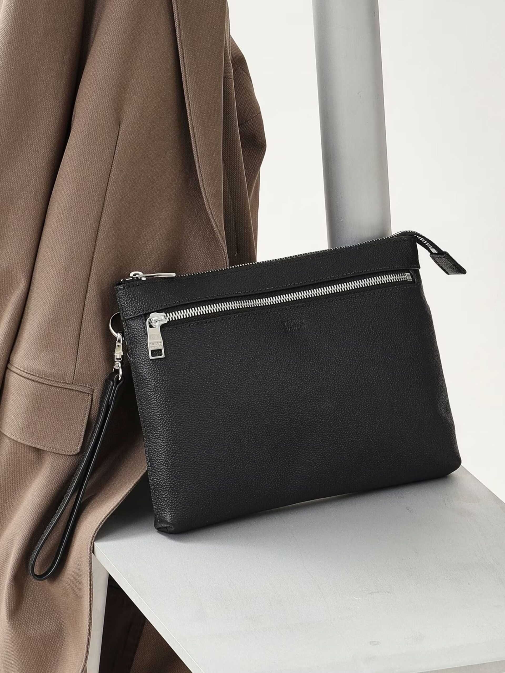 A luxurious all-leather 2-way clutch bag with embossed pattern that makes scratches less noticeable.