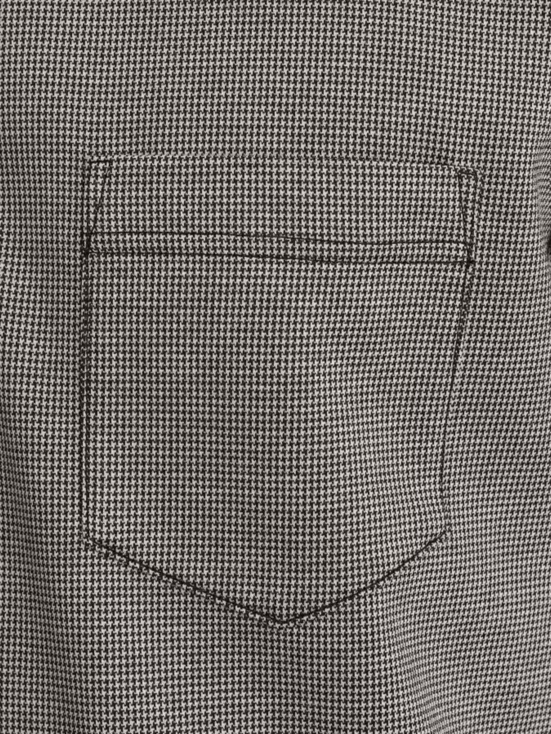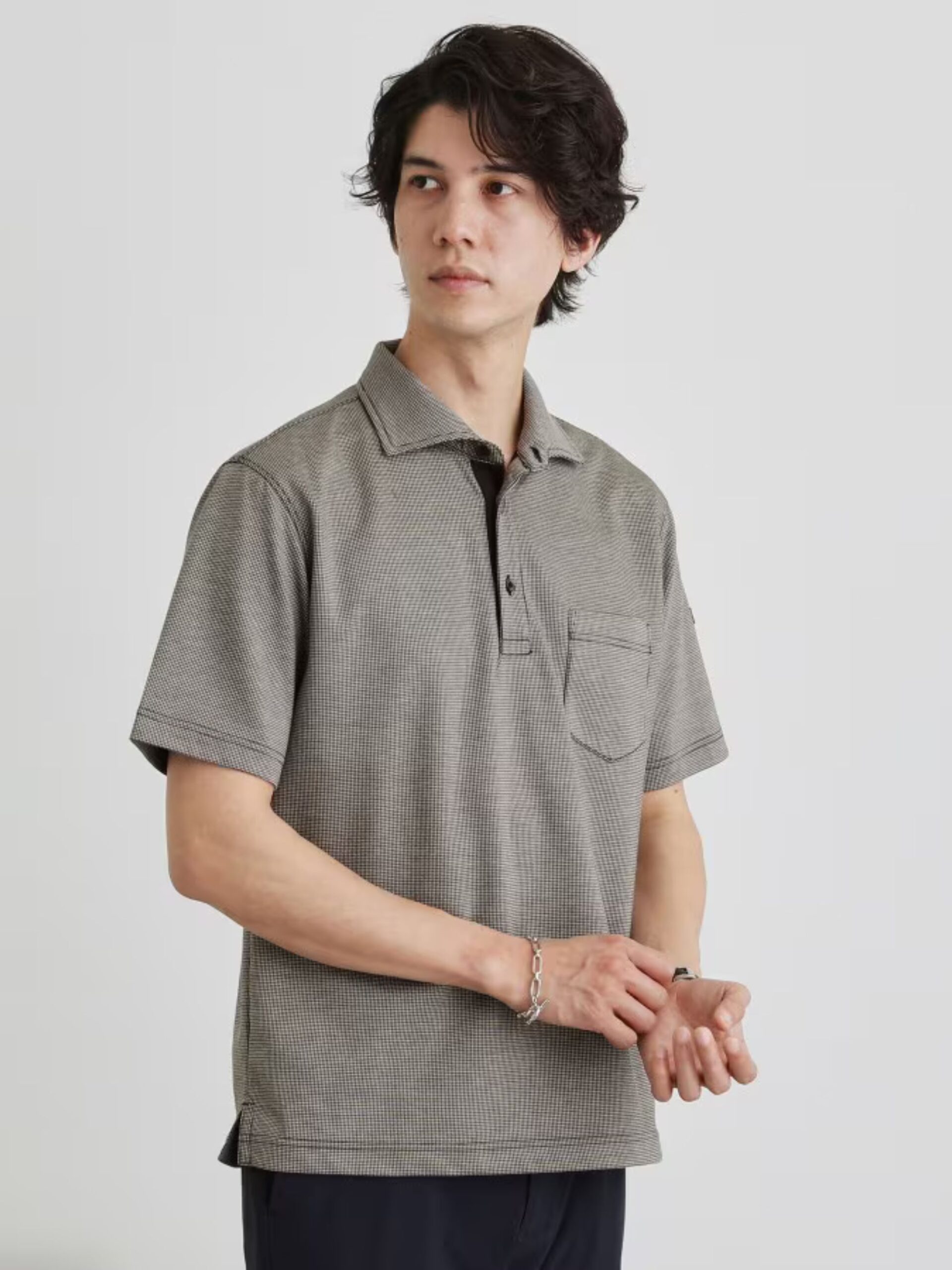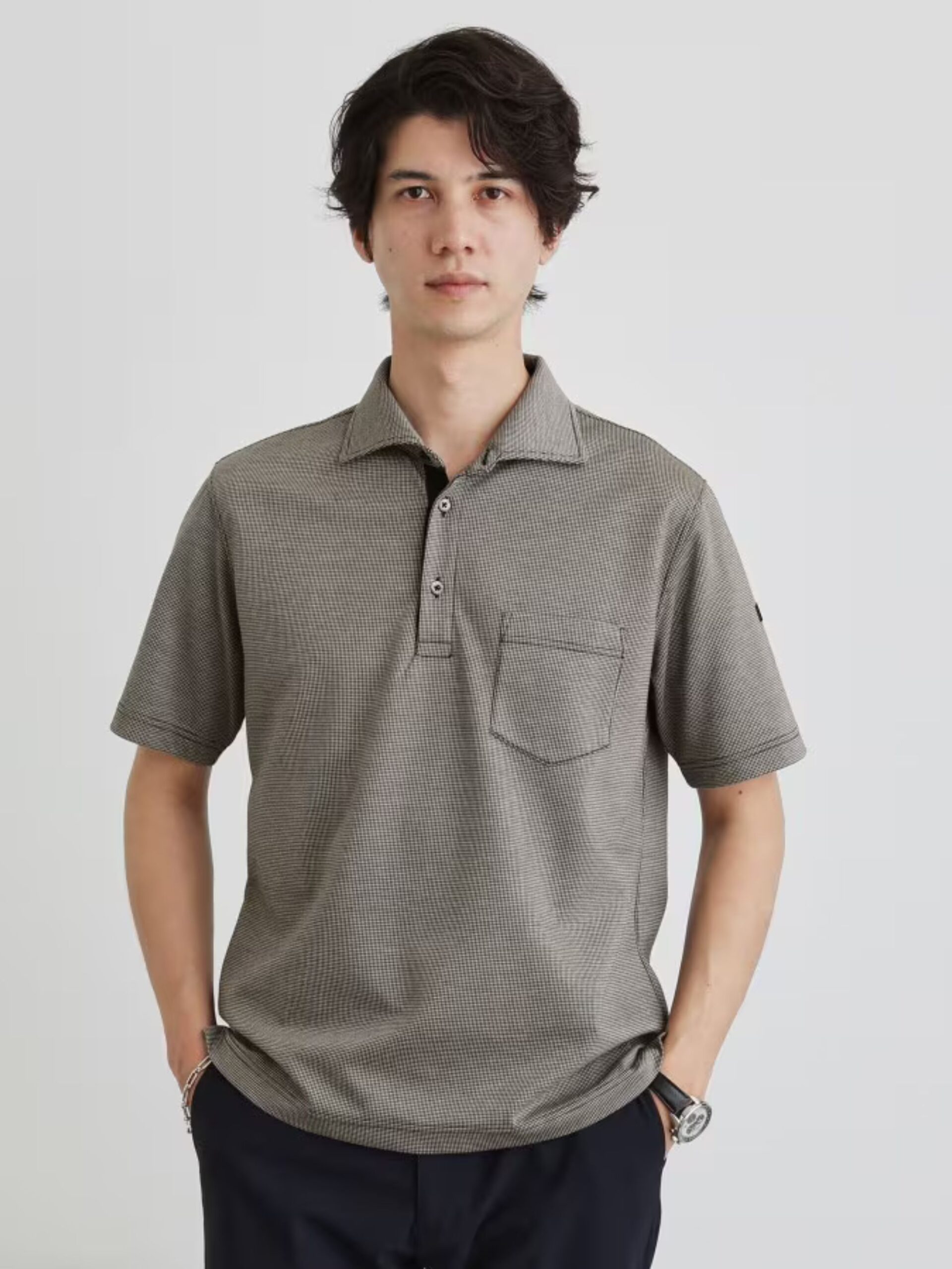 คอเสื้อแบบ One-piece Collar เชื่อมต่อจากตัวเสื้อขึ้นไปเป็นปกโดยไร้รอยต่อ ดีไซน์ให้โอบรับรอบลำคออย่างพอดี พร้อมทรงกึ่งกว้างที่ไล่ระดับออกด้านข้างอย่างสวยงาม สร้างรูปทรงปกที่หรูหรา เหมาะกับการสวมใส่ลุคที่ดูเนี้ยบ เนื้อผ้าทอด้วยเทคนิค High-gauge Double-layered Jersey พร้อมลายฮาวด์ทูธ ซับในเป็นผ้าตาข่ายช่วยให้ระบายอากาศได้ดี สวมใส่สบายไม่อับชื้น ขณะเดียวกันผ้าเจอร์ซี่ที่ยืดหยุ่นยังช่วยให้เคลื่อนไหวคล่องตัว ใส่สบายไร้ความกังวล ด้วยความหรูหราของลายฮาวด์ทูธและความผ่อนคลายของเนื้อผ้า