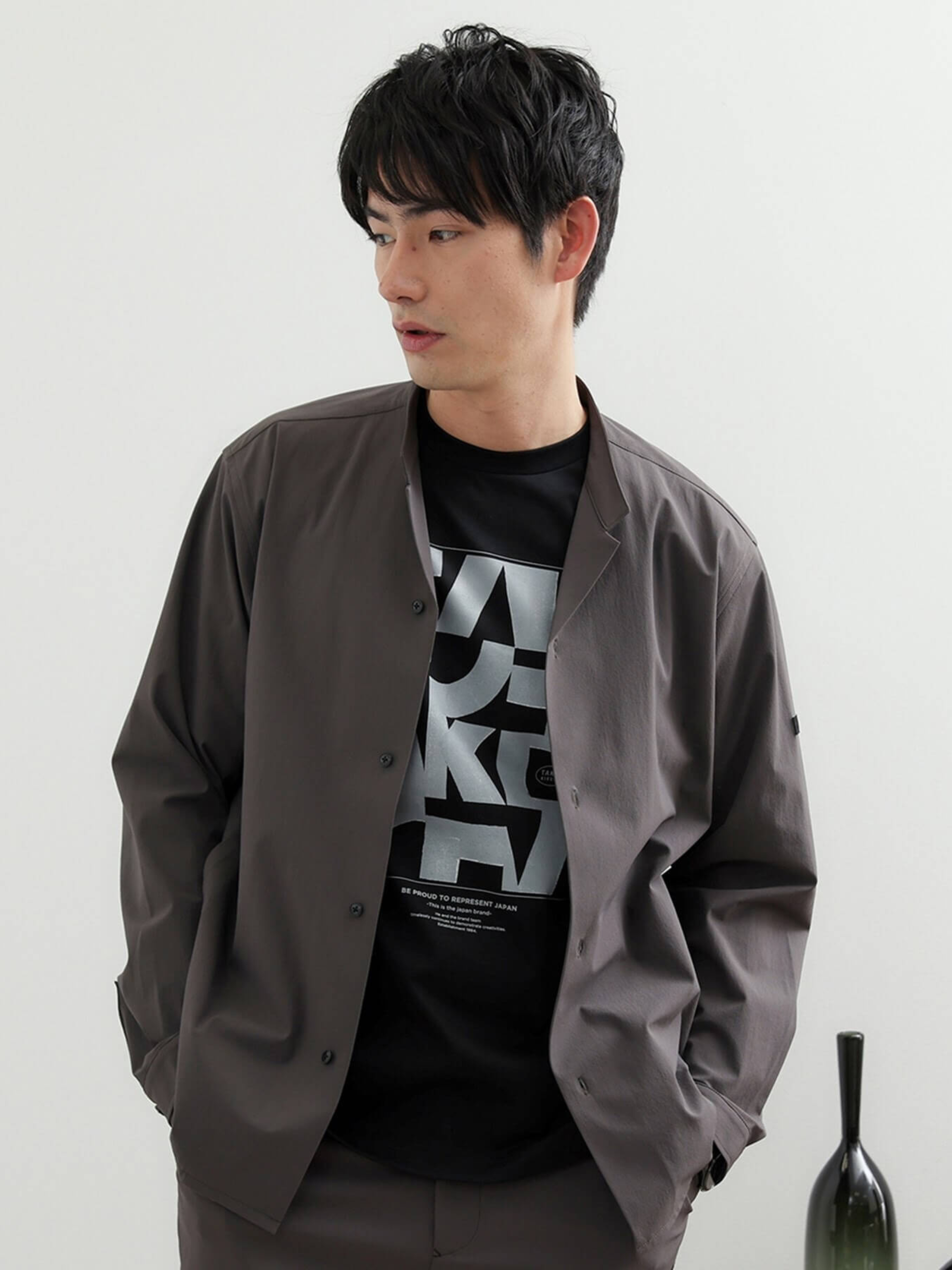เสื้อยืดกราฟิกดีไซน์ออริจินัลที่สะท้อนถึงฤดูกาลนี้โดยเฉพาะ ประวัติศาสตร์ของ TAKEO KIKUCHI มีความผูกพันอย่างลึกซึ้งกับดนตรีแจ๊ส (JAZZ) โดยปกอัลบั้มแจ๊สหลายชิ้นนั้นมีคุณภาพสูงจนอยากจะใส่กรอบแขวนโชว์ กราฟิกต้นฉบับนี้จึงได้รับแรงบันดาลใจมาจากงานศิลป์บนปกอัลบั้มแจ๊สเหล่านั้น