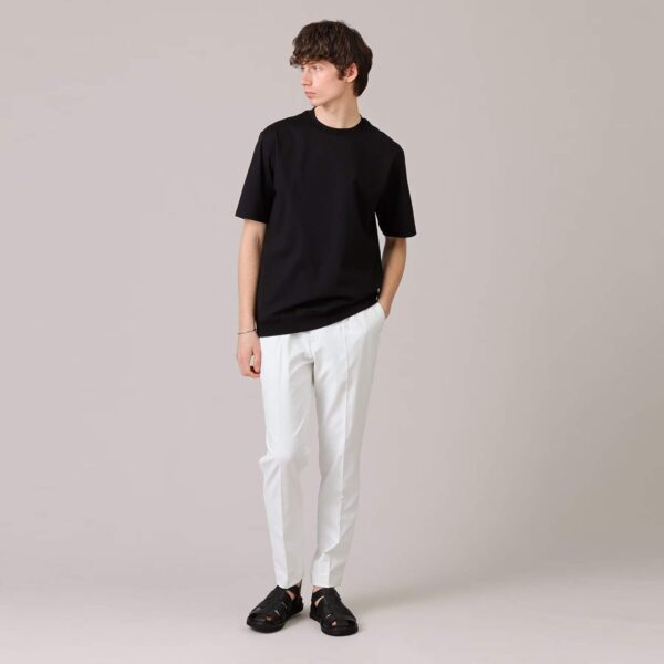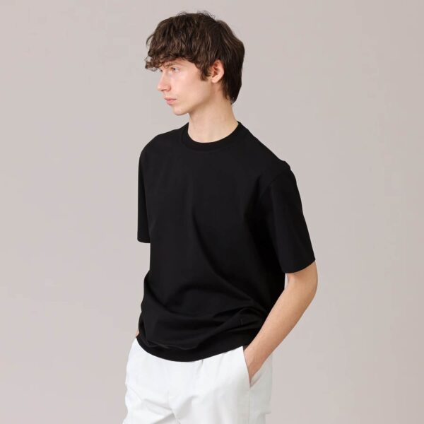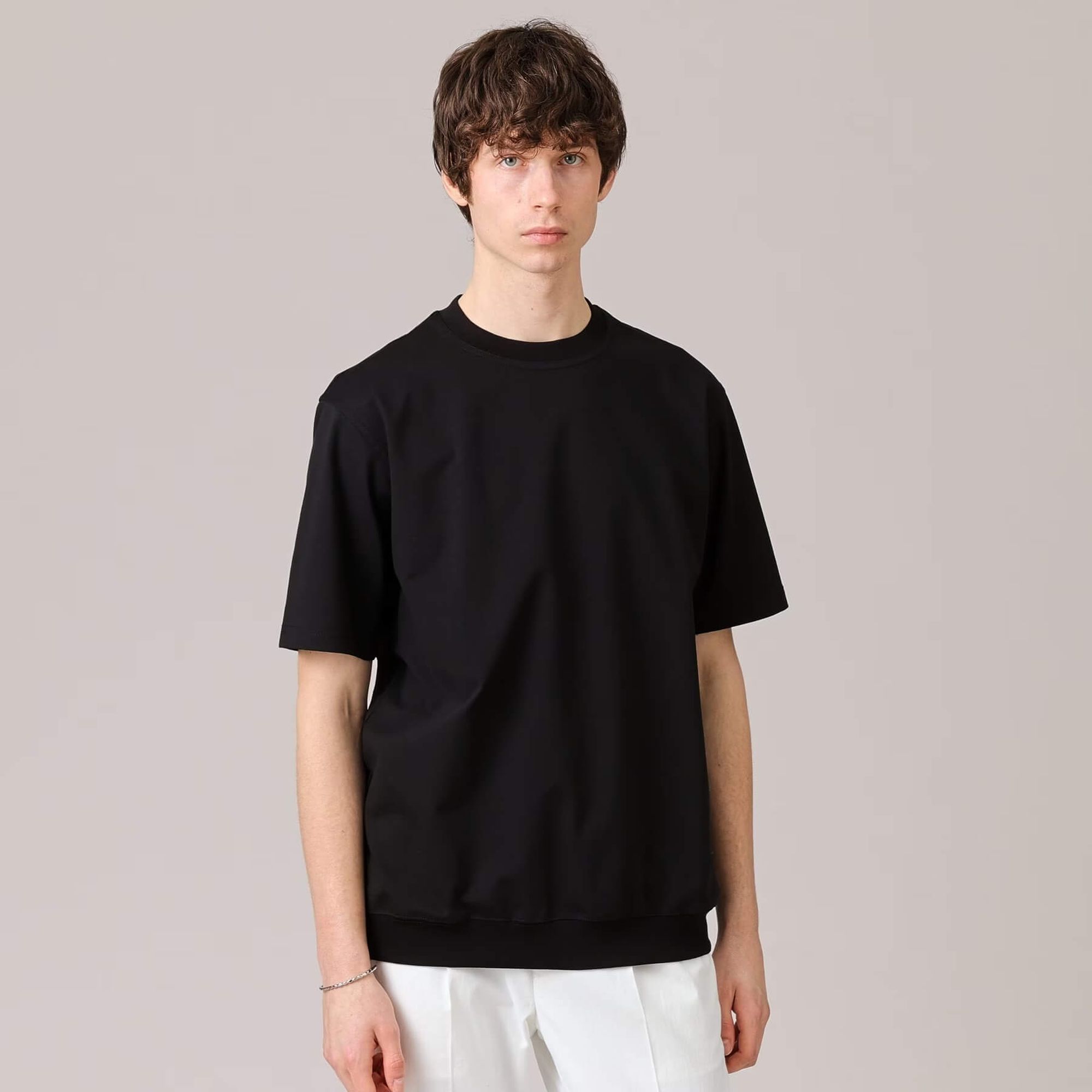 เสื้อคัตแอนด์โซว์ทรงหลวม ผลิตจากผ้าพันช์เนื้อแน่นถักด้วยเกจสูง พื้นผิวของผ้าผ่านกระบวนการเมอร์เซไรซ์เพื่อกำจัดขนละเอียด ทำให้มีประกายเงางามและสัมผัสที่เรียบลื่น เหมาะสำหรับอากาศร้อนชายเสื้อแบบจั๊มพ์ให้ทรงที่พองและเบา ในขณะเดียวกันก็แนบกระชับ ไม่ดูรุ่มร่าม อีกทั้งยังช่วยปกปิดรูปร่างบริเวณหน้าท้องได้อย่างดี ด้วยดีไซน์ที่เรียบง่ายแต่โดดเด่น ทำให้เสื้อตัวสามารถนำไป Mix & Match กับสไตล์ต่างๆ ได้ง่าย เหมาะสำหรับการใส่ในชีวิตประจำวัน