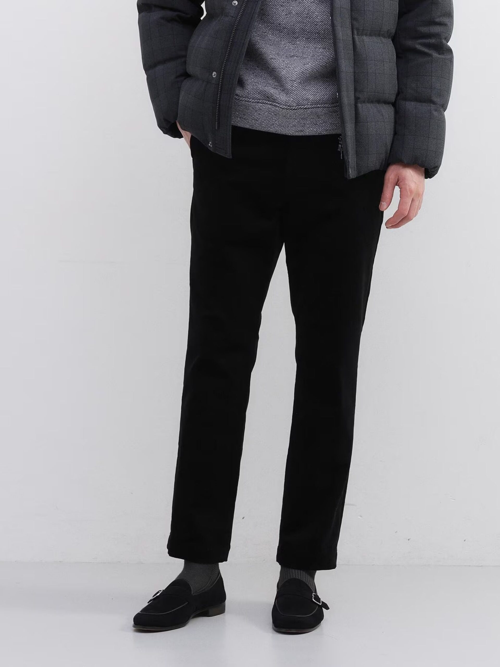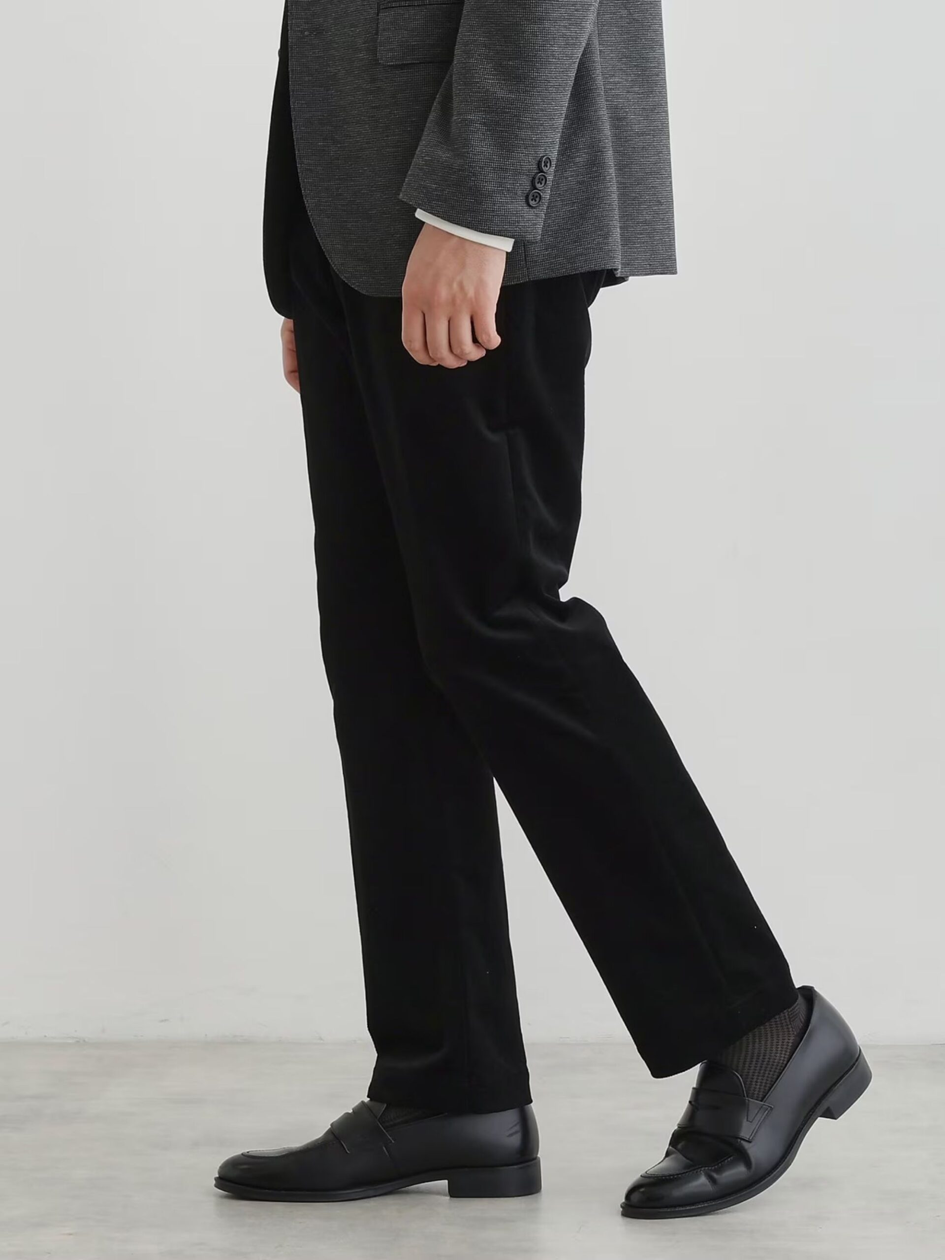 ดีไซน์เอวยางยืดด้านข้างได้รับแรงบันดาลใจจากรองเท้า side-gore boots ช่วยให้กางเกงเข้าทรงสวย ดูเรียบเพรียว ขณะเดียวกันก็ใส่สบาย ไม่บีบรัดช่วงเอว ทรงกางเกงเป็นแบบสลิมสแลค ให้ขาดูเรียวยาวเป็นธรรมชาติ ใช้ผ้าลูกฟูกเนื้อพรีเมียม เงางามเล็กน้อย ให้ทั้งสัมผัสที่นุ่มลื่นและความหรูหราอย่างพอดี ช่วยเสริมลุคให้ดูสะอาด เรียบร้อย และโดดเด่นมากขึ้น