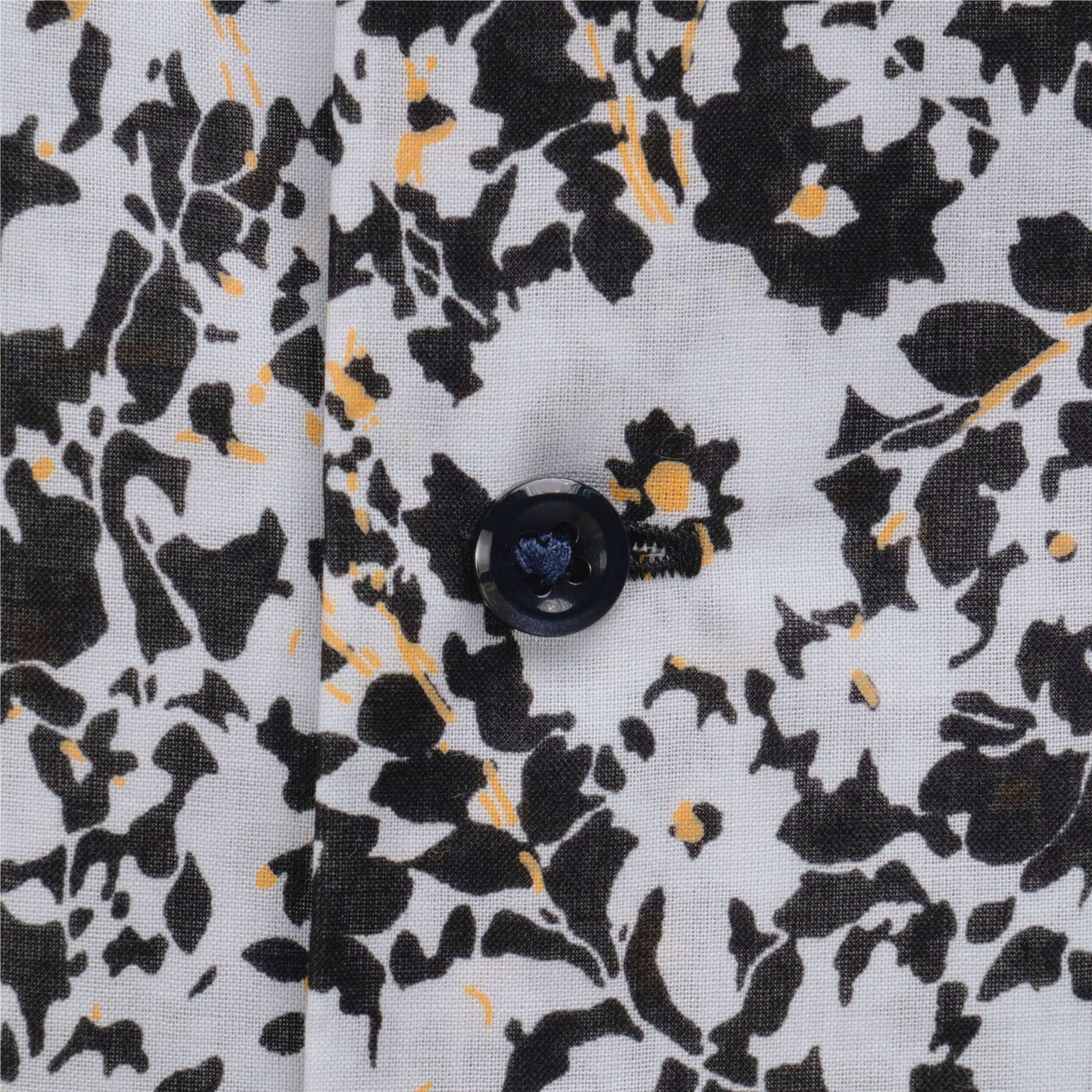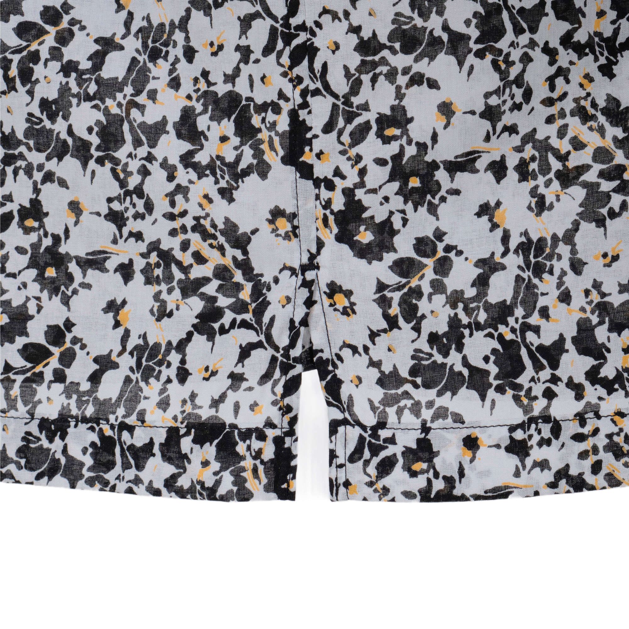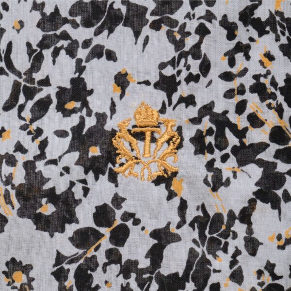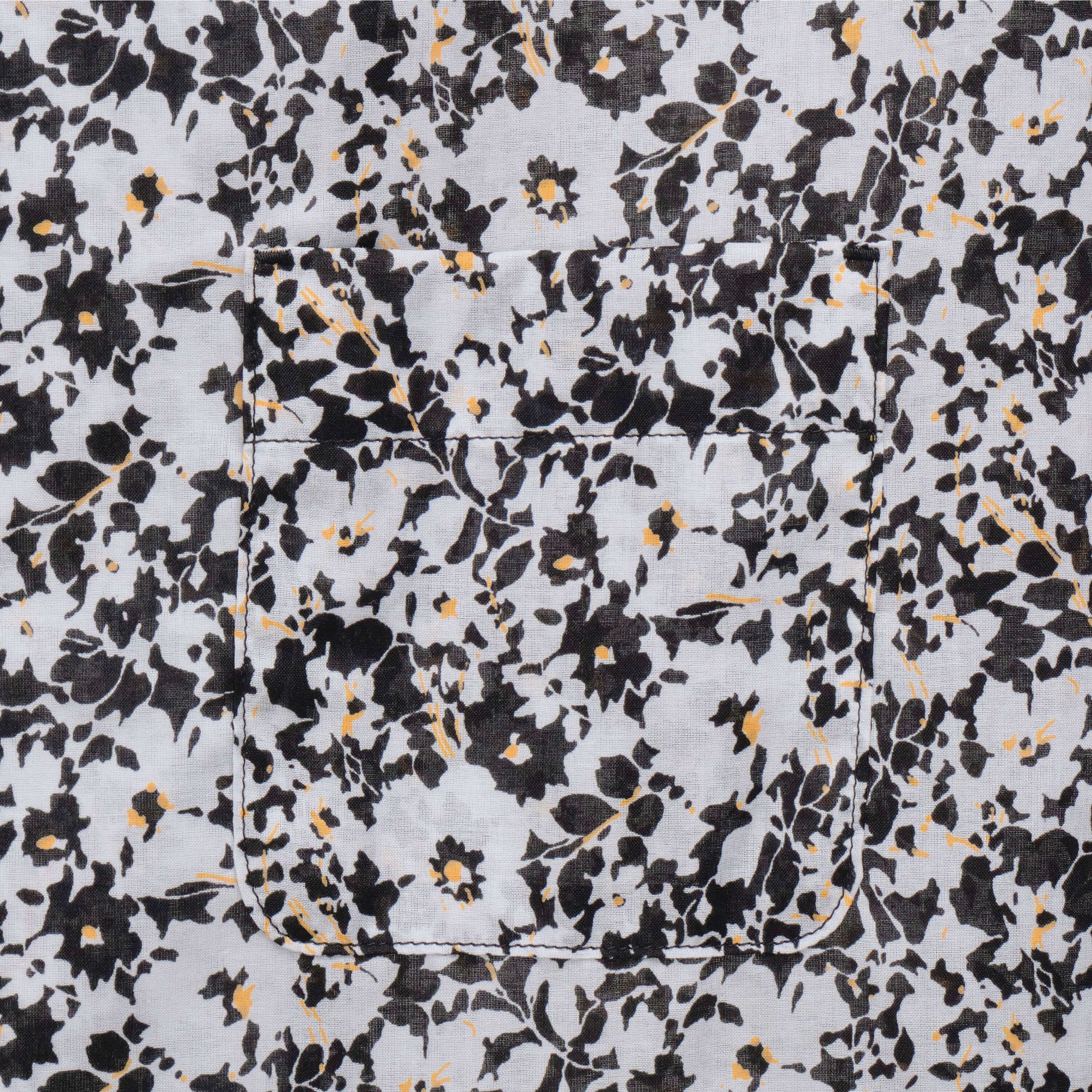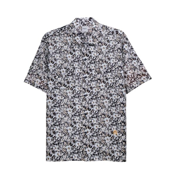 เสื้อแขนสั้นทรงหลวมแบบ Open Collar ตัดเย็บจากผ้า Cotton ทอด้วยเส้นด้ายขนาดเล็กเป็นพิเศษ ทำให้เนื้อผ้ามีความเงางาม นุ่มลื่น และมีน้ำหนักเบาคล้ายผ้าไหม Silky Lawn โดดเด่นด้วยลายพิมพ์ลวดลายดอกพุ่มไม้ เพิ่มความสะดวกด้วยกระเป๋าหน้าอกทั้งสองข้าง ดีไซน์ผ่าข้างพร้อมแต่งด้ายเพิ่มลูกเล่น พร้อมงานปัก Impala emblem บริเวณชายเสื้อ เพิ่มความประณีตและเอกลักษณ์ให้กับดีไซน์