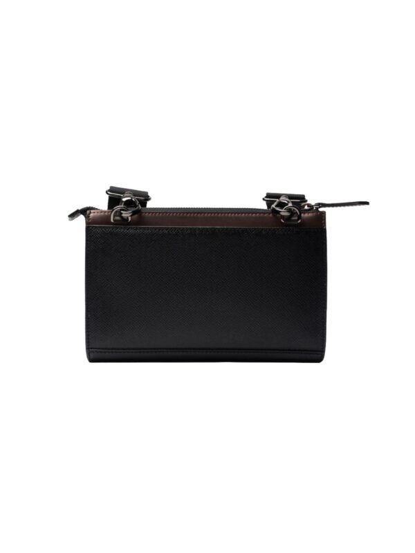 กระเป๋า Neck pouch ที่สามารถสะพายคอ สะพายไหล่หรือถือเป็นคลัชท์ได้ ที่ได้รับแรงบันดาลใจจากการเลือกใช้หนังวัวที่มี texture เหมือนก้อนหินที่เรียงต่อกันจนเกิดเป็นลาย ซึ่งมีการนำหนังเรียบมาดีไซน์ด้วย เพื่อให้เกิดมิติ และมีความ playful โดยดีไซน์ของกระเป๋ามีการพิมพ์ logo เป็นฟอยล์สีทองบนหนังสีน้ำตาล เหมาะกับการเดินทางและความสะดวกสบาย ใส่กระเป๋าสตางค์ มือถือได้ ด้านในมีช่องใส่การ์ด และด้านหลังมีช่องเก็บของอีก 1 ช่อง อีกทั้งยังสามารถถอดสายได้ ตอบโจทย์การใช้งานของท่านสุภาพบุรุษด้วยฟังก์ชันด้านในที่ดีไซน์มาเพื่อให้ชีวิตคุณผู้ชายง่ายขึ้นอีกด้วย