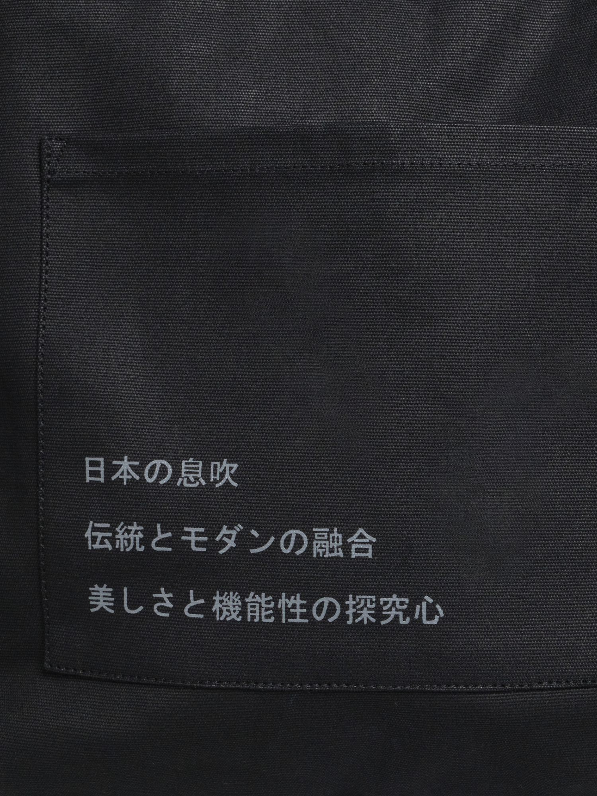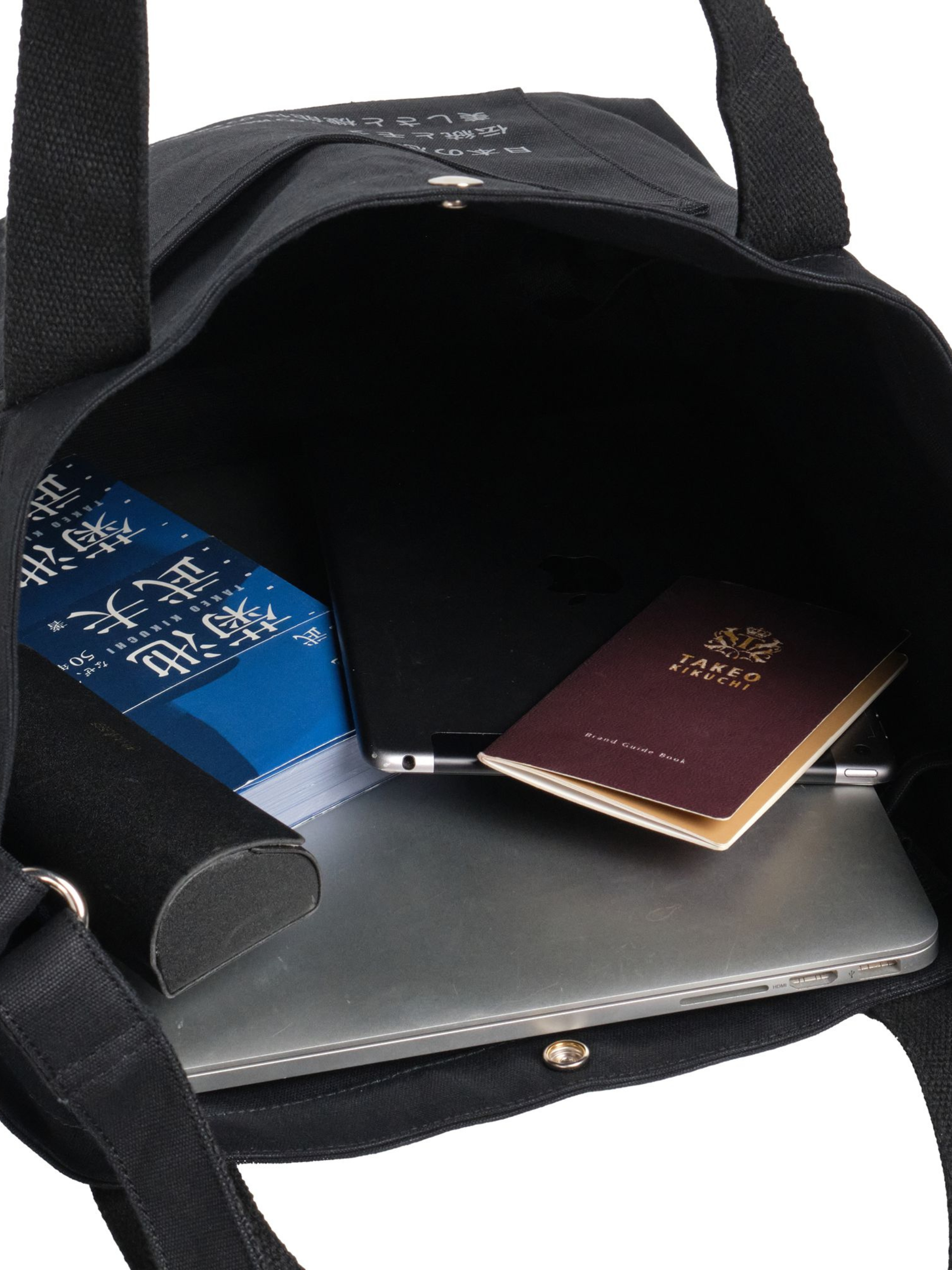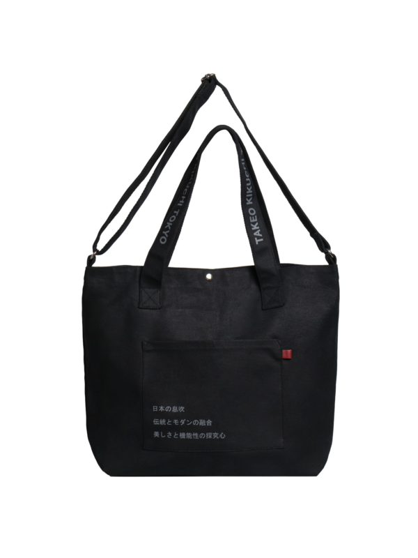 กระเป๋า Tote bag ที่ได้แรงบันดาลใจจากข้อความในเล่ม bible เพื่อฉลองครบรอบ 40 ปีของแบรนด์ TAKEO KIKUCHI โดยดีไซน์ในครั้งนี้จะเน้นไปที่งานกราฟฟิก และฟังก์ชั่นการใช้งาน มีหนังแต่งสีแดงที่แทนความเป็นญี่ปุ่น มีกระเป๋าขนาดเล็กด้านหน้า 1 ช่อง ด้านใน 1 ช่อง มีช่องใส่ Laptop และช่องสำหรับใส่ขวดน้ำ ใช้ได้ 2 แบบคือ แบบถือแบบสะพาย มีกระดุมปิดปากกระเป๋า เพื่อป้องกันของหล่น ทรงกระเป๋าออกแบบมาให้ใช้งานง่าย สะดวกสบายและแมทซ์ได้หลายลุค อีกทั้งยังช่วยลดโลกร้อนได้อีกด้วย
