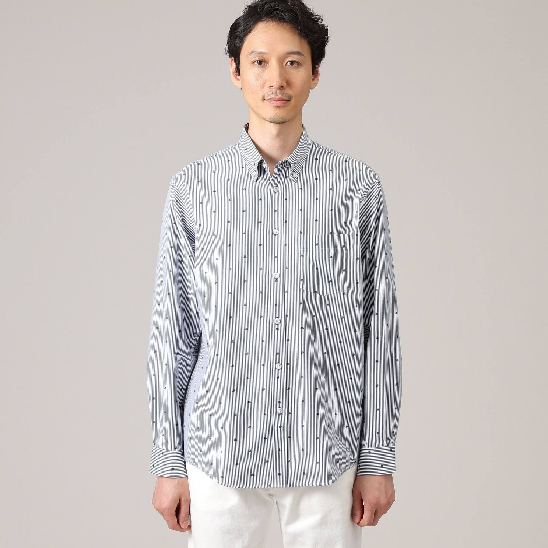 เสื้อเชิ้ตแขนยาว ทำจากผ้าลวดลายทั่วตัวสุดสนุก ผสมผสานระหว่างลายทางแบบลอนดอนดั้งเดิมกับไอคอนิกของ TAKEO KIKUCHI อย่างหมวกโบว์ลิ่ง หมวกเบสบอล และหมวกไหมพรม ซิลูเอตพื้นฐานที่สามารถจับคู่กับแจ็คเก็ตสำหรับลุคออฟฟิศแคชวลได้อย่างลงตัว