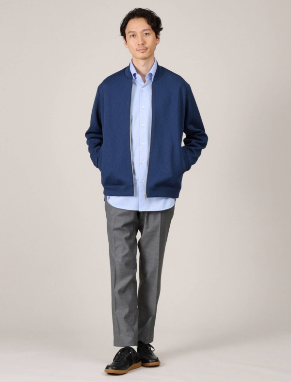BLUE MELANGE DOUBLE KNIT ZIP JACKET (07032007) *ECS