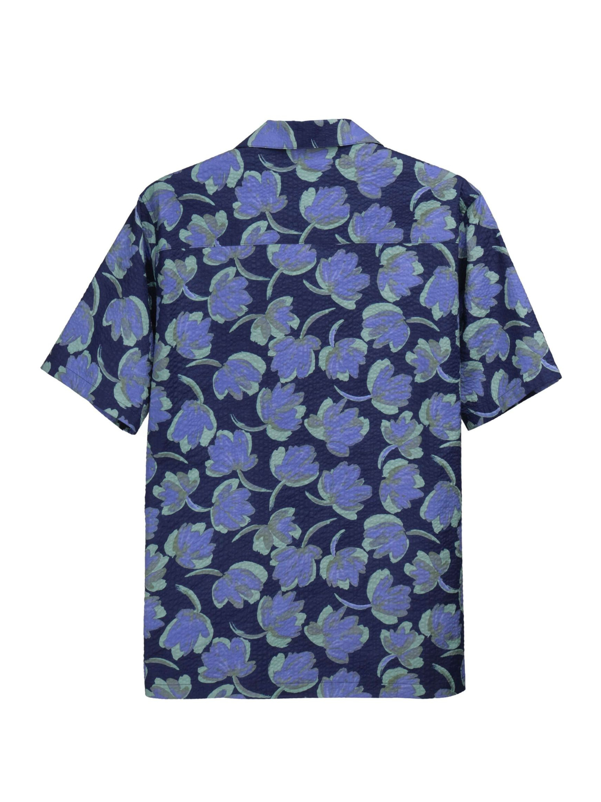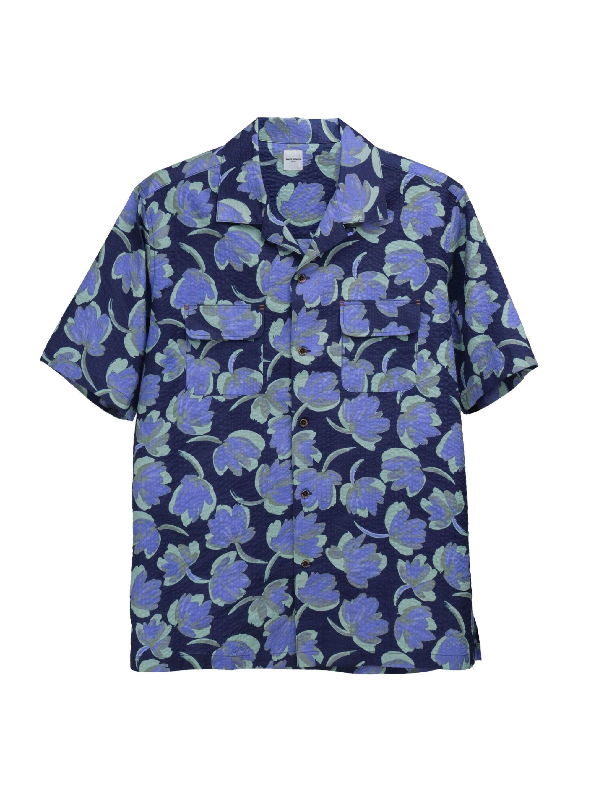 BLUE MIRACLE WAVE TULIPS OPEN COLLAR SHIRT (K8182301)
