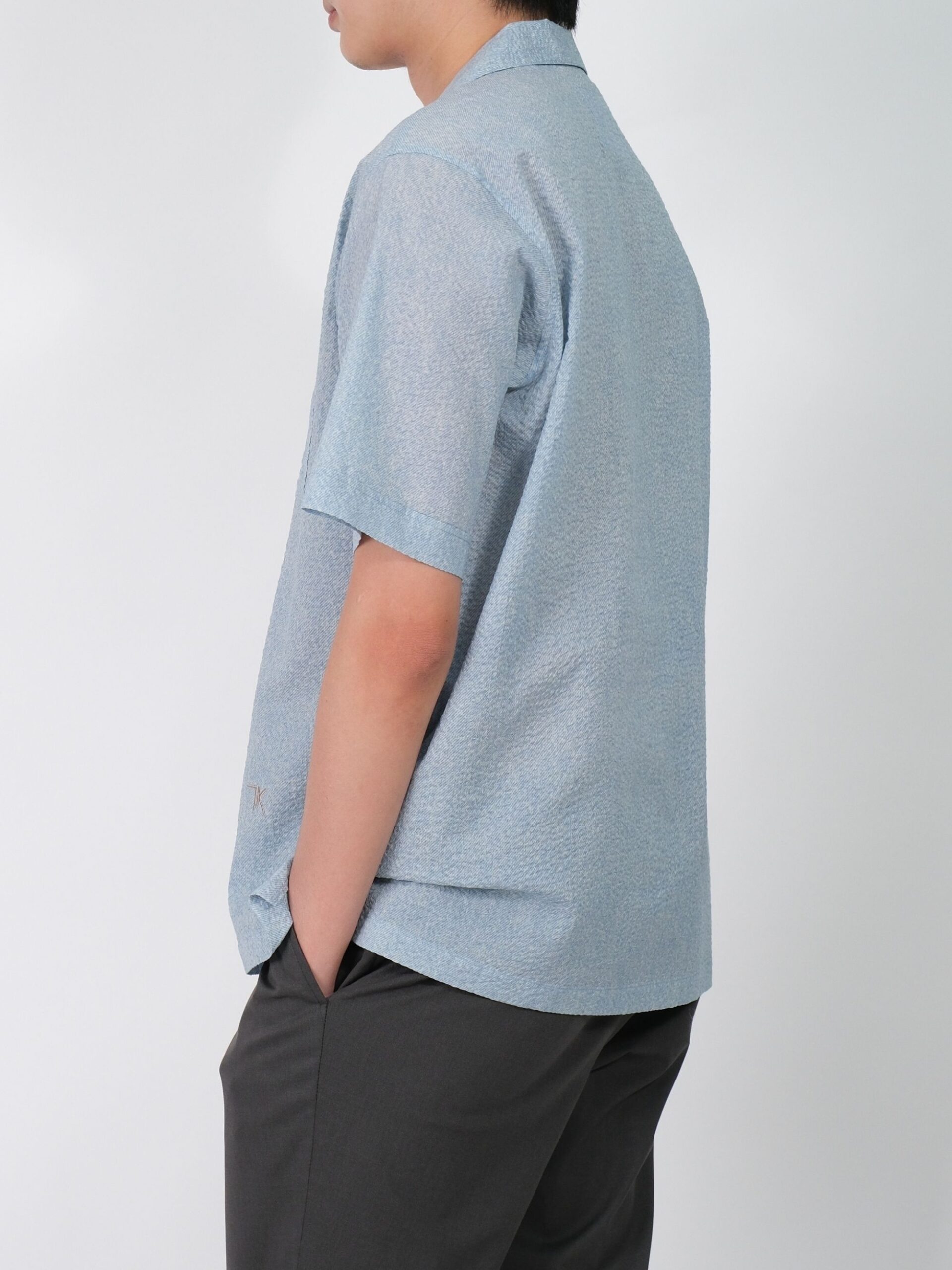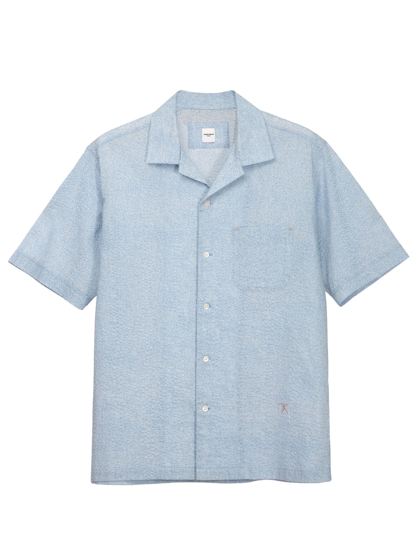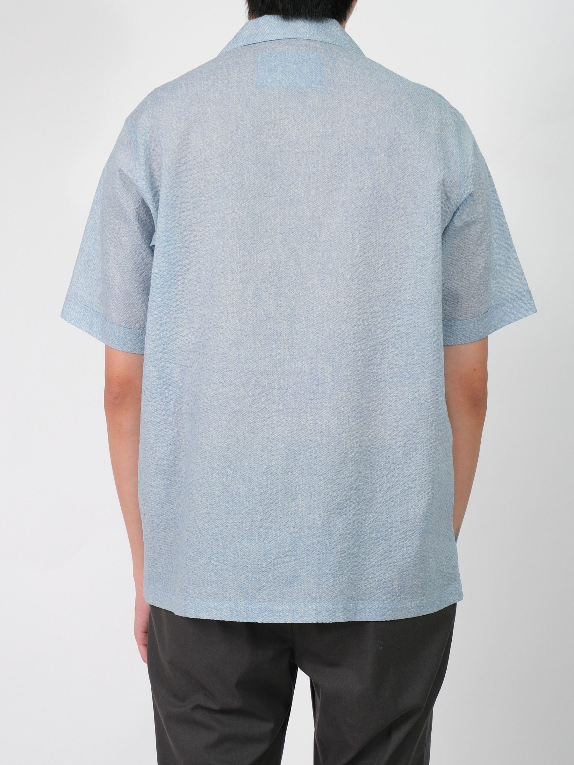 BLUE MW DENIM PRINT OPEN-COLLAR COTTON SHIRT (K8183203)