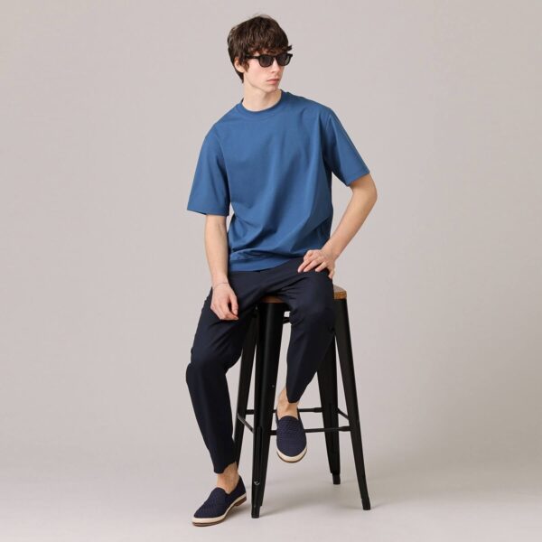 เสื้อคัตแอนด์โซว์ทรงหลวม ผลิตจากผ้าพันช์เนื้อแน่นถักด้วยเกจสูง พื้นผิวของผ้าผ่านกระบวนการเมอร์เซไรซ์เพื่อกำจัดขนละเอียด ทำให้มีประกายเงางามและสัมผัสที่เรียบลื่น เหมาะสำหรับอากาศร้อน ชายเสื้อแบบจั๊มพ์ให้ทรงที่พองและเบา ในขณะเดียวกันก็แนบกระชับ ไม่ดูรุ่มร่าม อีกทั้งยังช่วยปกปิดรูปร่างบริเวณหน้าท้องได้อย่างดี ด้วยดีไซน์ที่เรียบง่ายแต่โดดเด่น ทำให้เสื้อตัวสามารถนำไป Mix & Match กับสไตล์ต่างๆ ได้ง่าย เหมาะสำหรับการใส่ในชีวิตประจำวัน