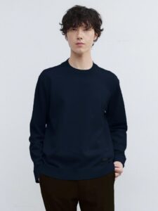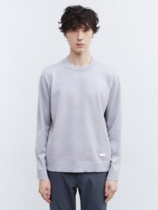 นิตตัวนี้ผลิตจากขนวูลแบบ Anti-pilling ที่ช่วยลดการเกิดขุย ด้านในมีการถักแบบ plating ด้วยเส้นใยโพลีเอสเตอร์ ทำให้ดูแลง่ายและคงรูปดี สามารถซักเองที่บ้านได้ การถักแบบ plating knit ช่วยให้ตัวเสื้อมีโครงสวย ดูสุภาพ มีความกระชับพอดี และมีความเงางามเล็กน้อย ให้ภาพลักษณ์ละเมียด ละเอียด และหรูหรา เนื้อผ้ามีน้ำหนักเบาและให้ผิวสัมผัสหรู ทำให้เป็นไอเท็มแนะนำสำหรับสวมใตัแจ็กเก็ตเพื่อเพิ่มความสมาร์ต ดีไซน์ช่วงคอถูกออกแบบให้ด้านหน้าและด้านหลังสูงไม่เท่ากัน ช่วยให้ให้ความอบอุ่นกำลังดี และป้องกันไม่ให้ขอบคอเสื้อสัมผัสผิวโดยตรง ลดการเกิดคราบสกปรก
