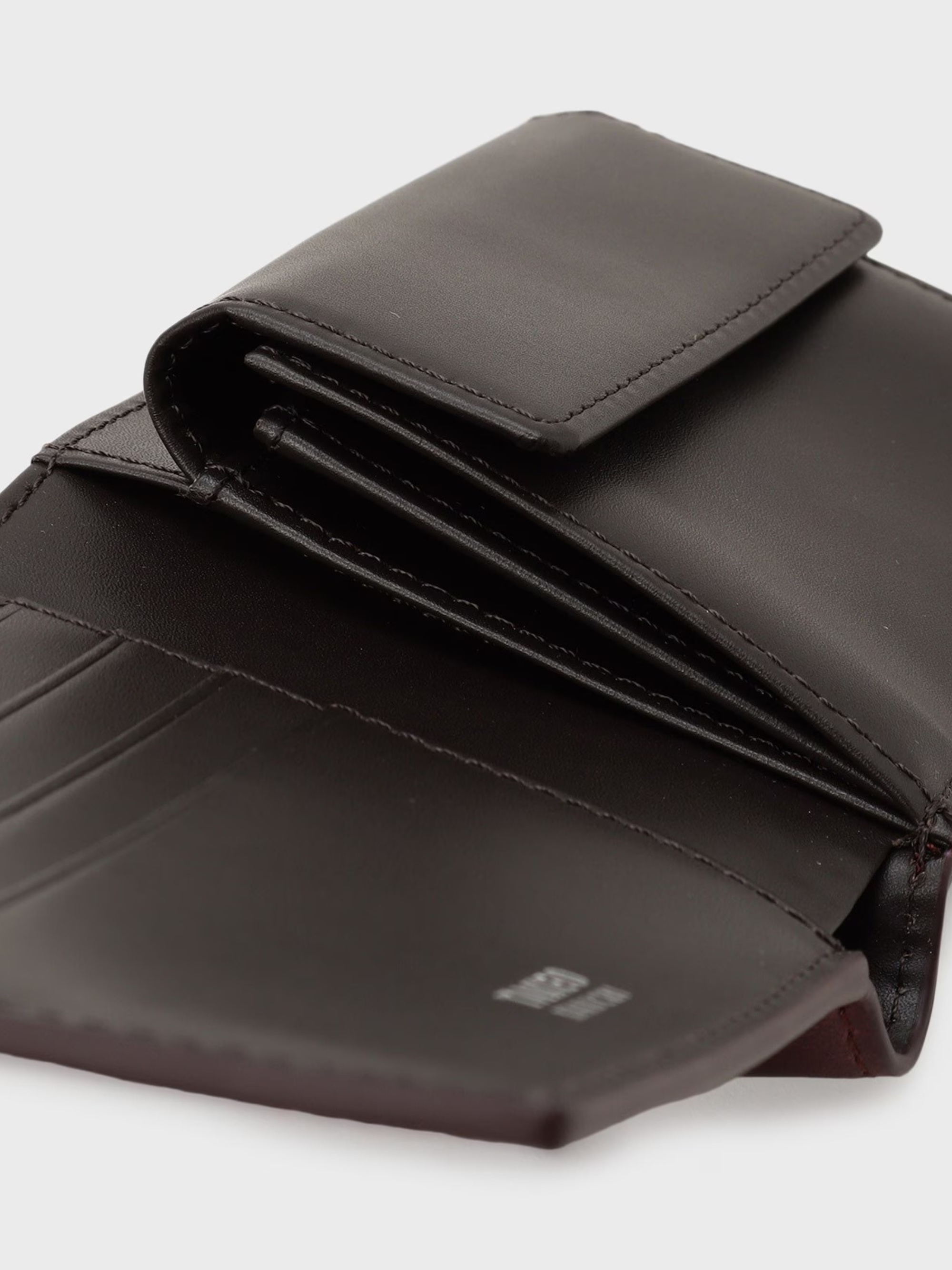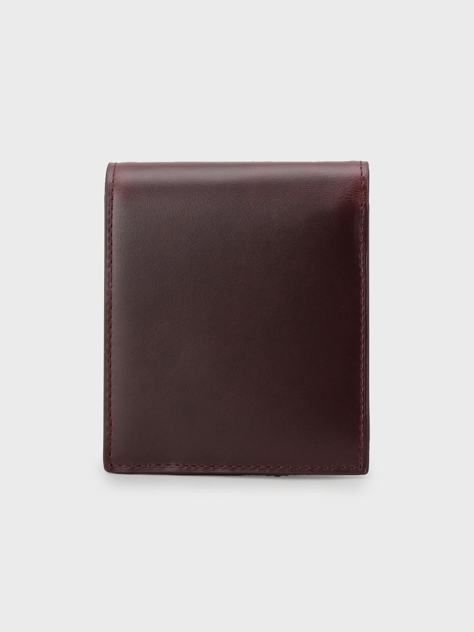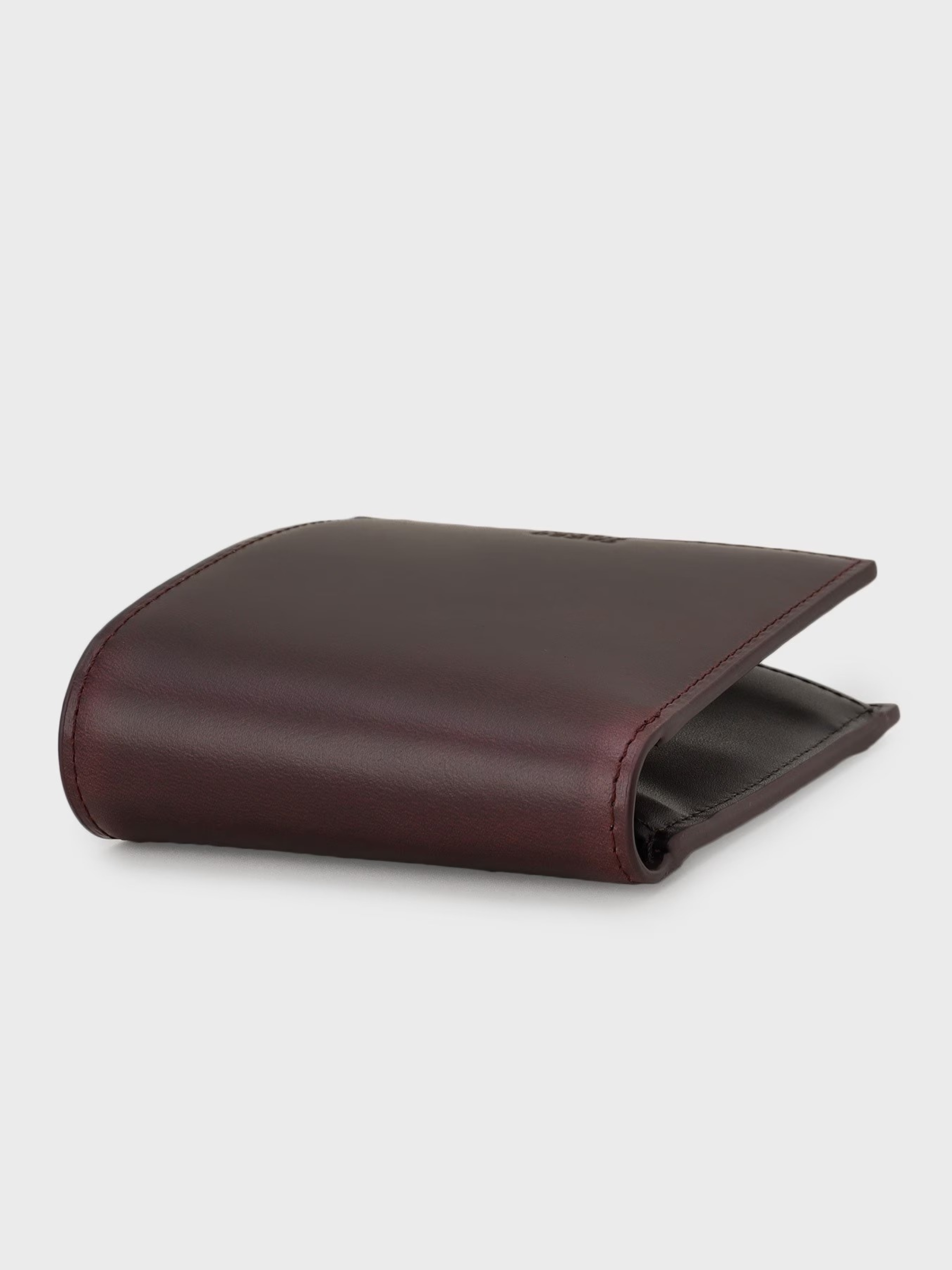 กระเป๋าสตางค์แบบพับสองทบที่เรียบง่ายและมีความโดดเด่นด้วยหนังด้านนอกที่มีสีสันสดใสและมันวาว ทำจากหนัง Cavalier ฟอกฝาดแบบ Chrome Excel ของโรงฟอกหนัง Horween ในอเมริกา ซึ่งมีการเคลือบแบบแอนิลีน ส่วนภายในกระเป๋าทำจากหนังลูกวัวที่มีความทนทาน เพื่อป้องกันการซึมของน้ำมันและสี