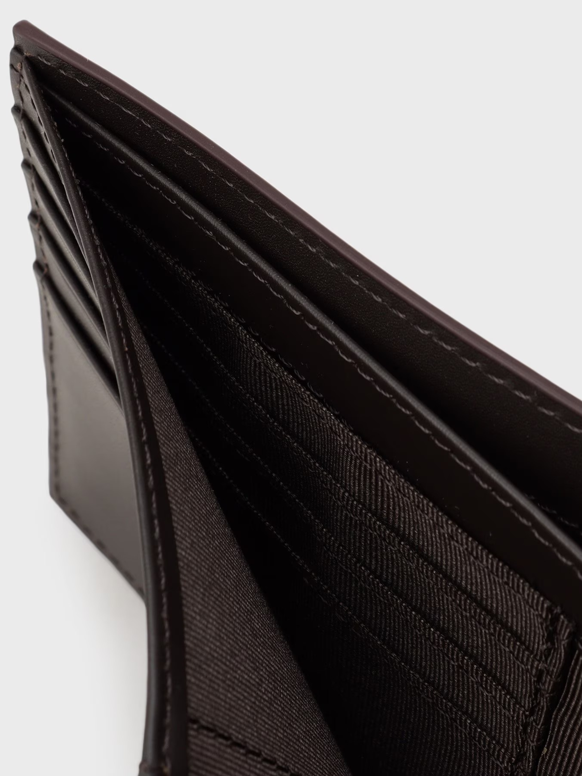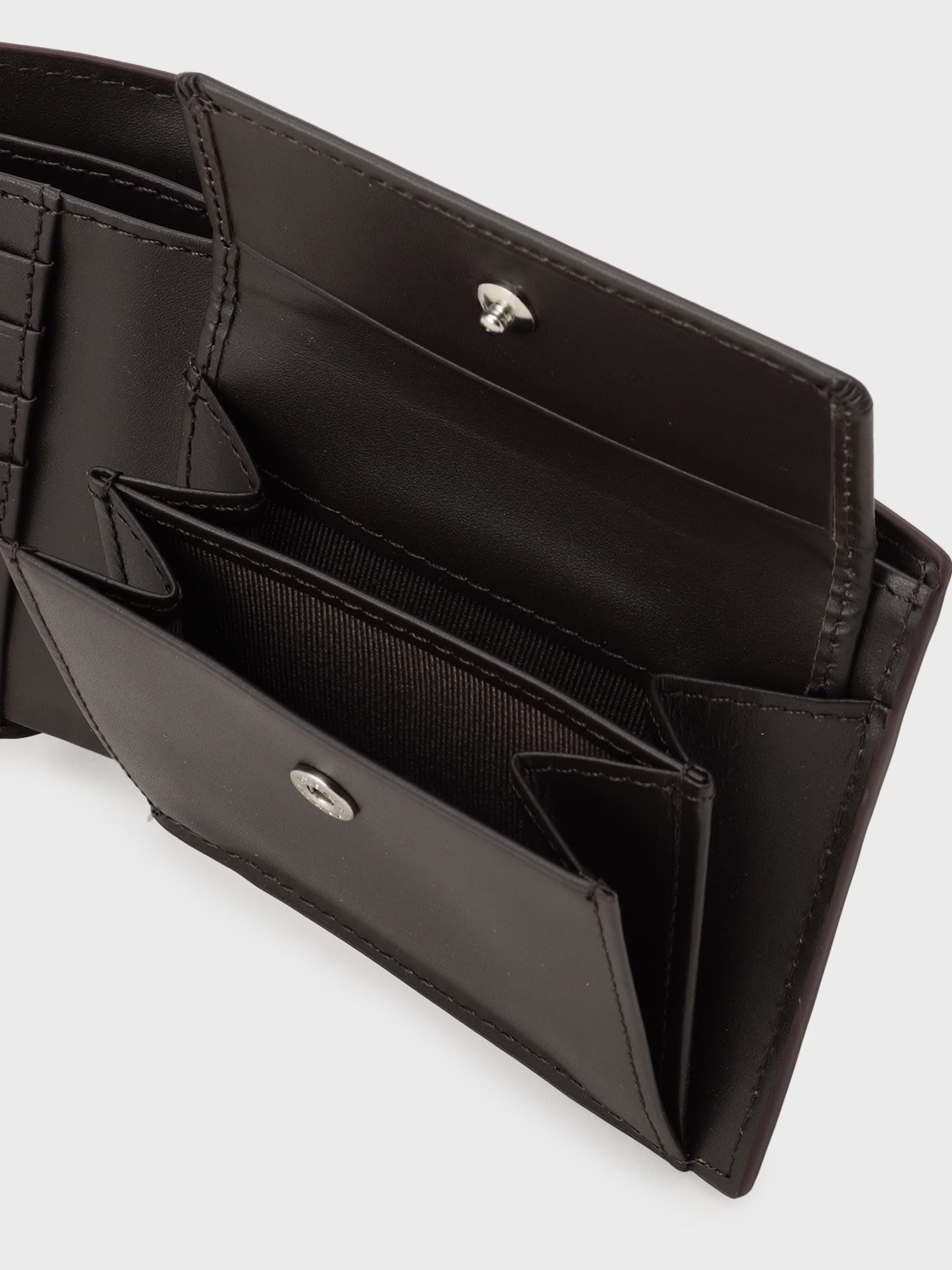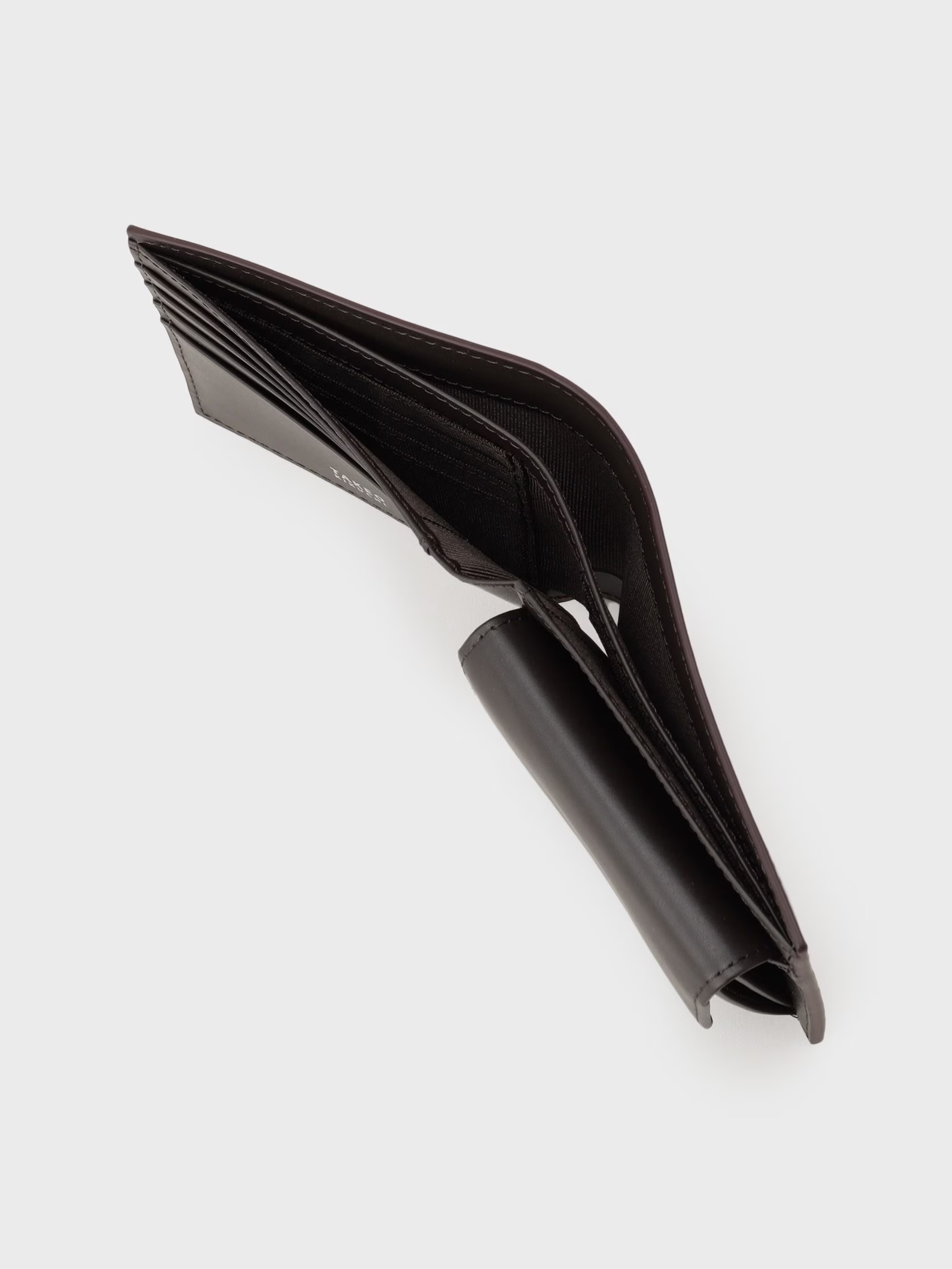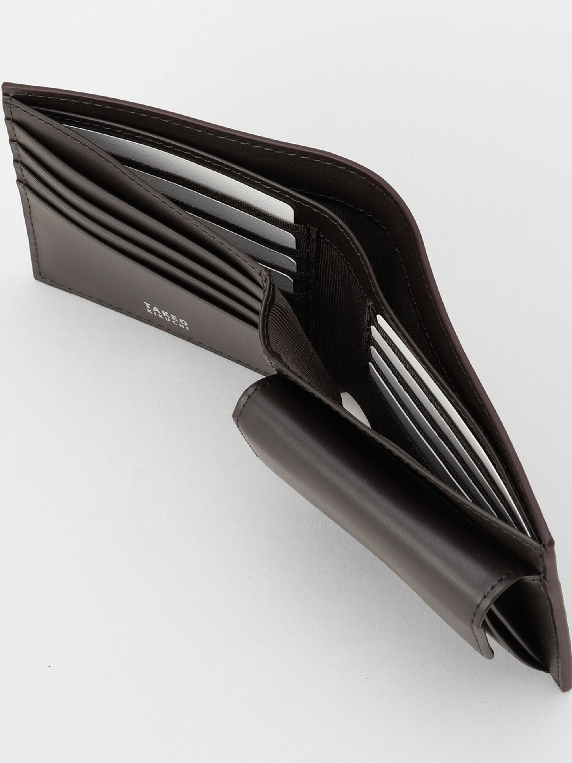 กระเป๋าสตางค์แบบพับสองทบที่เรียบง่ายและมีความโดดเด่นด้วยหนังด้านนอกที่มีสีสันสดใสและมันวาว ทำจากหนัง Cavalier ฟอกฝาดแบบ Chrome Excel ของโรงฟอกหนัง Horween ในอเมริกา ซึ่งมีการเคลือบแบบแอนิลีน ส่วนภายในกระเป๋าทำจากหนังลูกวัวที่มีความทนทาน เพื่อป้องกันการซึมของน้ำมันและสี