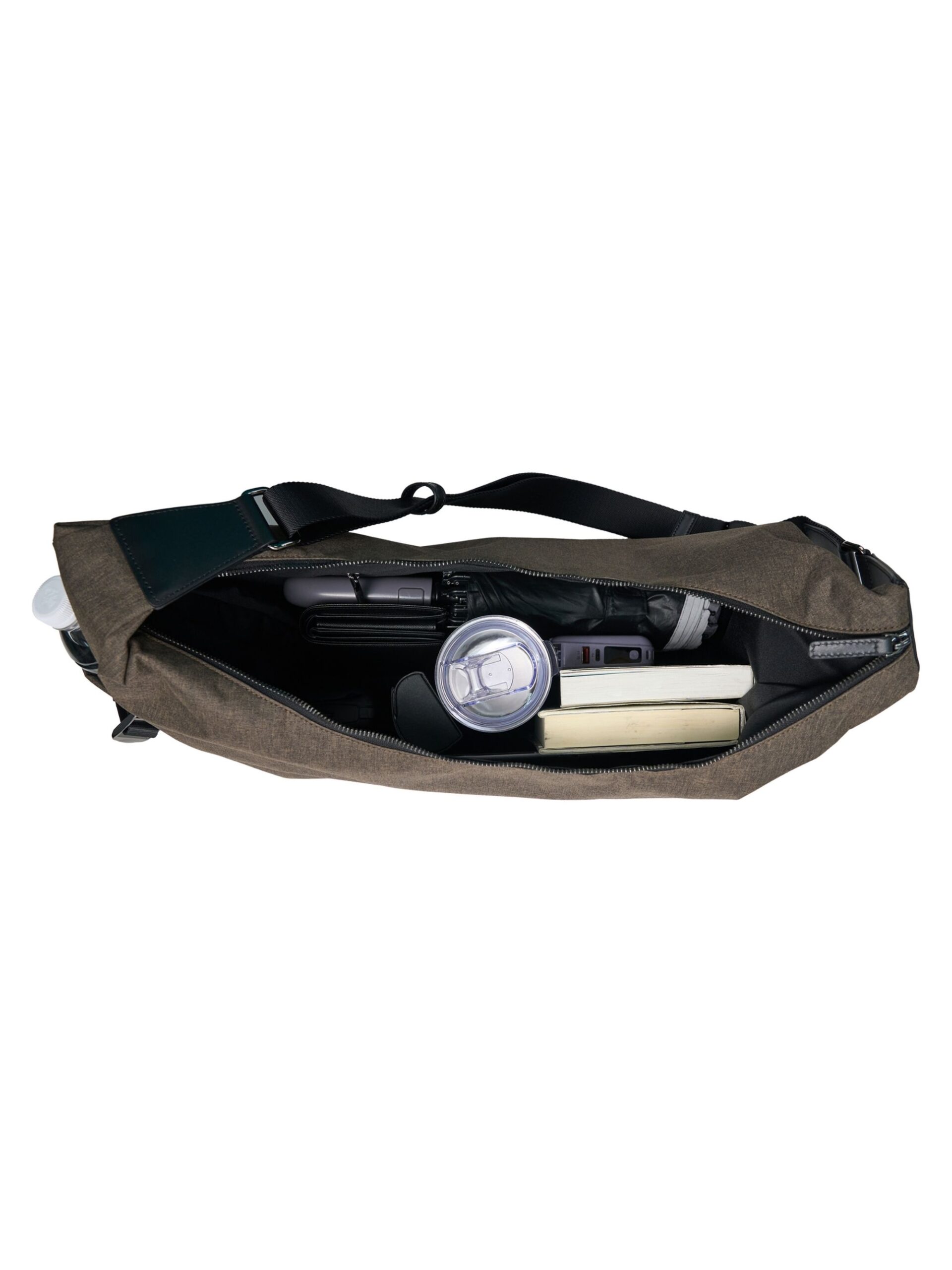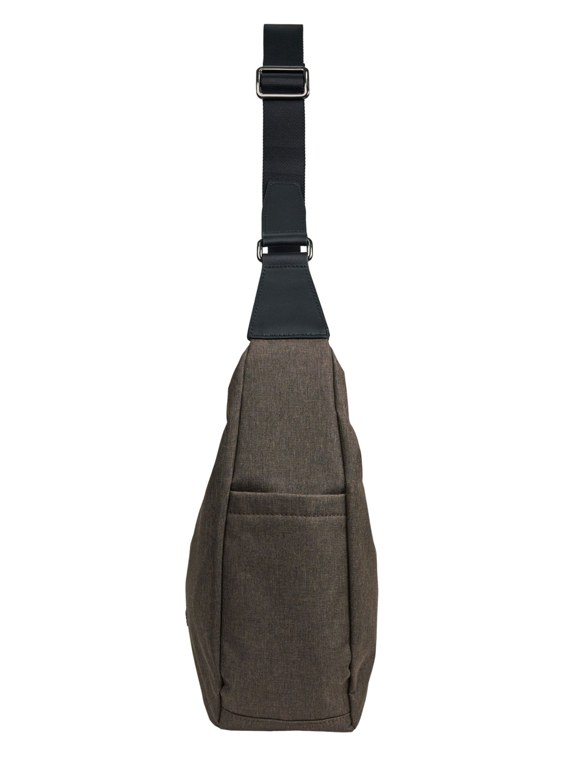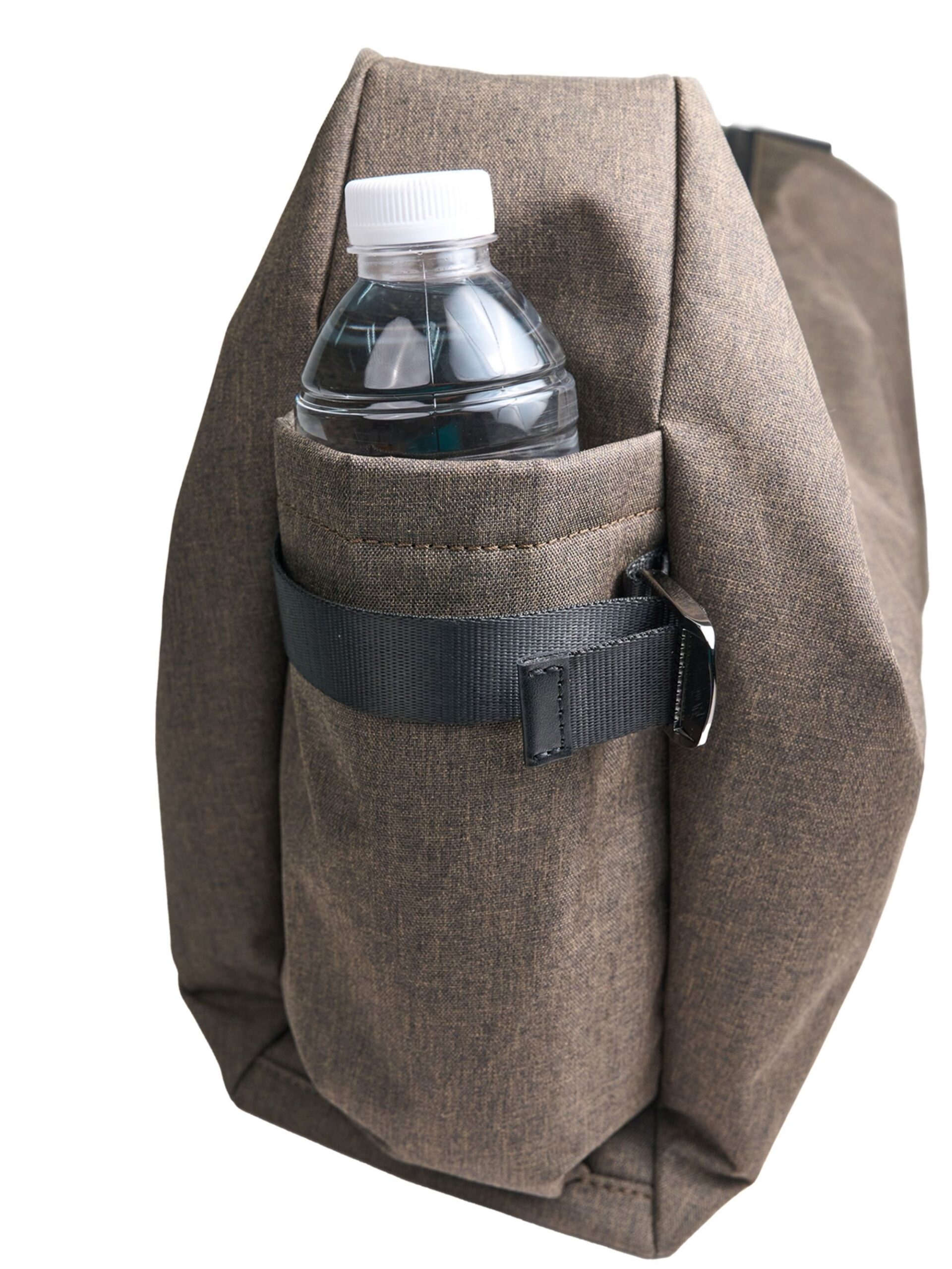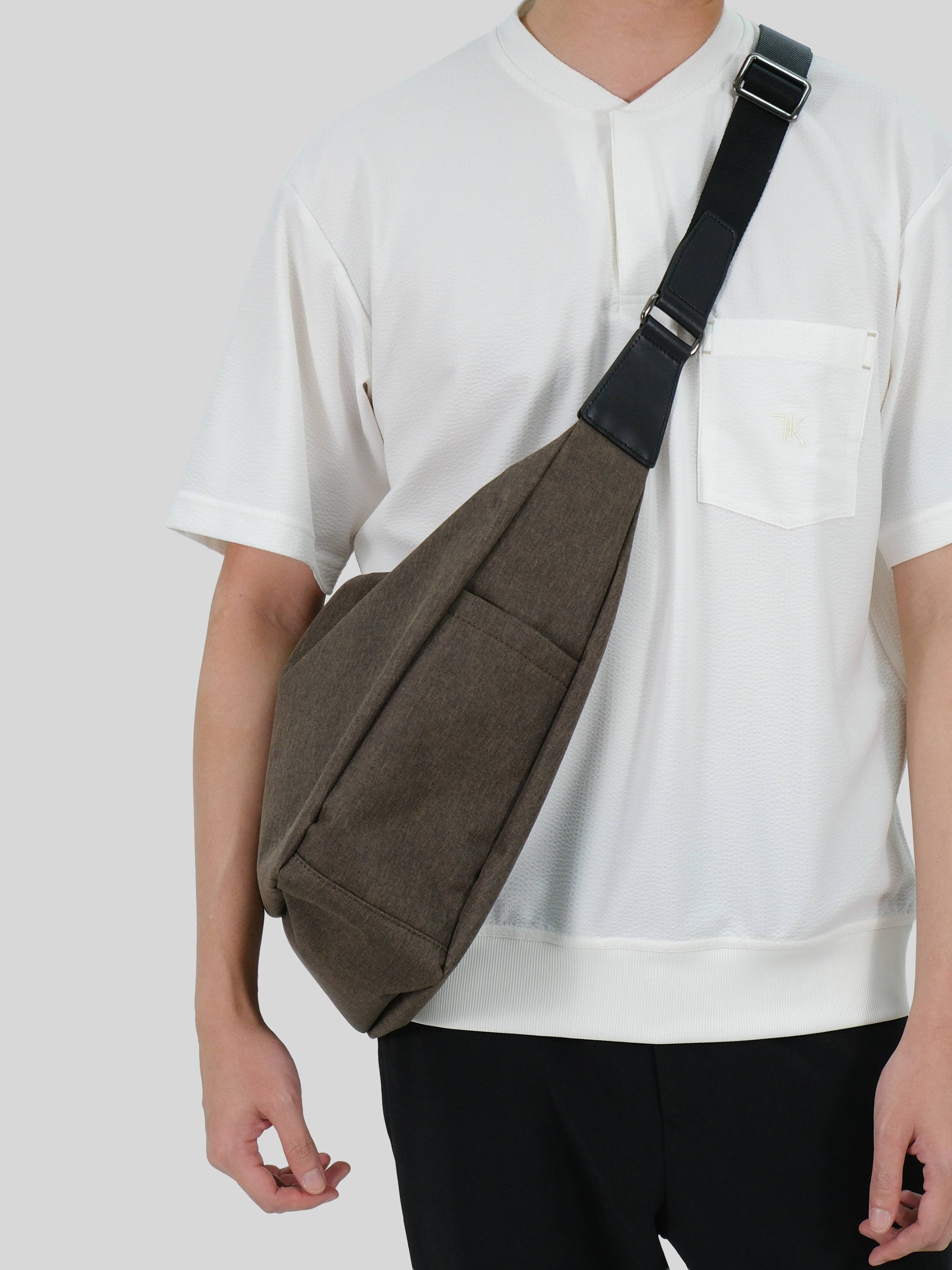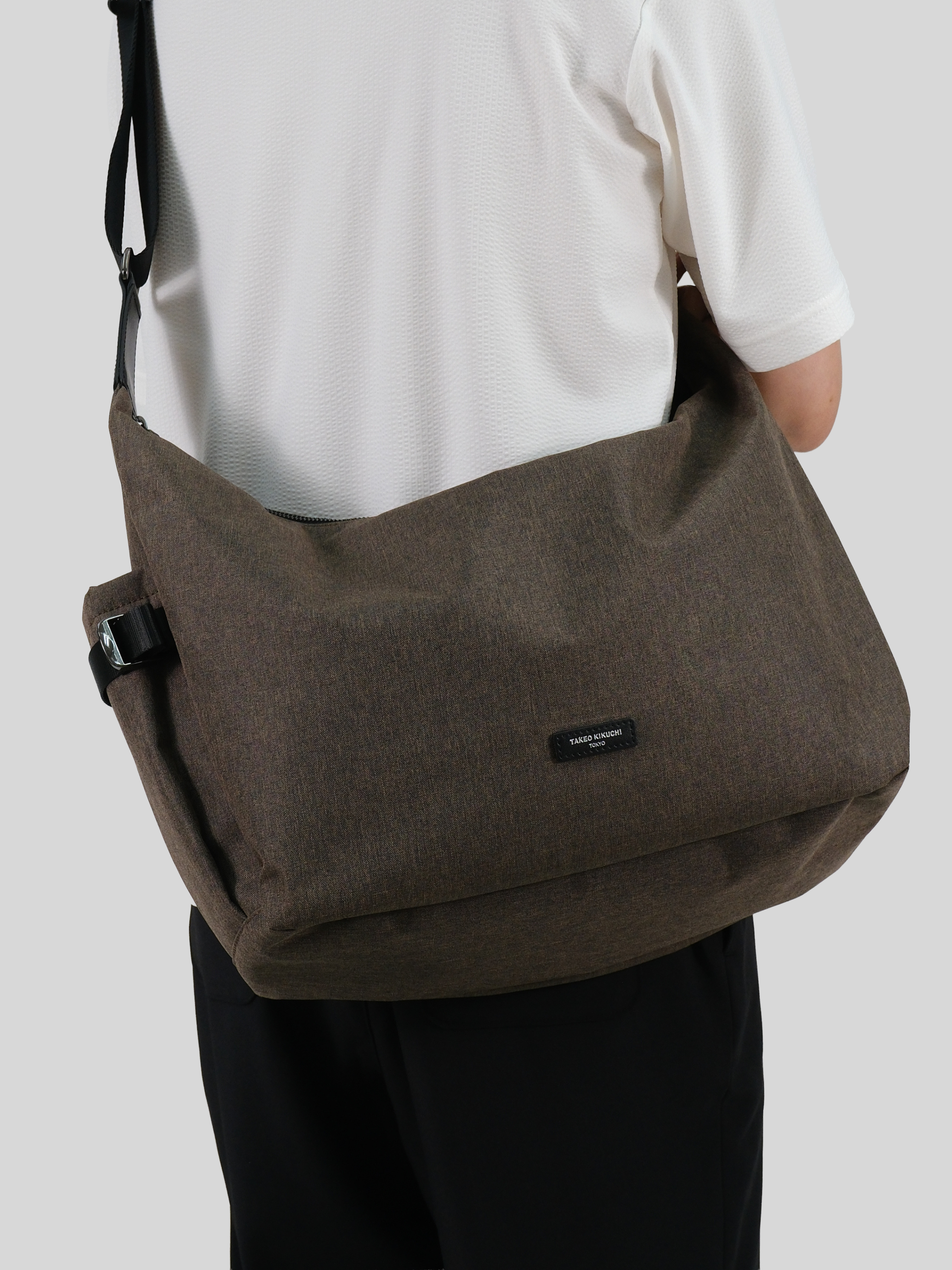 Crossbody Bag จุของได้เยอะ ด้านข้างกระเป๋าทั้งสองข้างมีช่องอเนกประสงค์ สามารถจุของขนาดกลางเช่นขวดน้ำ หรือร่มพับได้ สายสะพายทำจากหนังวัวแท้ วัสดุตัวกระเป๋าเป็นไนลอนกันน้ำในตัว จัดเป็น Utility Bag เหมาะสำหรับการใช้งานในทุกวัน