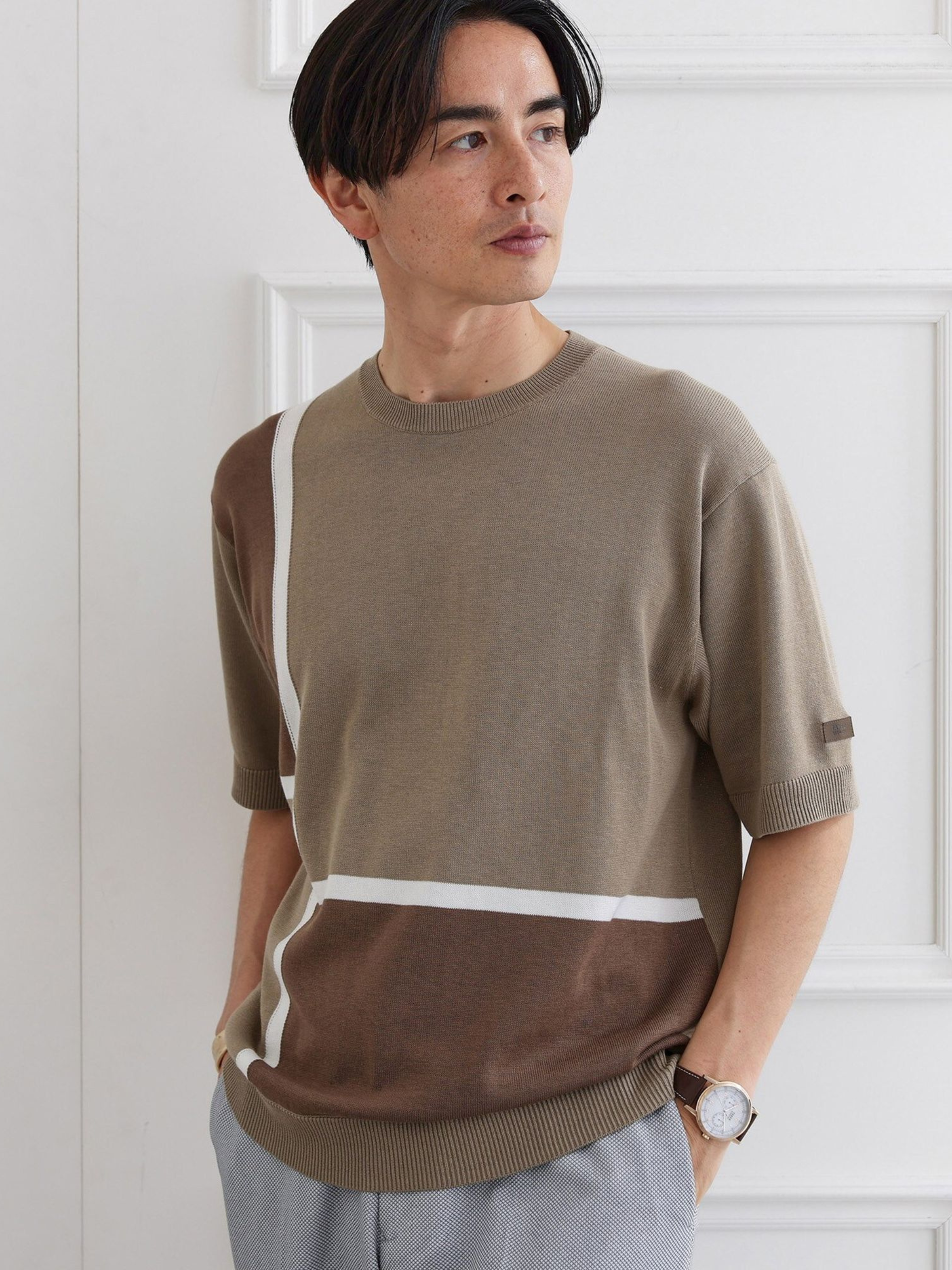 BROWN COLOR BLOCKING KNIT TSHIRT (07012020) *ECS