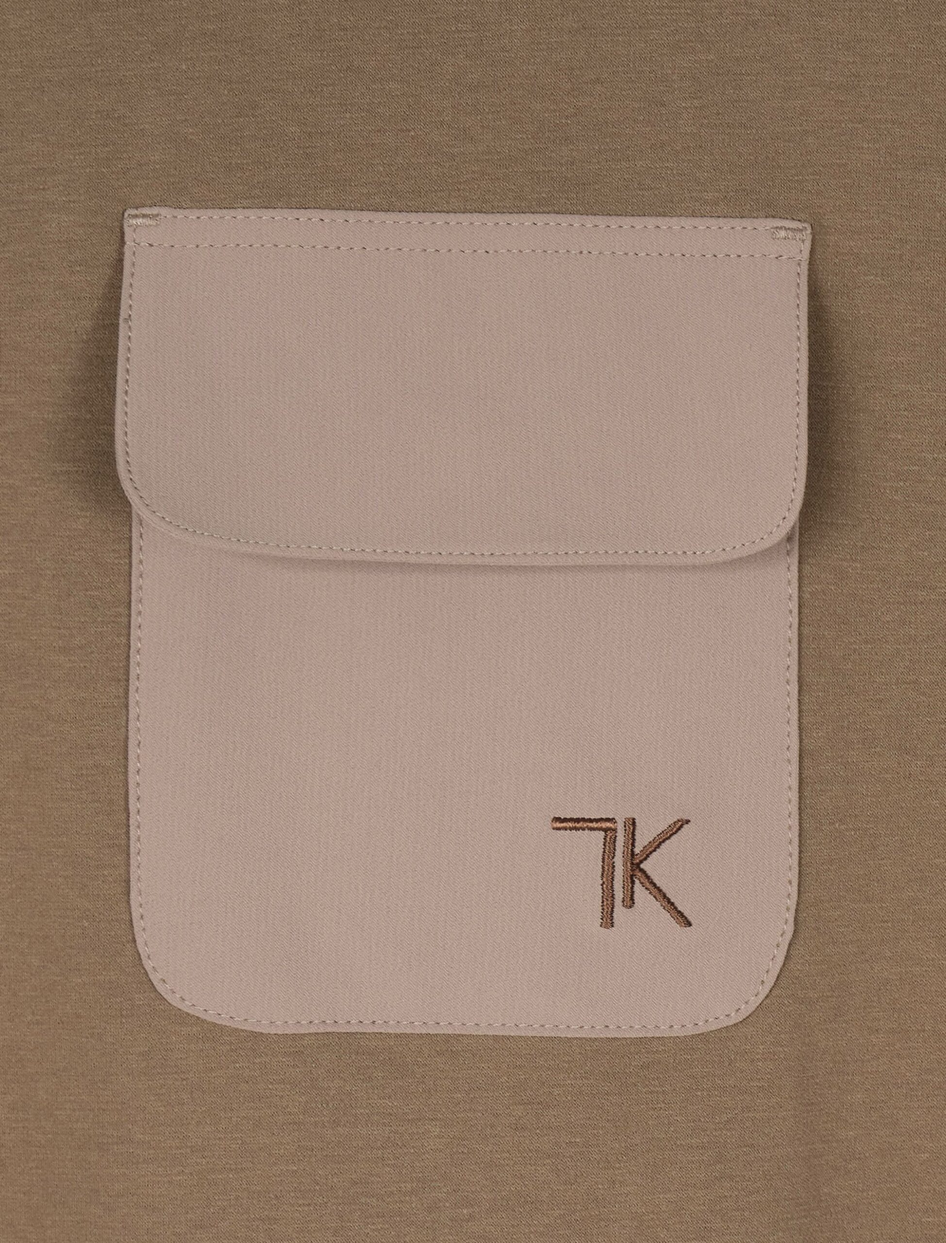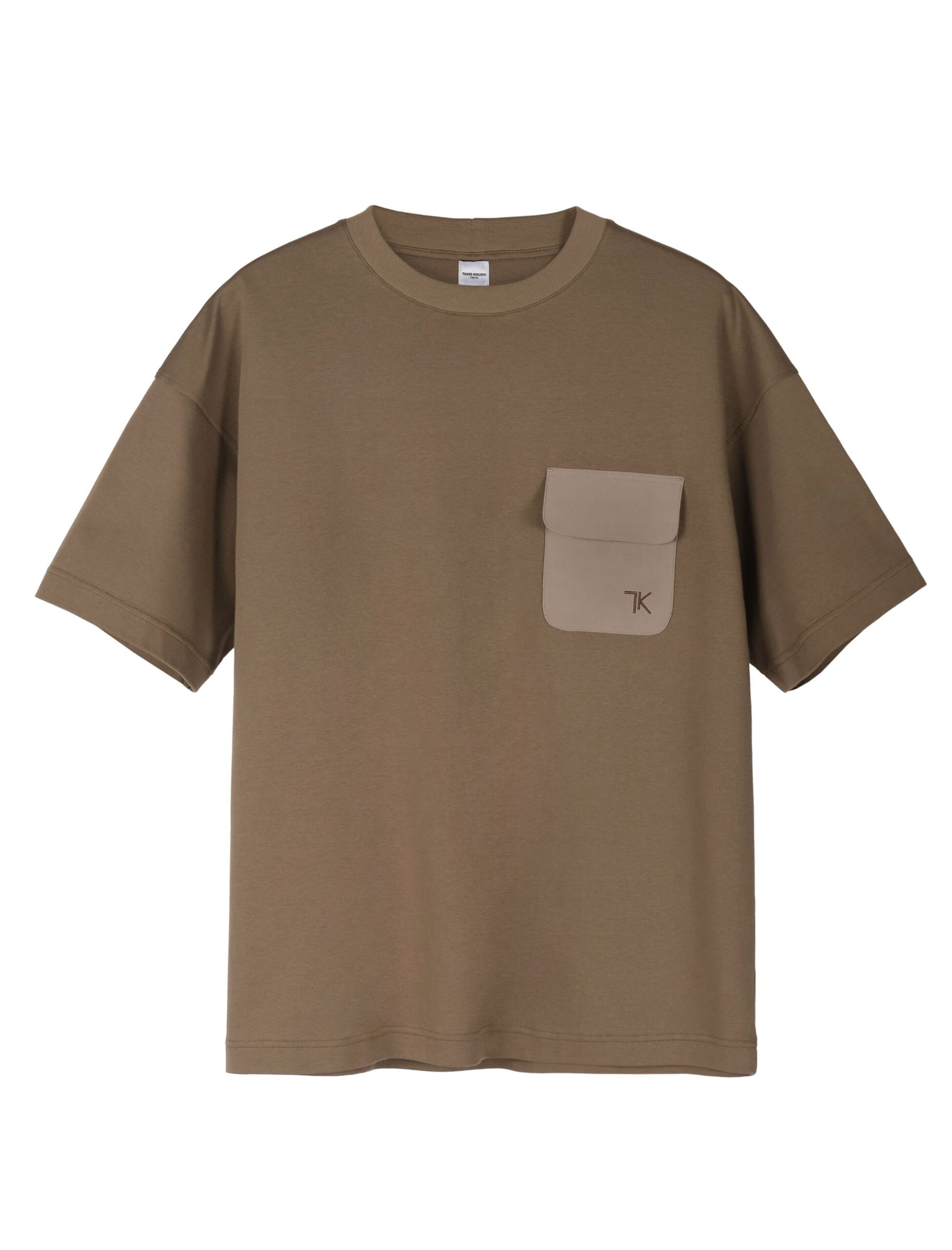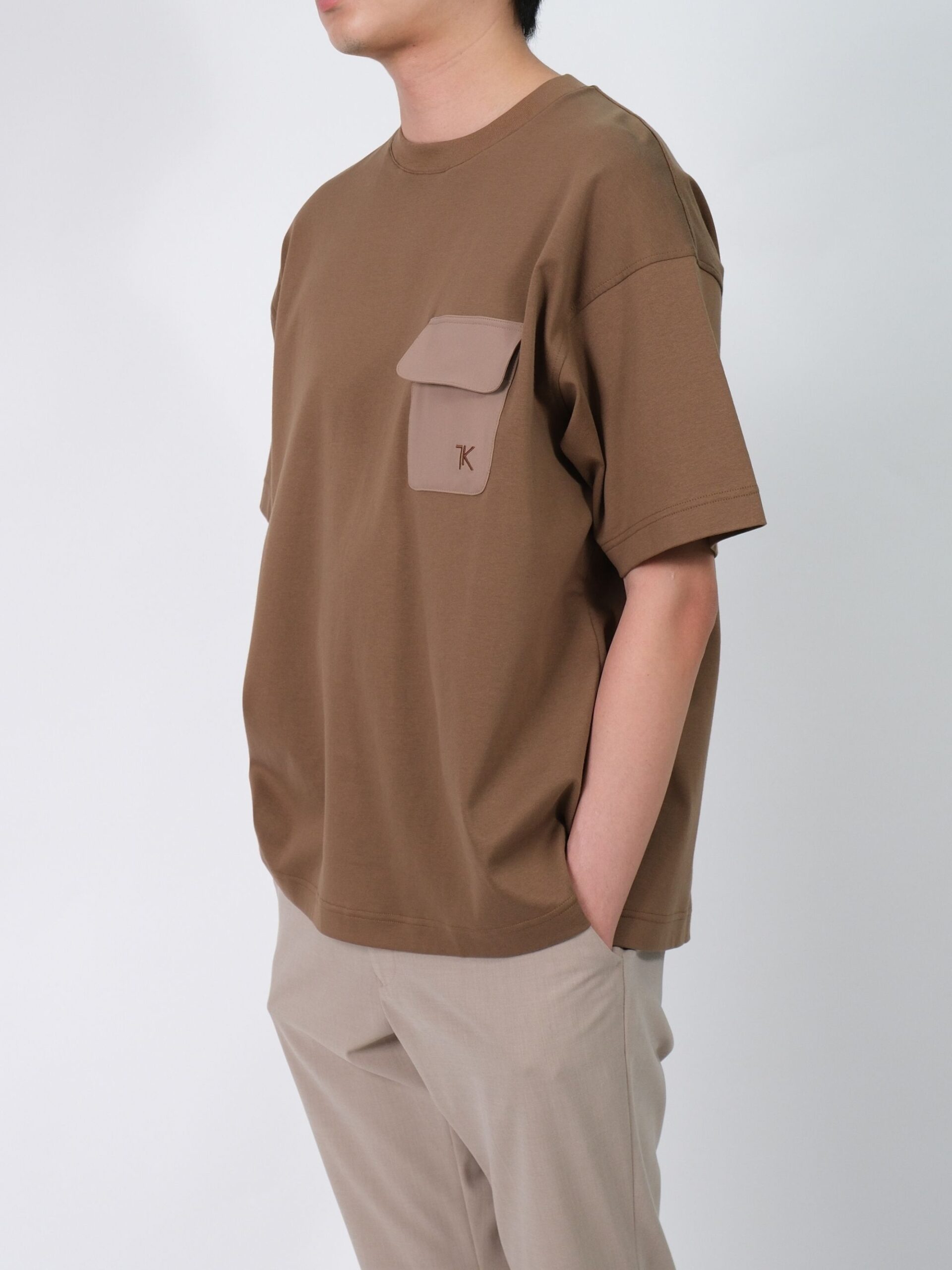 BROWN COTTON TEE W/EMB TK CONTRAST POCKET (K8133101)