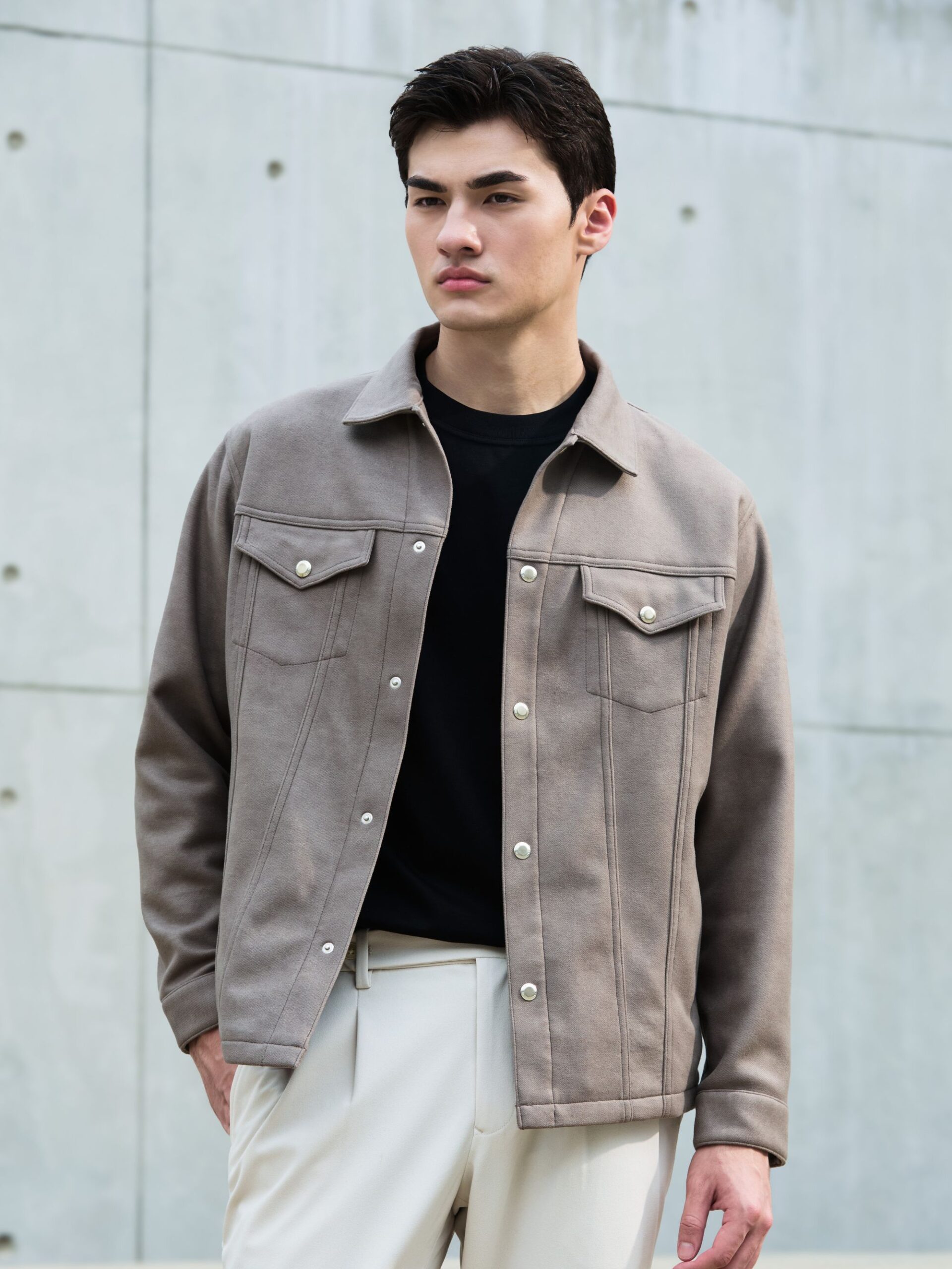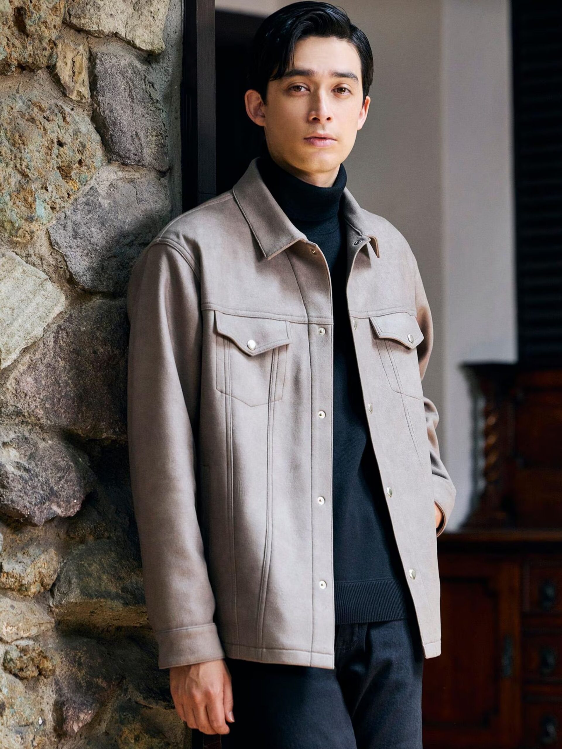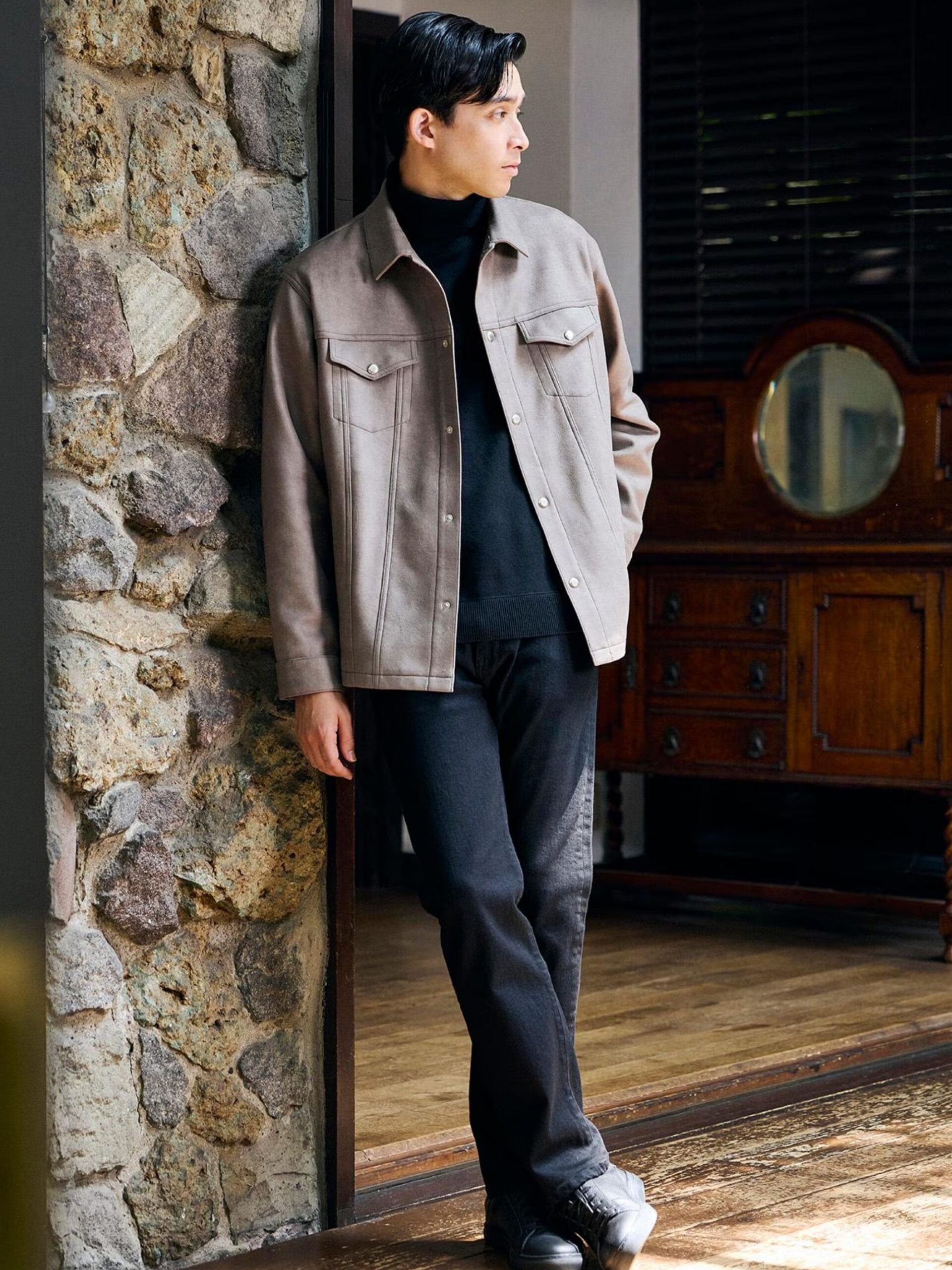 เสื้อแจ็คเก็ตใช้วัสดุพิเศษ Down Fabric ผ้ามีพื้นผิวเนียนนุ่มให้ความรู้สึกเหมือนหนังกลับ ด้วยสและดีไซน์ ทำให้ลุคดูเรียบหรู ดูเป็นผู้ใหญ่ และยังสามารถสวมใส่แบบลำลองอย่างมีสไตล์