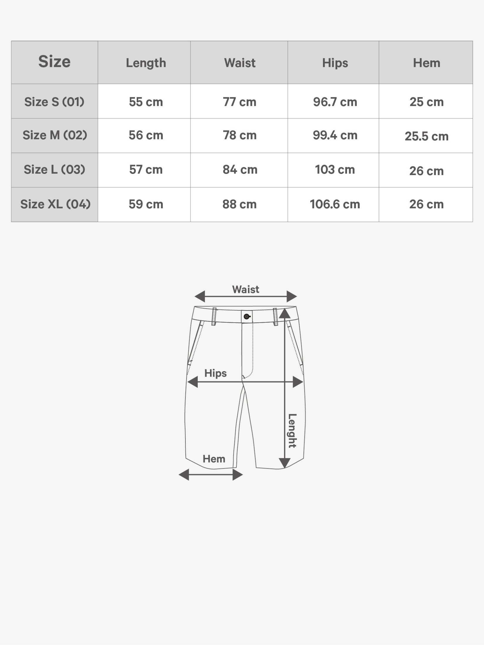SIZE: S (01) รอบเอว 77 cm, ความยาวกางเกง 55 cm, สะโพกกว้าง 96.7 cm, ปลายขา 25 cm