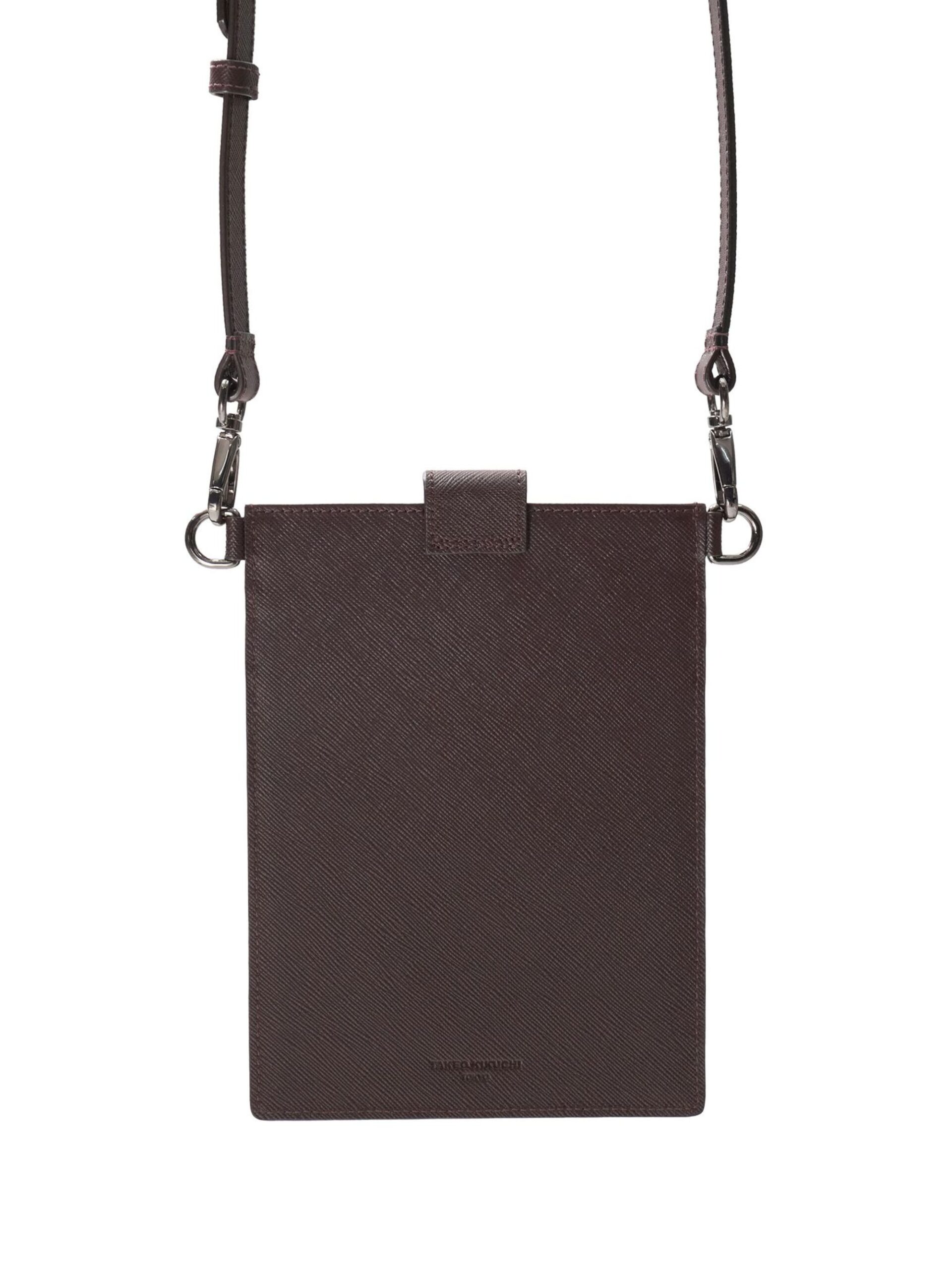 กระเป๋า crossbody หนังวัวพิมพ์ลาย Saffiano ซึ่งเป็นหนังที่ได้รับความนิยมสำหรับลูกค้าแบรนด์ TAKEO KIKUCHI เนื่องจาก texture มีความทนทานต่อการใช้งาน ไม่เป็นรอยขีดข่วนง่าย โดยดีไซน์ของกระเป๋ามีการพิมพ์ logo เป็นฟอยล์สีเงิน ซึ่งเหมาะกับคนรุ่นใหม่ที่ต้องการความสะดวกสบาย คล่องตัว และคุ้มค่า สามารถใส่ของจำเป็นได้อย่างครบถ้วน มีช่องใส่ของ 3 ช่อง โดยช่องที่มีสายคาดหนังปิด สามารถใส่มือถือได้ (Iphone pro max)
