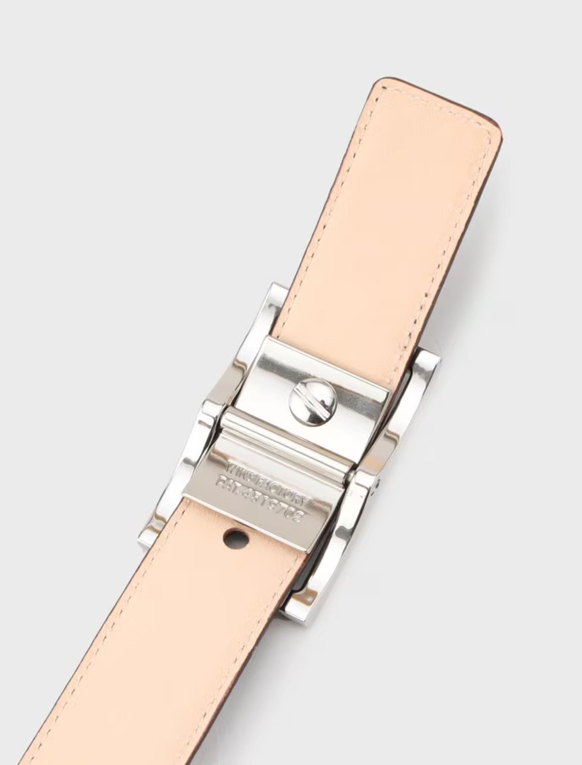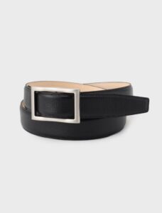 เข็มขัดหนัง ซึ่งหัวเข็มขัด Frico ที่ผลิตในญี่ปุ่น ช่วยแก้ปัญหานี้ได้อย่างมีประสิทธิภาพ สายหนังปั๊มลายสี่เหลี่ยม (Square grain emboss) ช่วยลดรอยที่เกิดจากหัวเข็มขัดให้ดูเด่นน้อยลง เพิ่มความเรียบร้อยและหรูหราในการใช้งาน