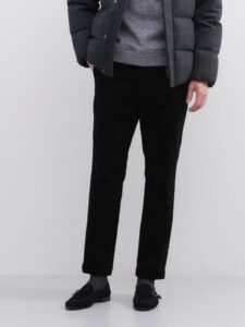 ดีไซน์เอวยางยืดด้านข้างได้รับแรงบันดาลใจจากรองเท้า side-gore boots ช่วยให้กางเกงเข้าทรงสวย ดูเรียบเพรียว ขณะเดียวกันก็ใส่สบาย ไม่บีบรัดช่วงเอว ทรงกางเกงเป็นแบบสลิมสแลค ให้ขาดูเรียวยาวเป็นธรรมชาติ ใช้ผ้าลูกฟูกเนื้อพรีเมียม เงางามเล็กน้อย ให้ทั้งสัมผัสที่นุ่มลื่นและความหรูหราอย่างพอดี ช่วยเสริมลุคให้ดูสะอาด เรียบร้อย และโดดเด่นมากขึ้น