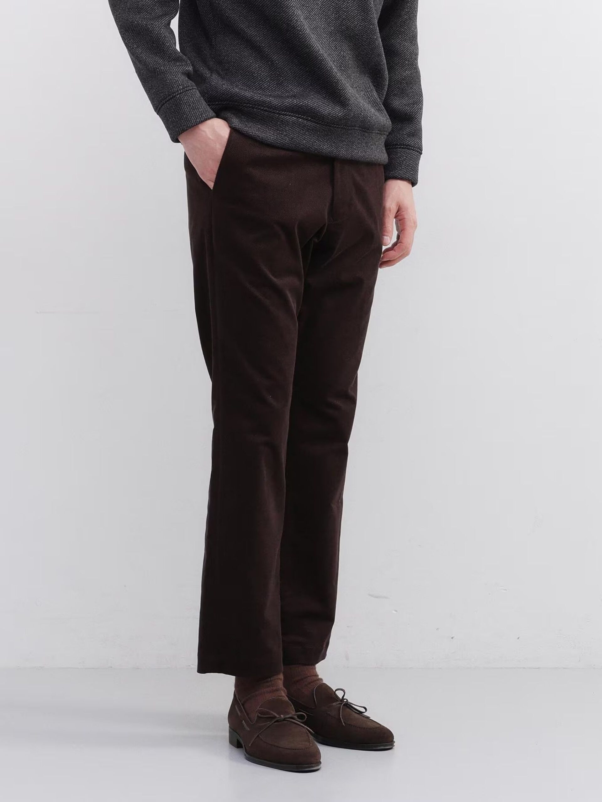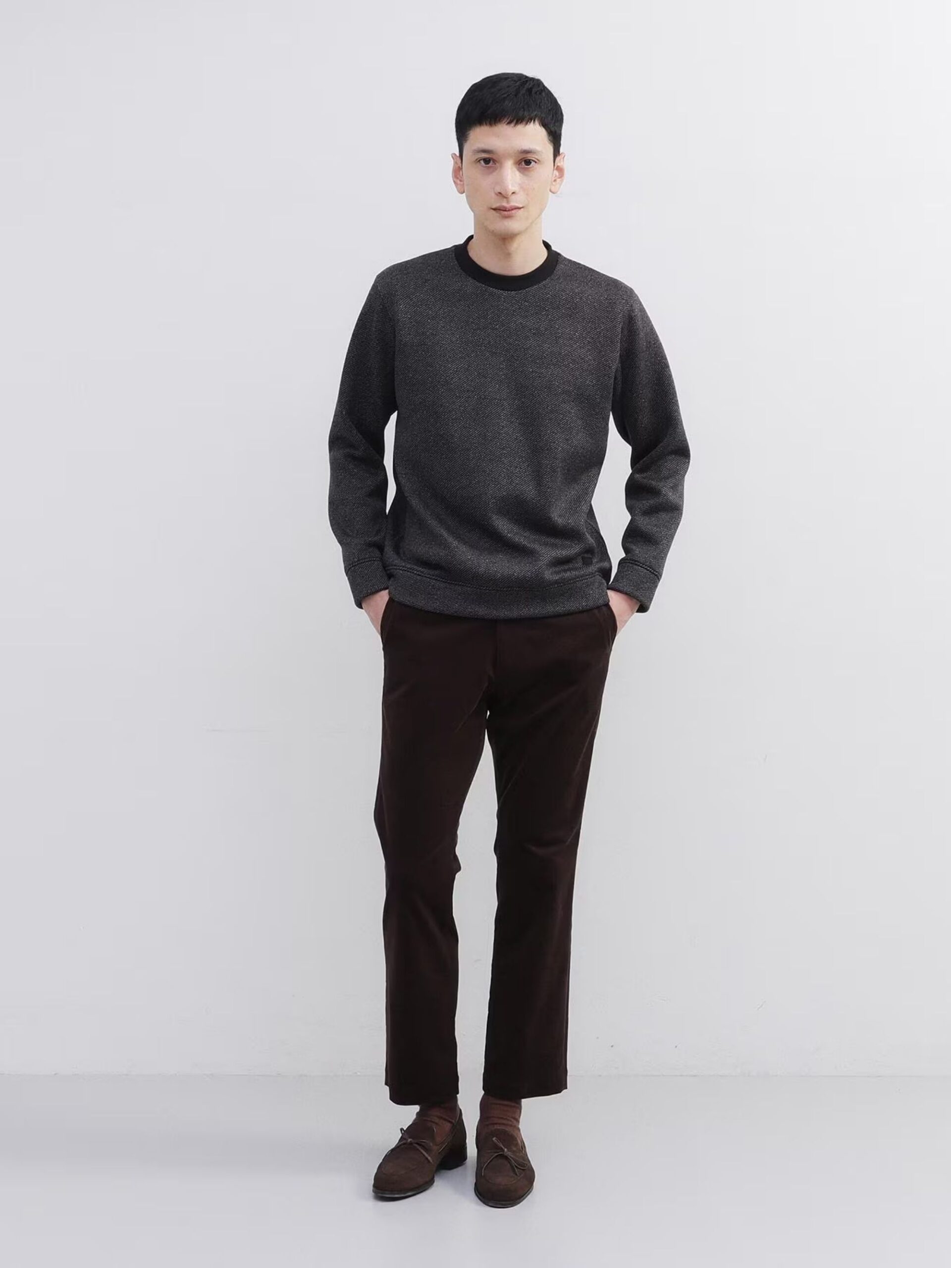 ลูกฟูกของรุ่นนี้เป็นแบบทอแนวเฉียง (twill weave) ไม่ใช่ลายเส้นตั้งแบบทั่วไป ทำให้ดูแตกต่างและพรีเมียมยิ่งขึ้น ผิวสัมผัสที่ฟูนุ่มและเงางามแบบลูกฟูกมอบความหรูหราให้ลุคแคชวลอย่างลงตัว เนื้อผ้าผสมคอตตอนและเรยอน ให้ความนุ่มสบาย พร้อมด้วยความยืดหยุ่นทำให้เคลื่อนไหวได้ดี พื้นผิวผ้าแบบซีซันนัลช่วยเพิ่มมิติ ให้ลุคดูมีเลเยอร์ เหมาะอย่างยิ่งสำหรับตู้เสื้อผ้าฤดูใบไม้ร่วง–ฤดูหนาว